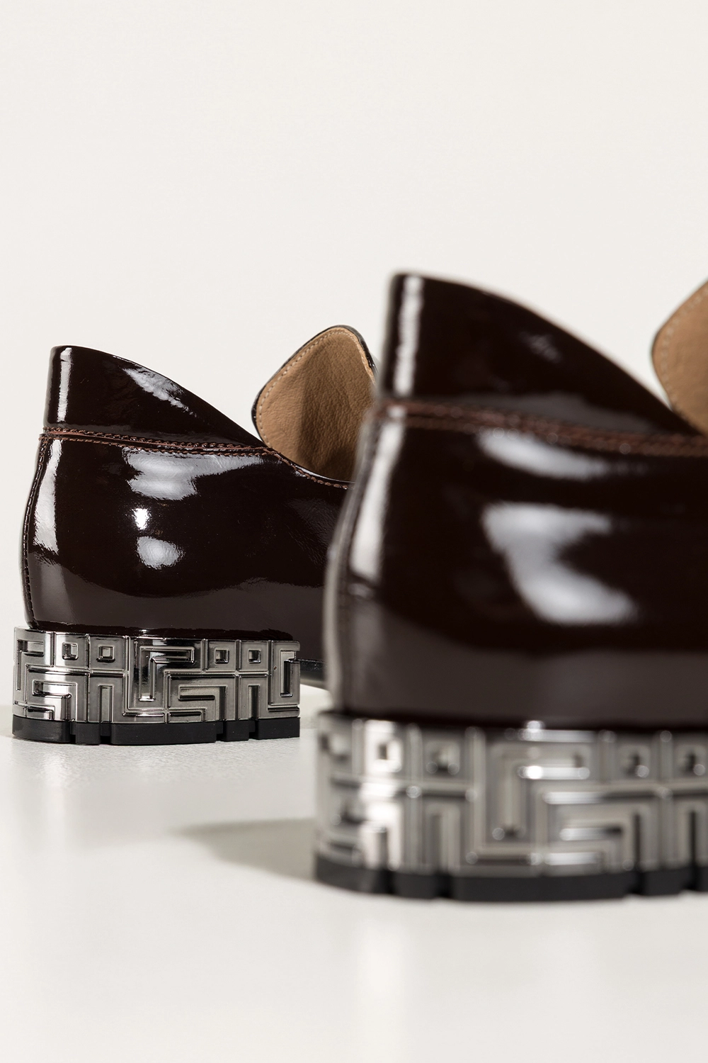 • Ozdobny niski stalowy obcas z unikalnym wzorem