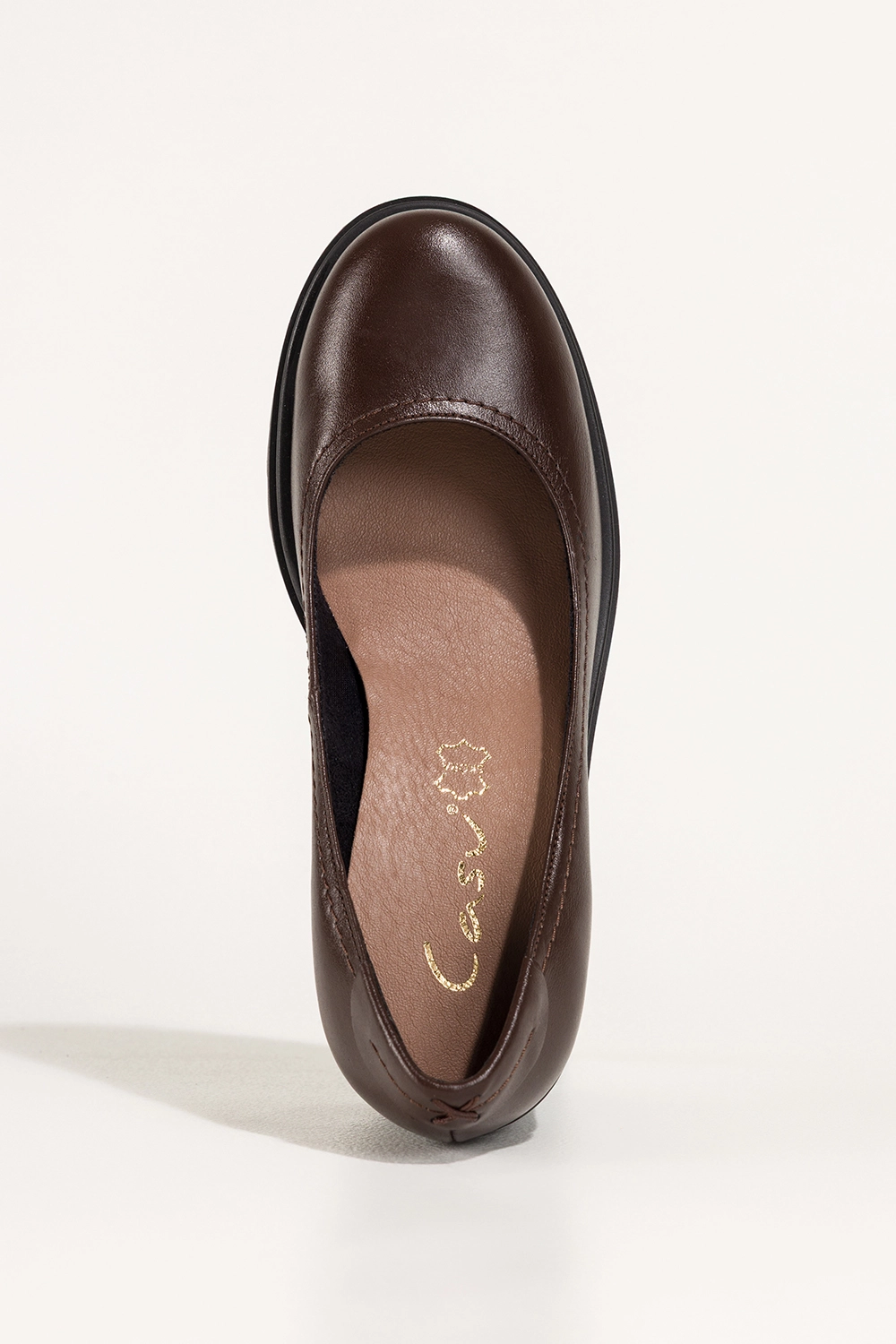 Czekoladowe półbuty skórzane damskie na szerokim klocku bieżnikowana platforma PRODUKT POLSKI Casu model 79805, to połączenie elegancji, komfortu i ponadczasowego stylu. Wykonane z miękkiej, naturalnej skóry najwyższej jakości, gwarantują trwałość i idealne dopasowanie do stopy. Skórzana wkładka dba o komfort noszenia przez cały dzień, a solidne przeszycie na cholewce podkreśla rzemieślniczy kunszt wykonania. Ten model to synonim polskiej jakości, stworzony z myślą o kobietach ceniących niezawodne i stylowe obuwie.