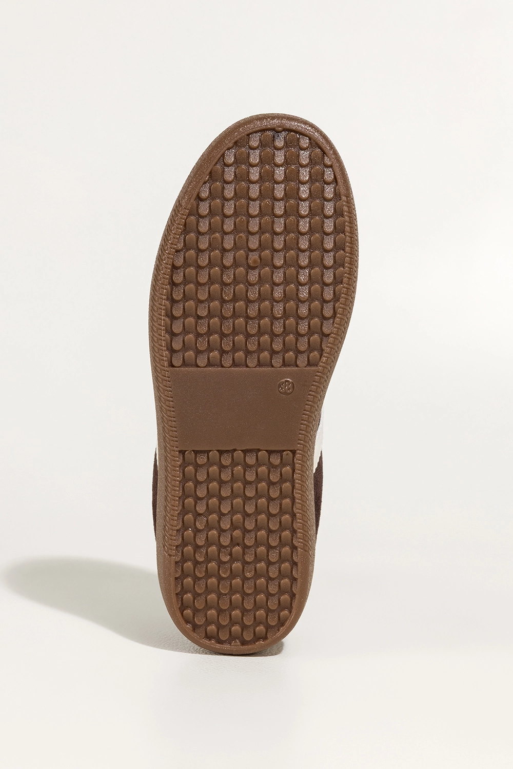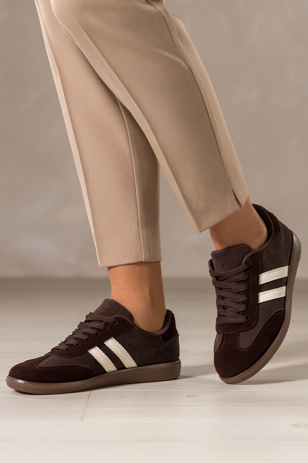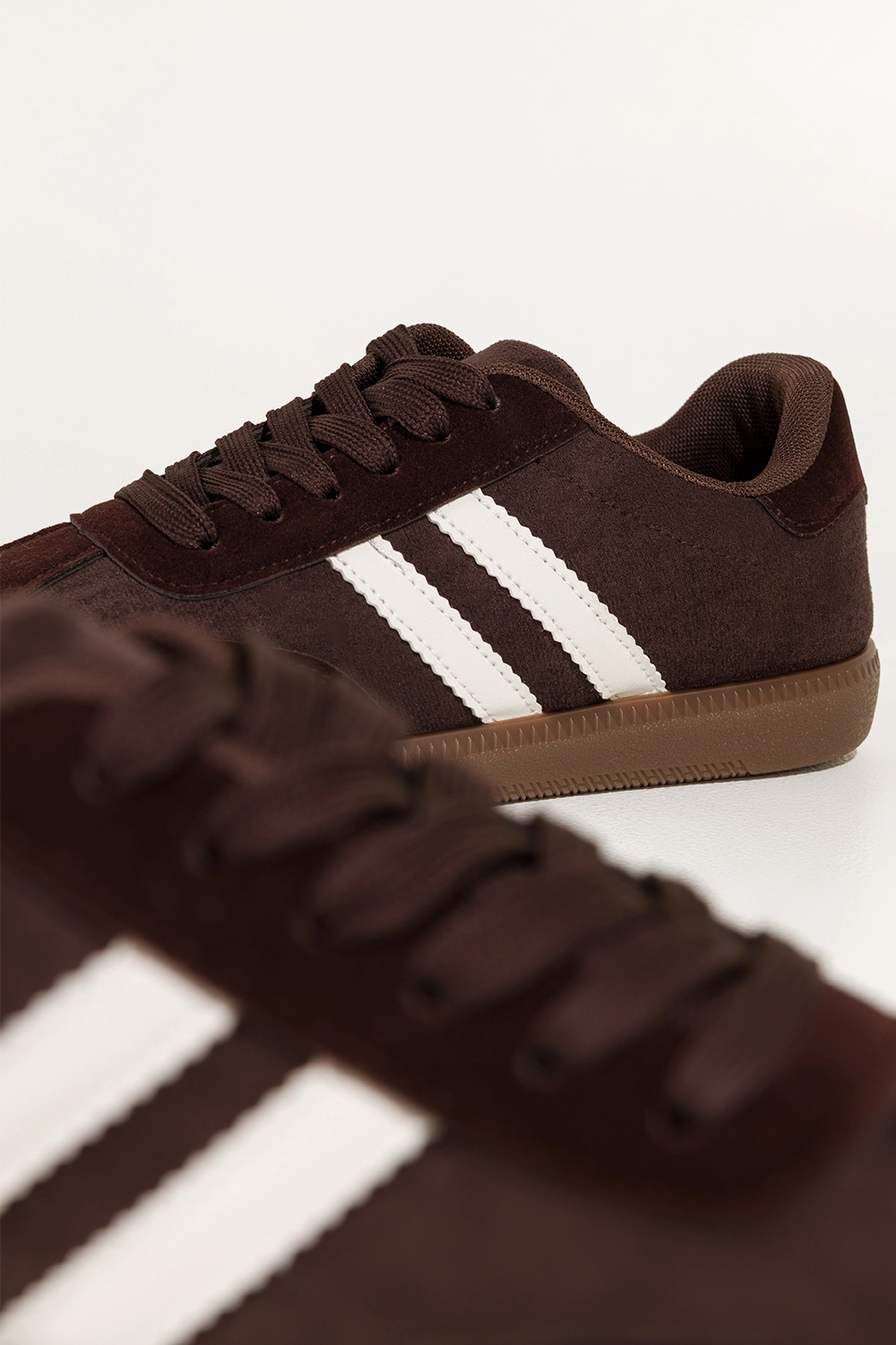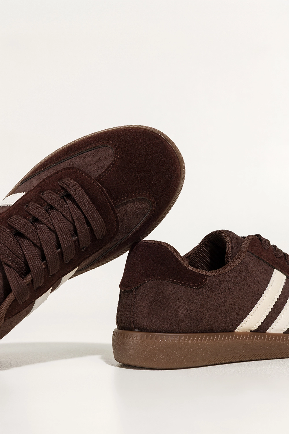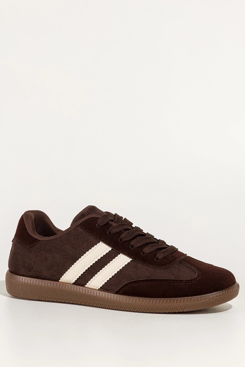Ich czekoladowy odcień harmonijnie współgra z jasnobeżowymi wstawkami na cholewce, tworząc ponadczasową, a zarazem nowoczesną kompozycję kolorystyczną. Zaokrąglony nosek i dopracowane wykończenia podkreślają modowy charakter obuwia, które doskonale komponuje się zarówno z dżinsami, jak i zwiewnymi sukienkami. To idealny wybór do stylizacji miejskich, casualowych i sportowych.
