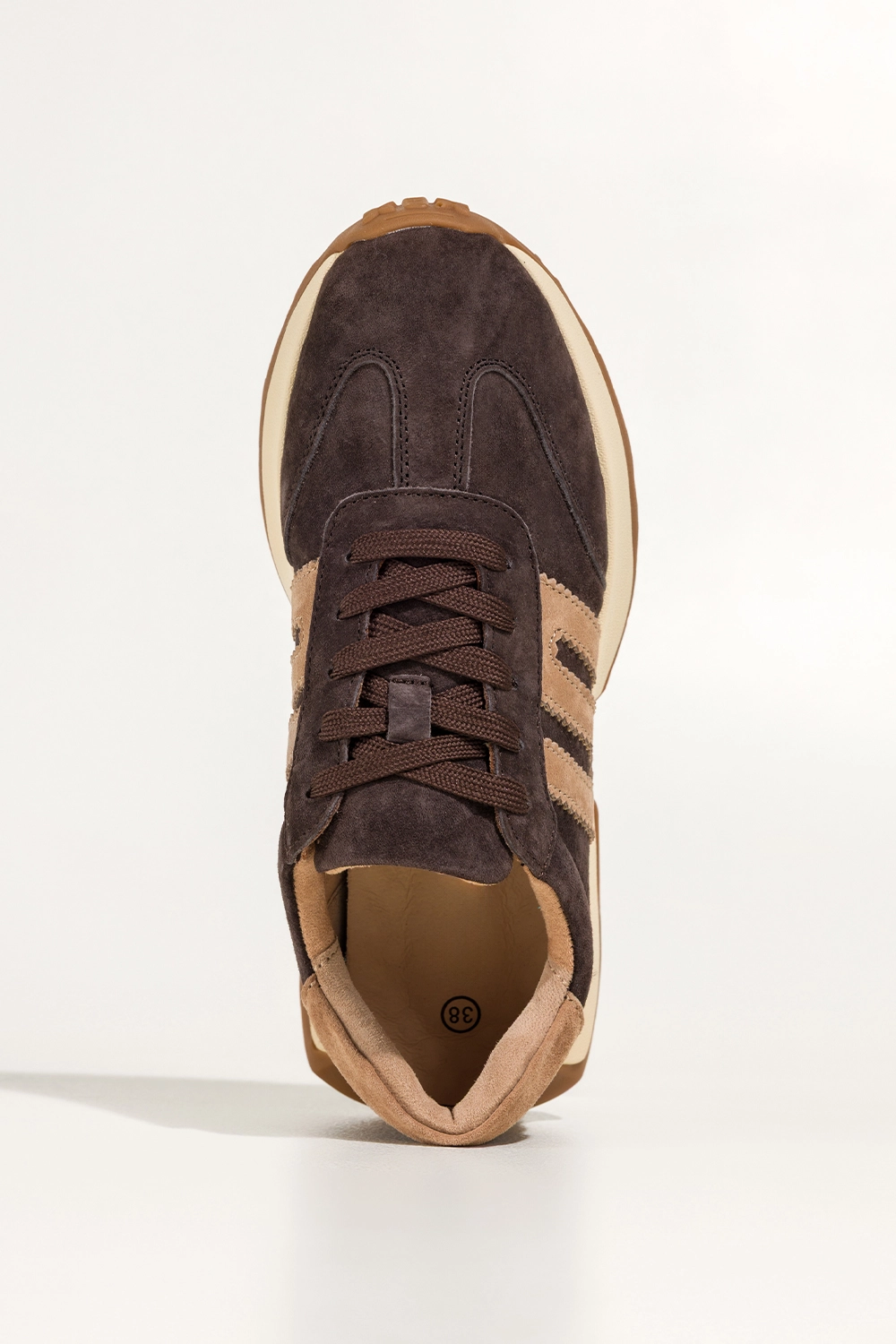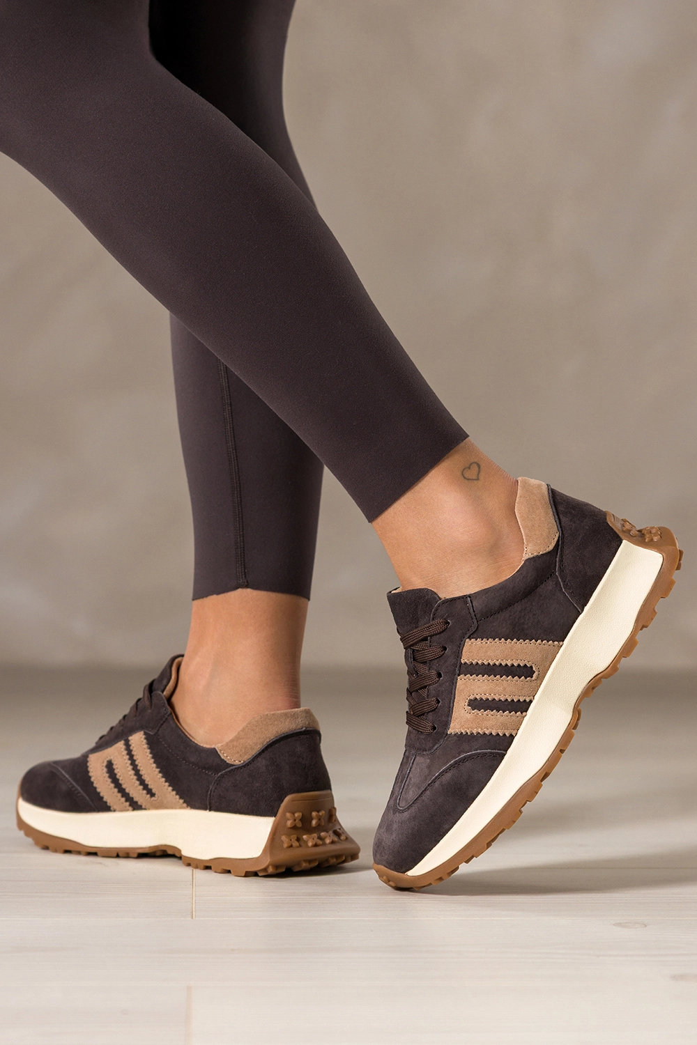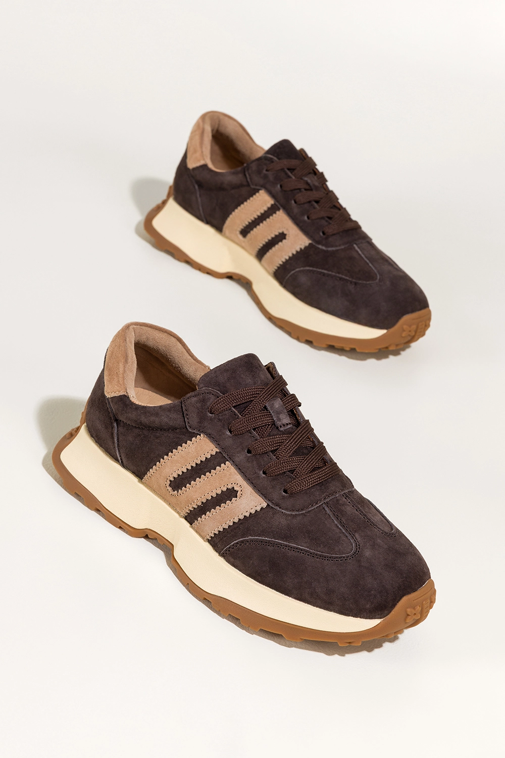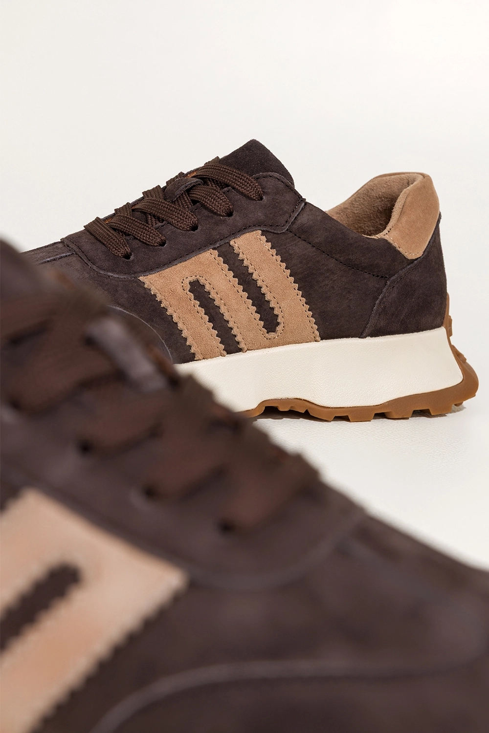Zestawienie głębokiego czekoladowego odcienia z subtelnymi, beżowymi wstawkami nadaje tym sneakersom unikalnego, wyrafinowanego charakteru. Idealnie wpisują się w aktualne trendy modowe, będąc doskonałą bazą zarówno do miejskich stylizacji z jeansami i ramoneską, jak i do bardziej casualowych zestawów z dzianinową sukienką czy spodniami typu jogger. Te buty sportowe łączą w sobie sportowy luz z elegancją premium, dzięki czemu z łatwością dopasujesz je do wielu okazji, od codziennych spacerów, przez spotkania z przyjaciółmi, aż po luźne dni w pracy.