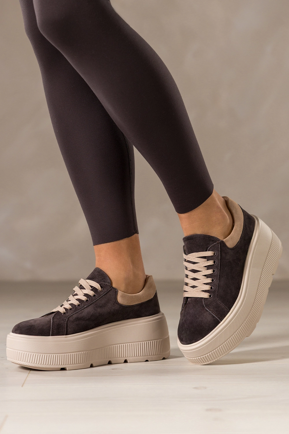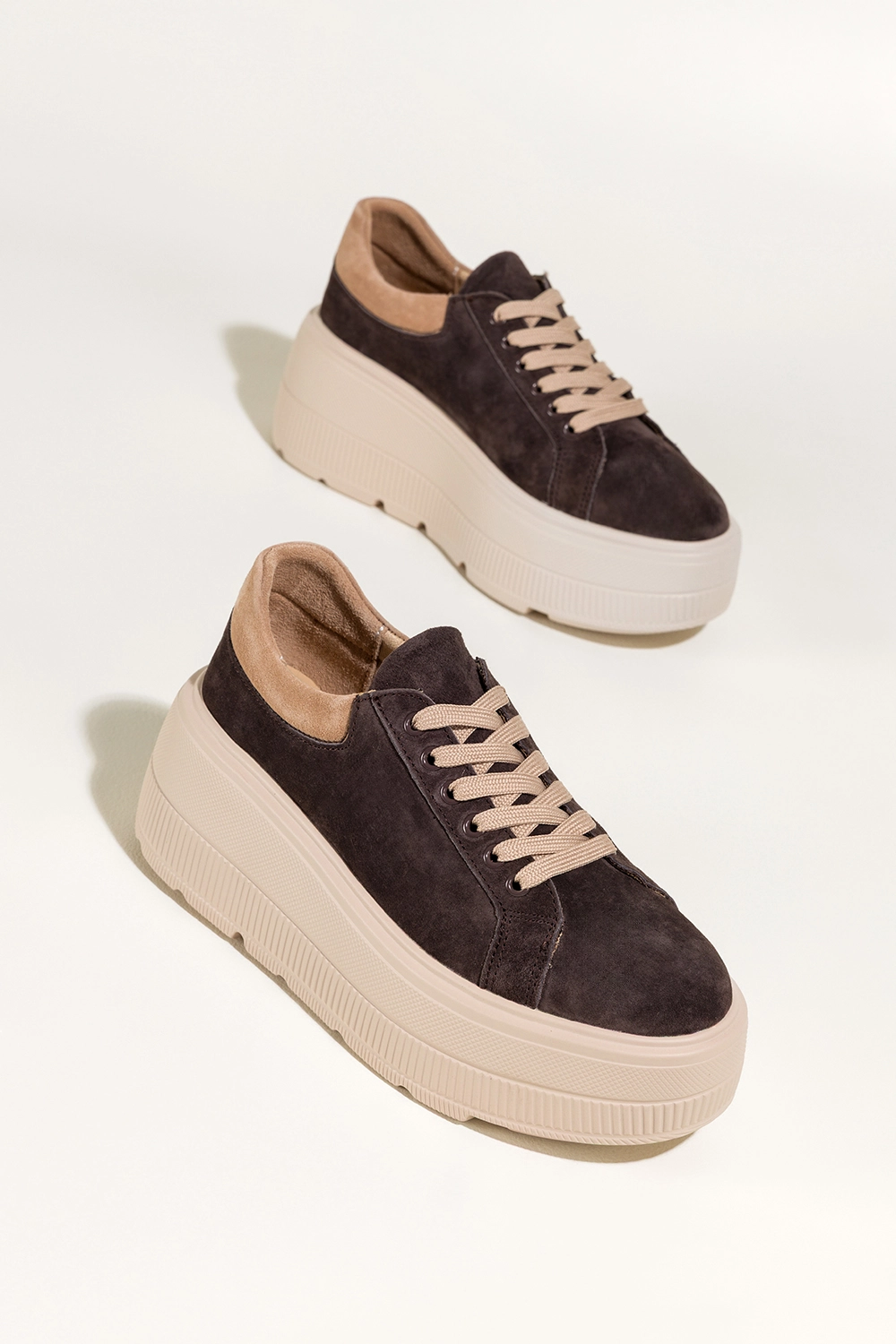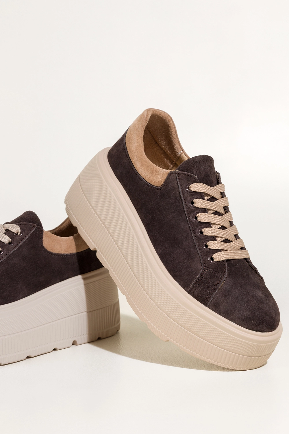 To idealne połączenie sportowego luzu i miejskiej elegancji. Ich ciepły, czekoladowy odcień w połączeniu z beżowymi akcentami sprawia, że z łatwością dopasujesz je do wielu stylizacji, od codziennych jeansów, przez dzianinowe sukienki, aż po luźne garnitury. Ich zaokrąglony nosek i masywna platforma dodają sylwetce lekkości i nowoczesnego charakteru. To must-have dla kobiet, które chcą wyglądać stylowo, nie rezygnując z wygody.