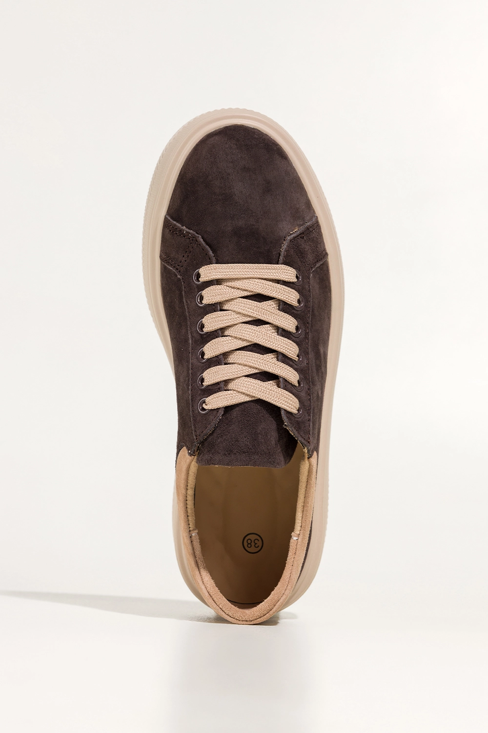 Czekoladowe sneakersy skórzane damskie buty sportowe na grubej żłobionej podeszwie beżowe wstawki sznurowane Carla model TW-OC8923. Wykonane z miękkiej, wysokogatunkowej skóry nubukowej, gwarantują nie tylko niezwykłą trwałość, ale też niesamowity komfort noszenia. Skórzana wkładka dopasowuje się do kształtu stopy, zapewniając naturalne wsparcie podczas chodzenia, a żłobiona jasnobeżowa podeszwa świetnie amortyzuje wstrząsy i dodaje nowoczesnego charakteru. Starannie wykończone detale, takie jak beżowe sznurówki i kontrastowe wstawki, świadczą o dbałości o każdy, nawet najmniejszy szczegół.