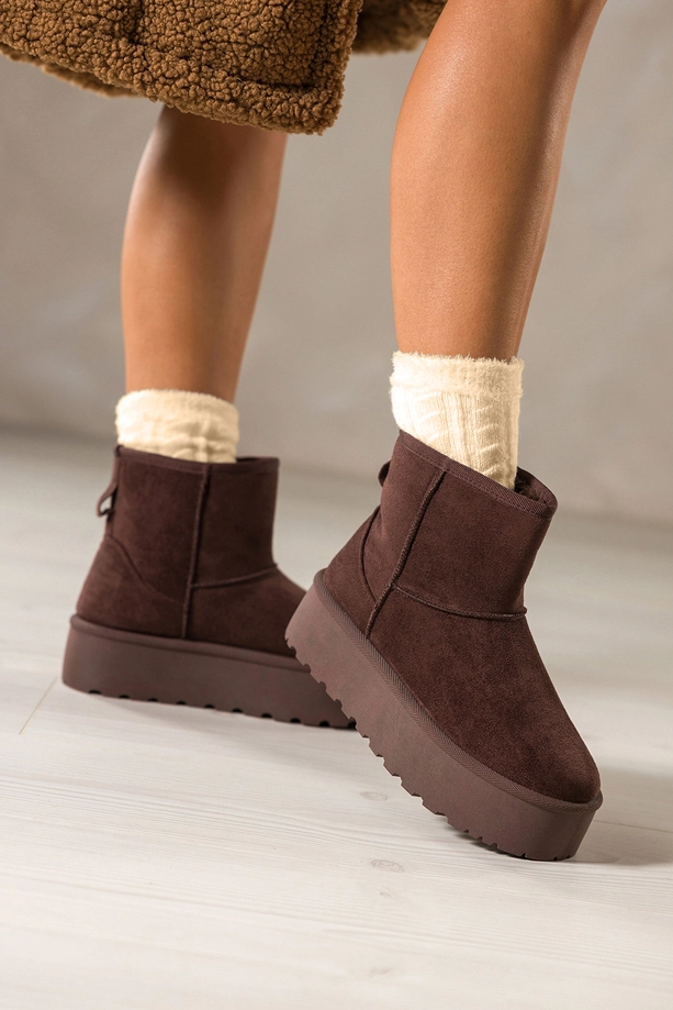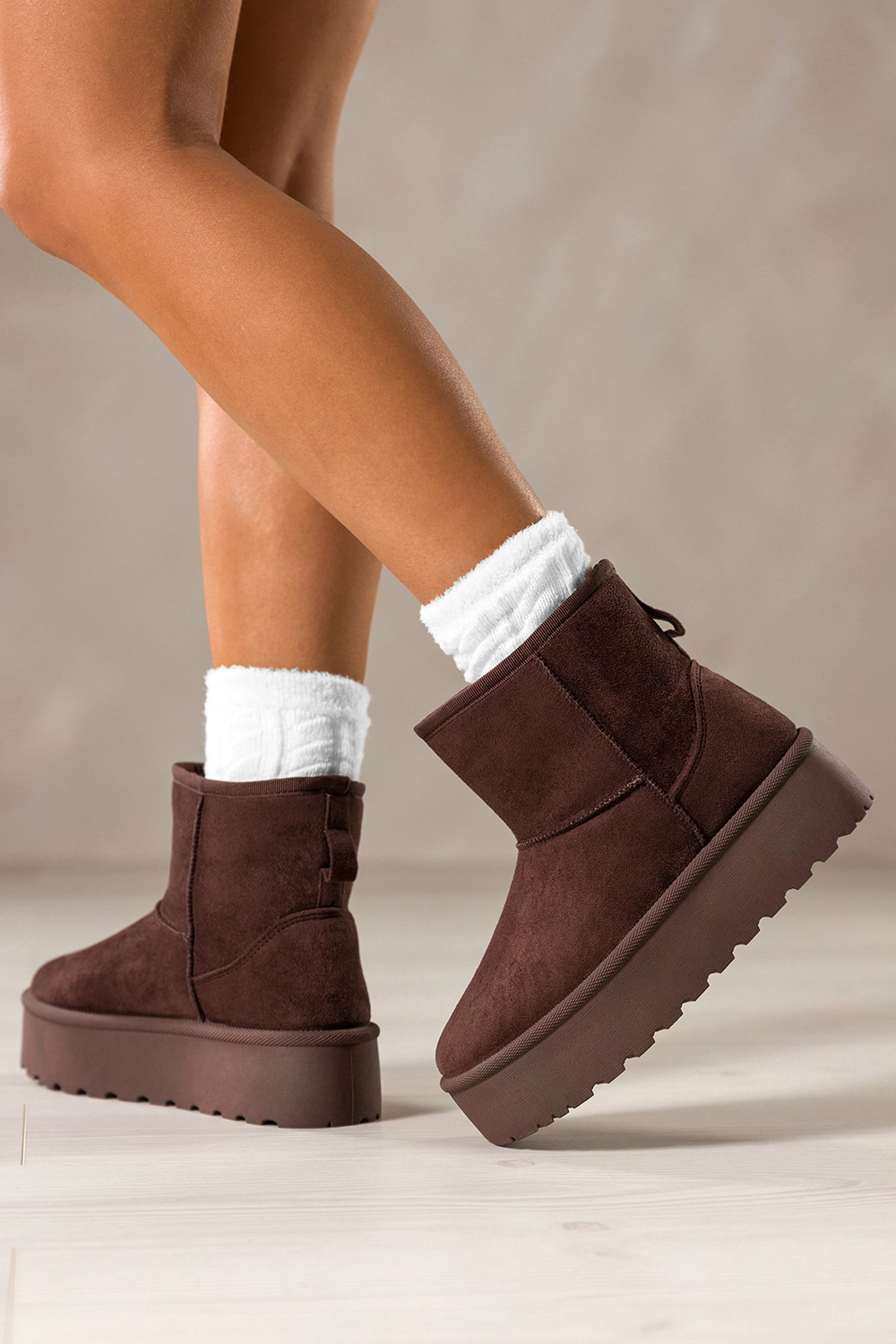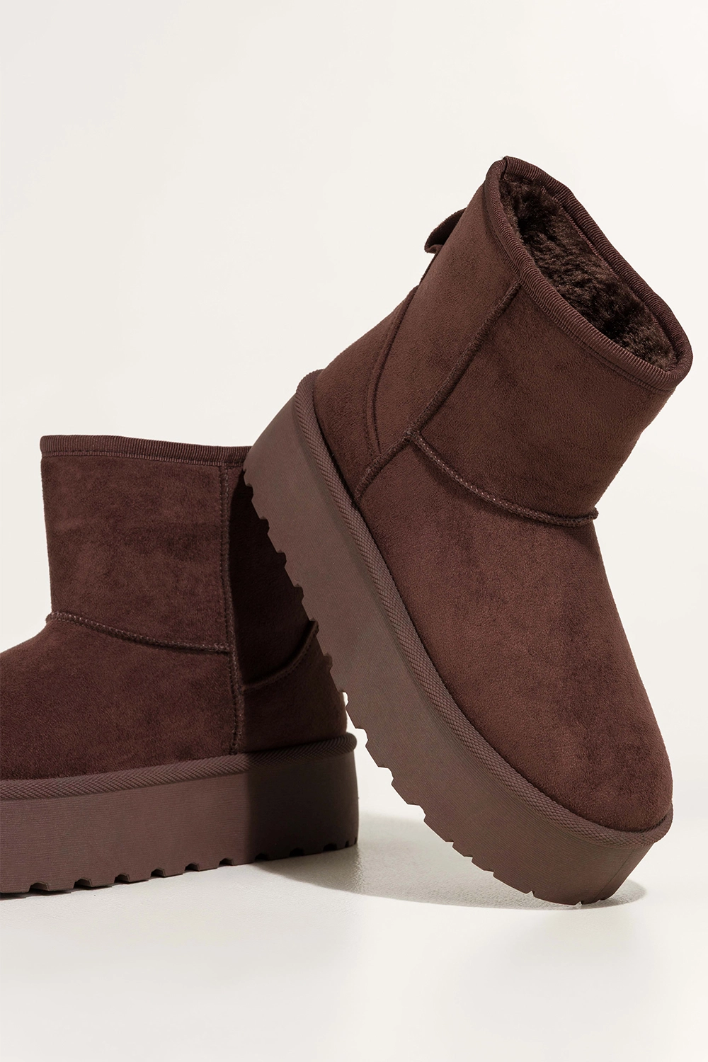 Głęboki, czekoladowy odcień mukluków nadaje im szlachetności i czyni je doskonałym uzupełnieniem zimowych stylizacji. Idealnie komponują się zarówno z legginsami i puchową kurtką, jak i z dzianinową sukienką i płaszczem. Bieżnikowana platforma dodaje im nowoczesnego charakteru, jednocześnie zapewniając pewność kroku na śliskiej nawierzchni. To obuwie, które łączy modny wygląd z funkcjonalności, nie musisz wybierać między stylem a wygodą.