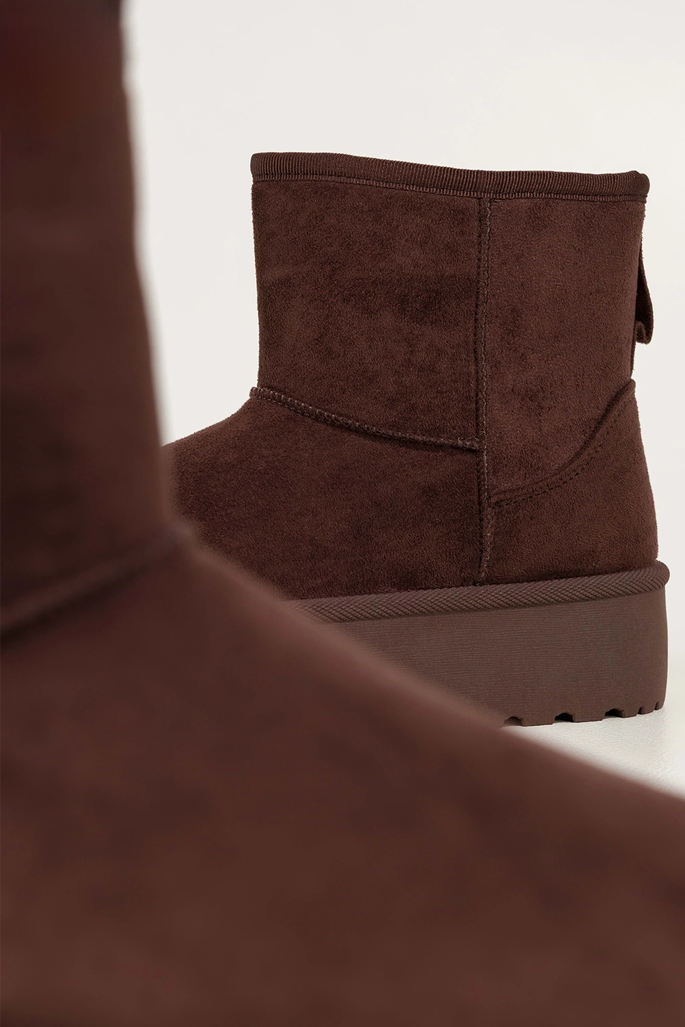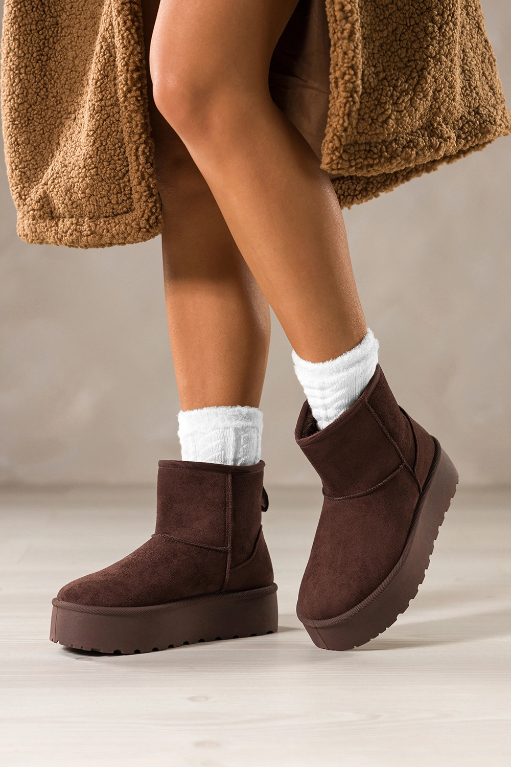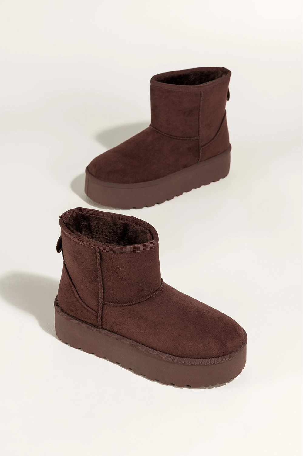 Głęboki, czekoladowy odcień mukluków nadaje im szlachetności i czyni je doskonałym uzupełnieniem zimowych stylizacji. Idealnie komponują się zarówno z legginsami i puchową kurtką, jak i z dzianinową sukienką i płaszczem. Bieżnikowana platforma dodaje im nowoczesnego charakteru, jednocześnie zapewniając pewność kroku na śliskiej nawierzchni. To obuwie, które łączy modny wygląd z funkcjonalności, nie musisz wybierać między stylem a wygodą.