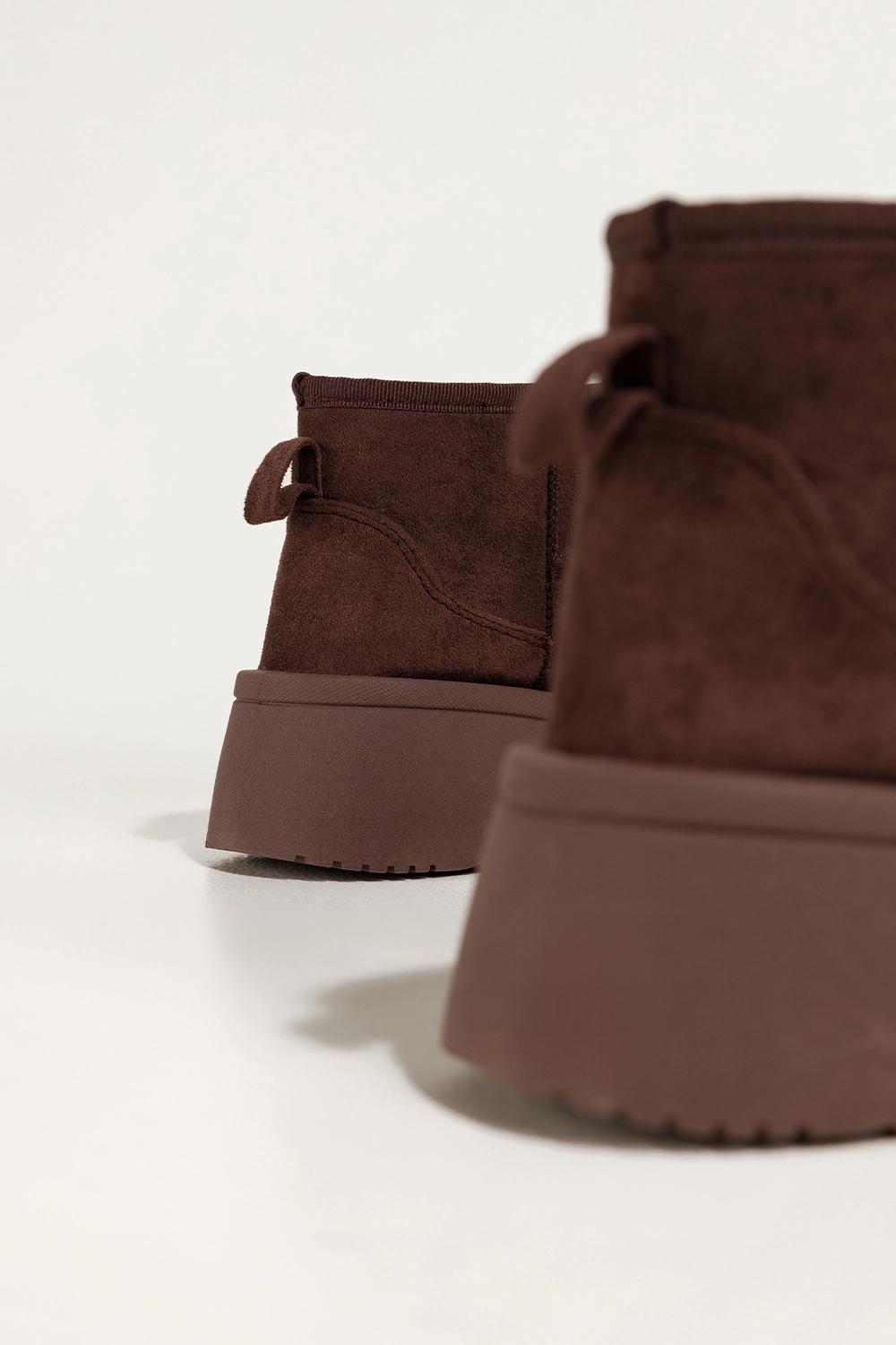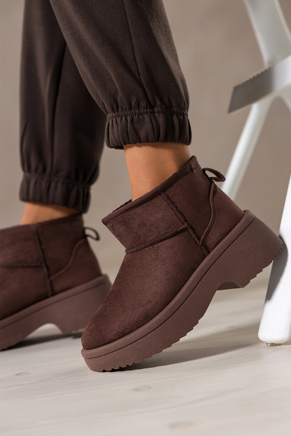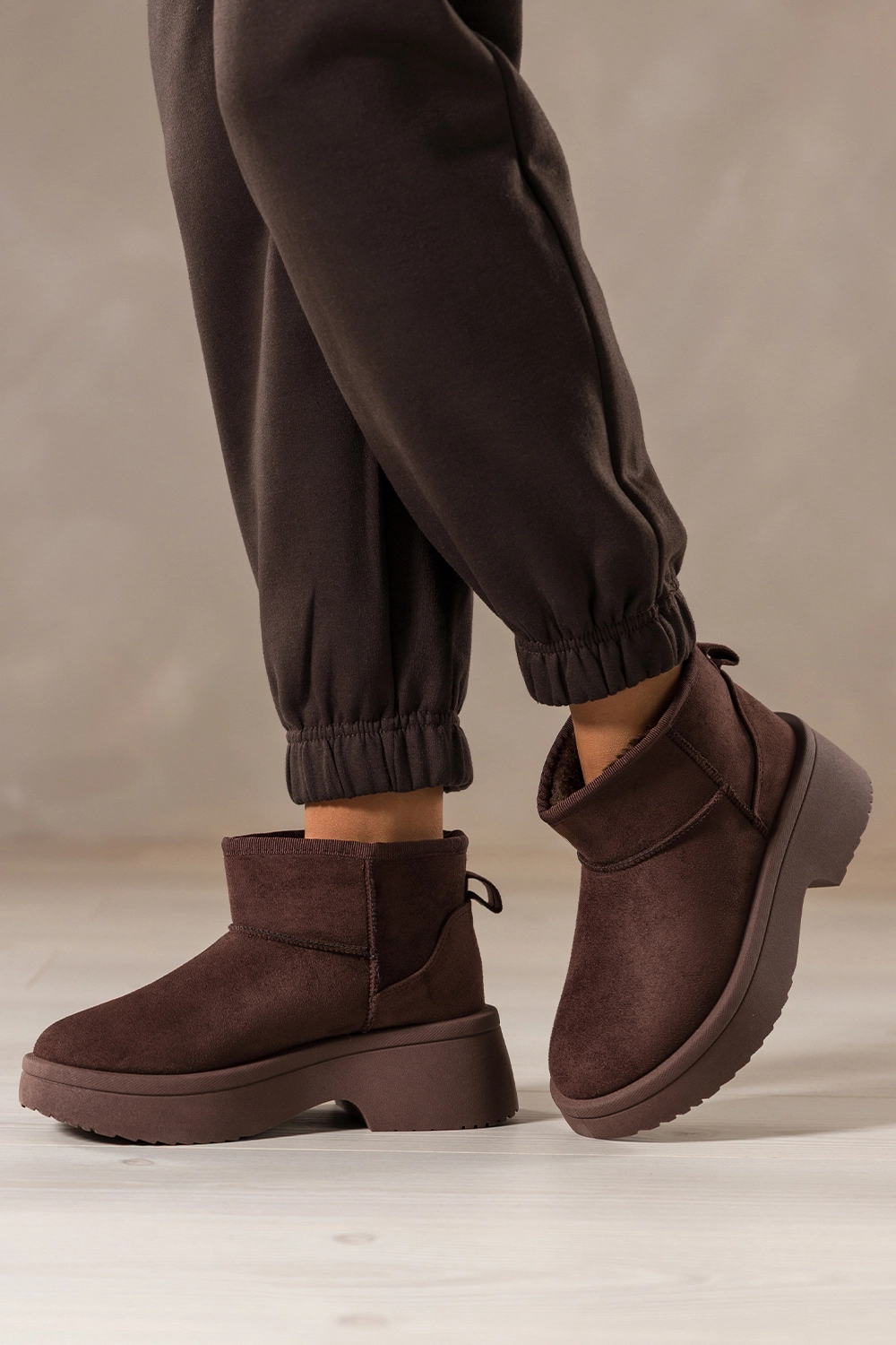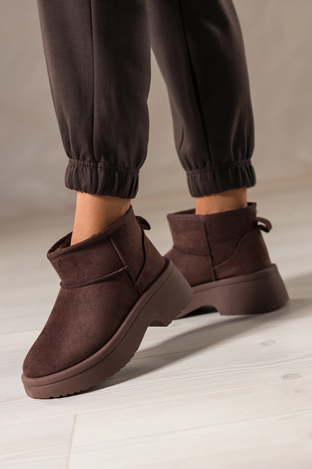 Czekoladowe śniegowce mukluki damskie na bieżnikowanej platformie Casu YP11-86