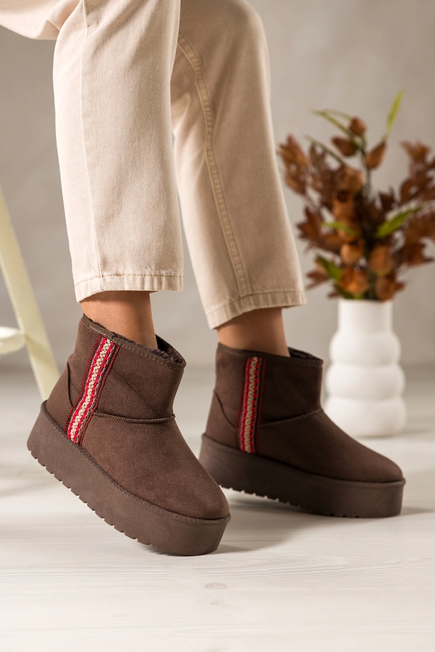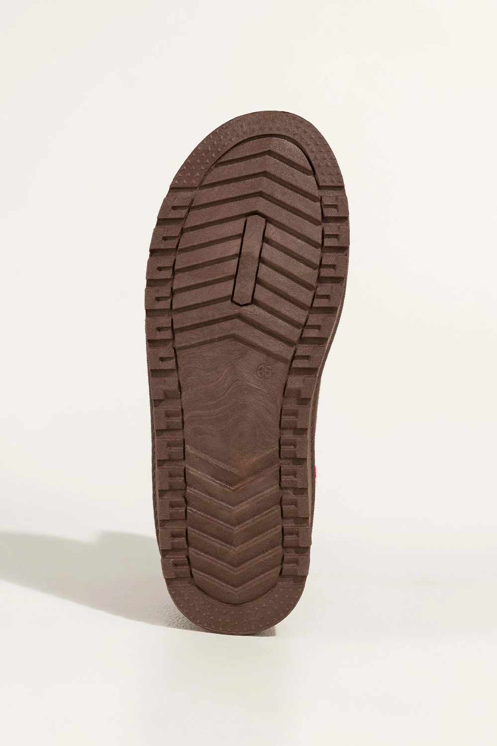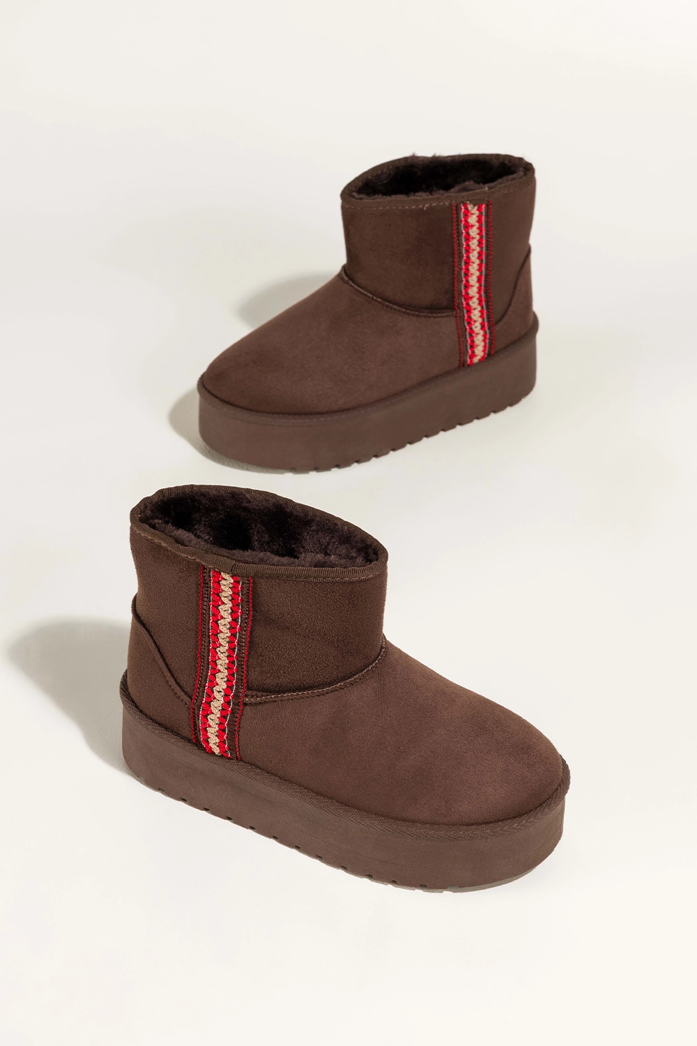 Czekoladowe śniegowce mukluki damskie na bieżnikowanej platformie z wzorzystą wstawką Casu model XU-19, idealne połączenie stylu, wygody i ochrony przed zimnem. Wykonane z wysokogatunkowej zamszowej skóry ekologicznej, zachwycają miękkością i trwałością materiału. Ocieplone przyjemnym w dotyku futerkiem, zapewniają maksymalny komfort nawet w najmroźniejsze dni. Wsuwany fason gwarantuje szybkie zakładanie i dopasowanie, a zaokrąglony nosek dodaje im subtelności. To obuwie stworzone z myślą o kobietach ceniących funkcjonalność i estetykę w jednym.
