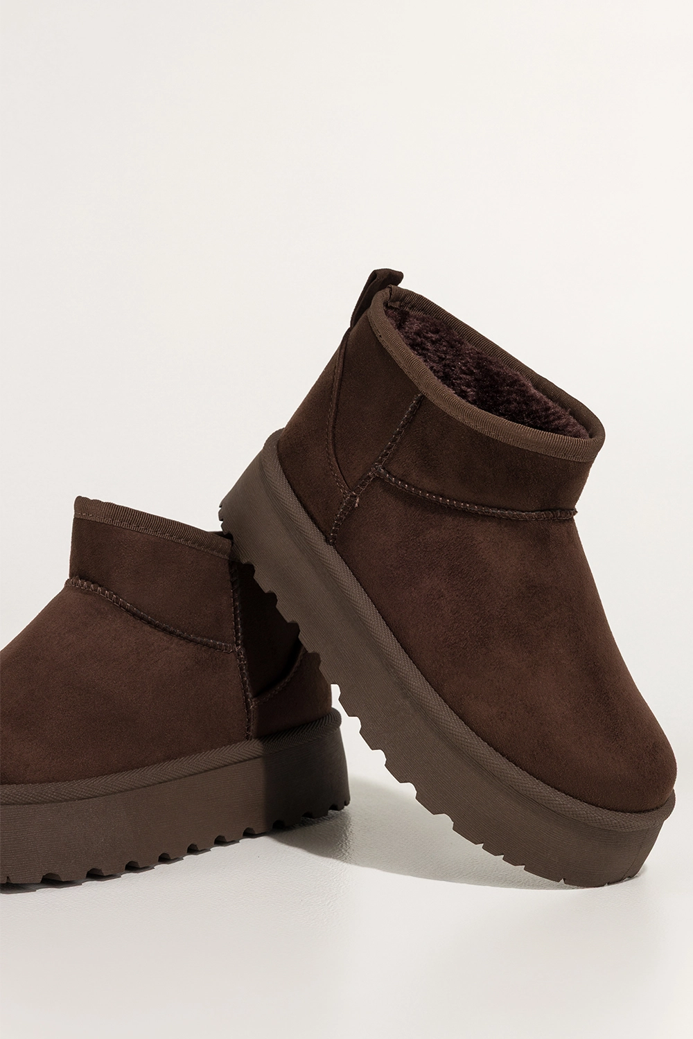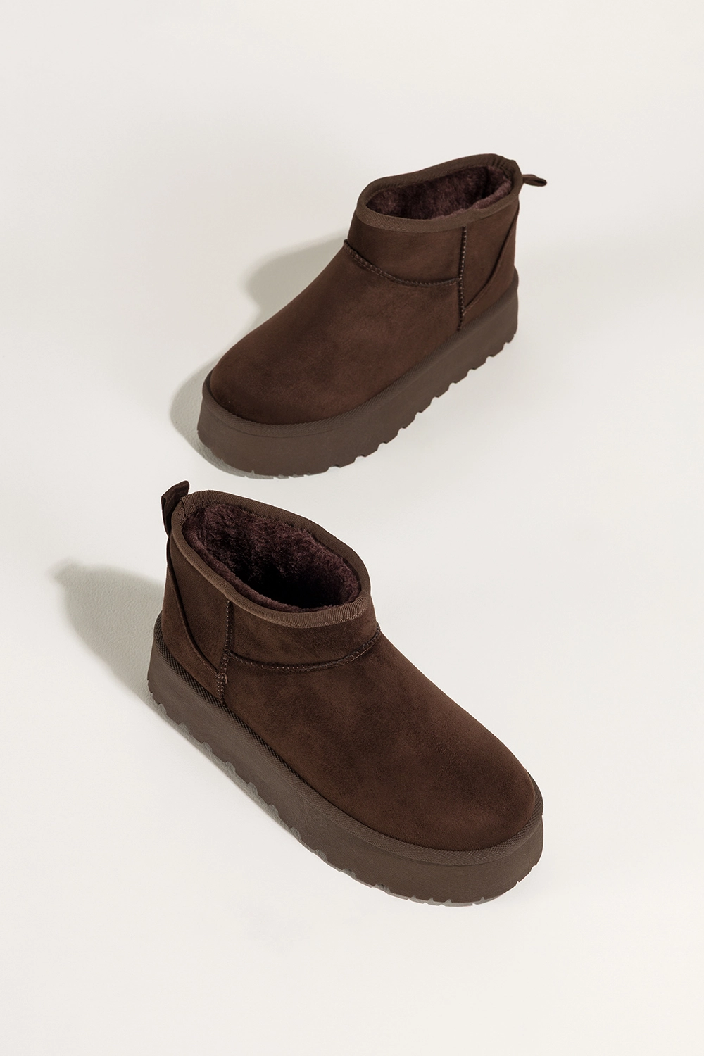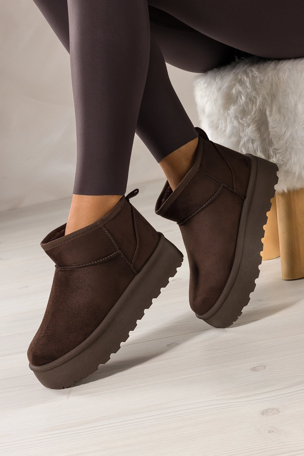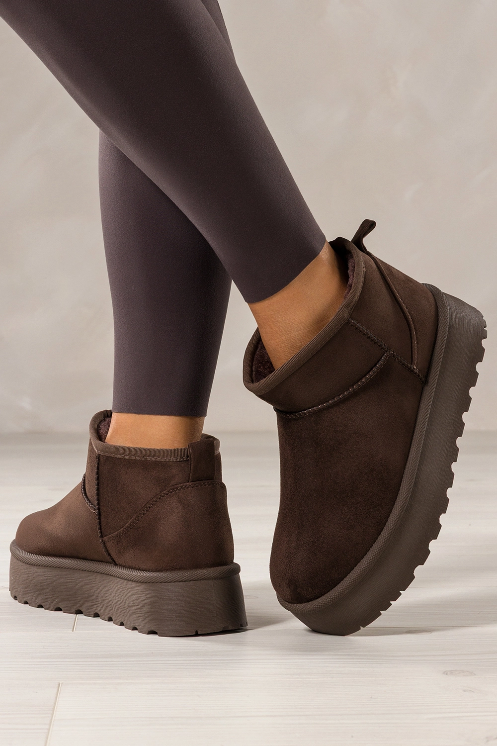 Czekoladowe śniegowce mukluki damskie na żłobionej platformie Casu EO758K
