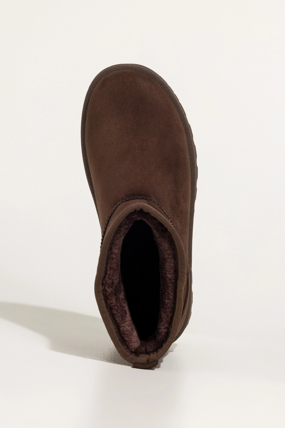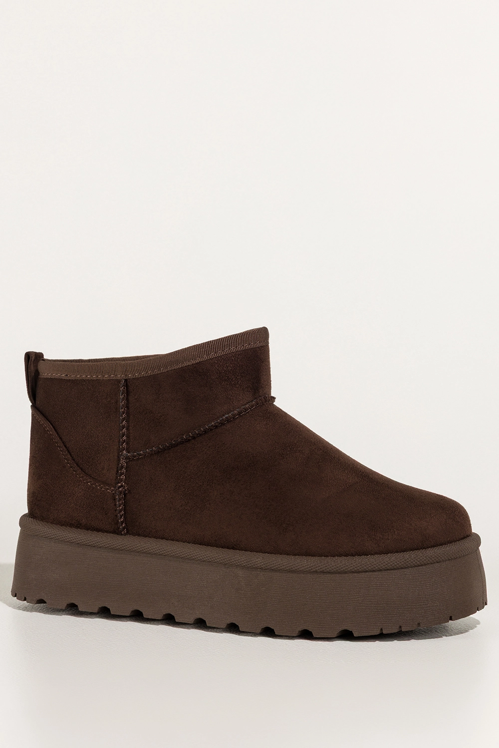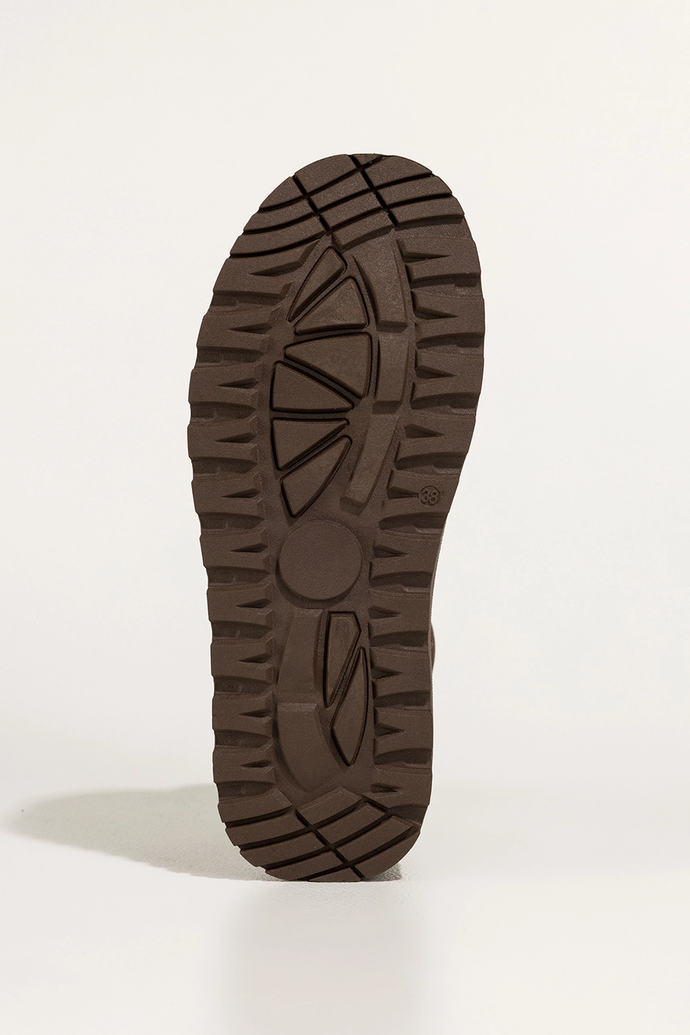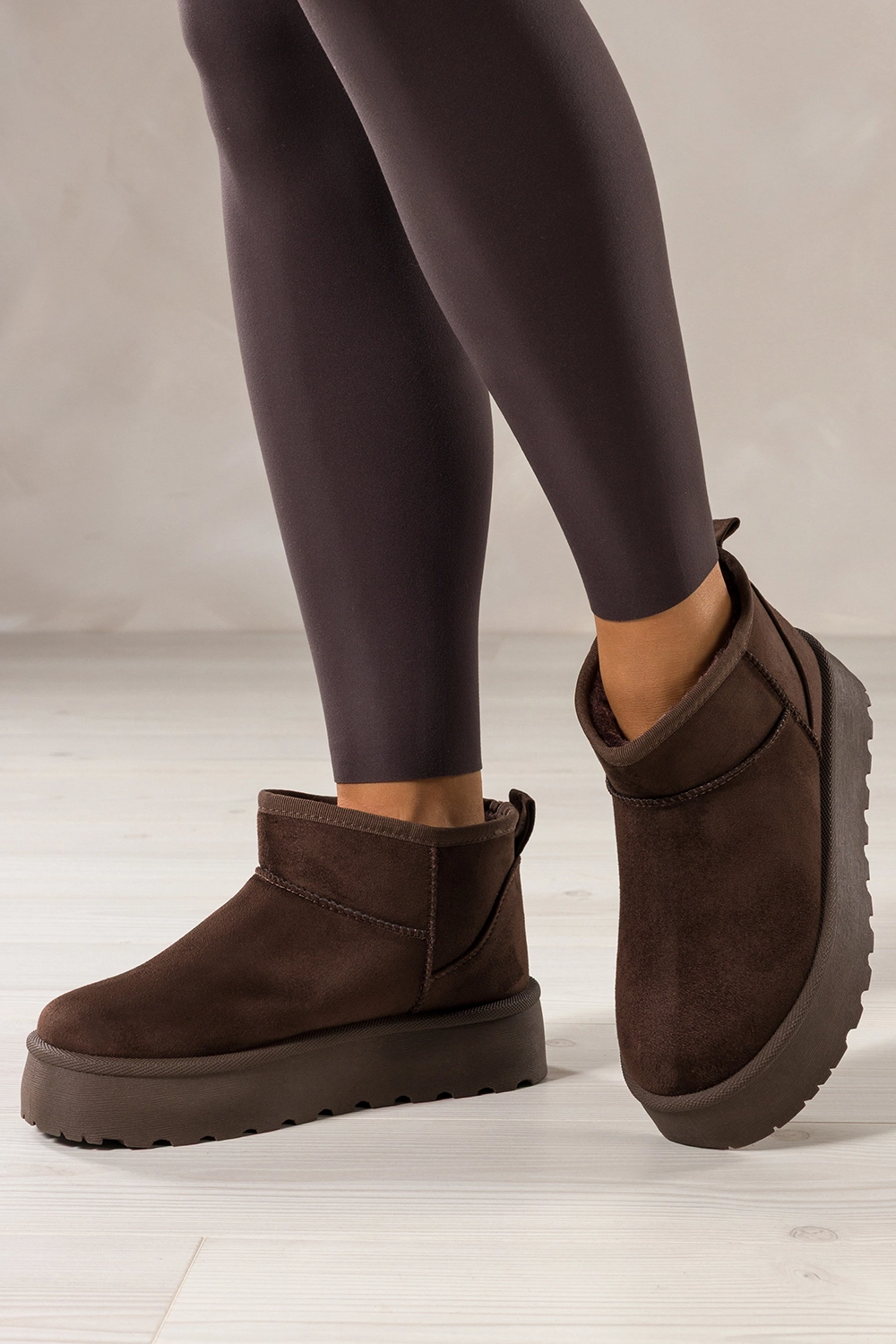 Czekoladowe śniegowce mukluki damskie na żłobionej platformie Casu EO758K