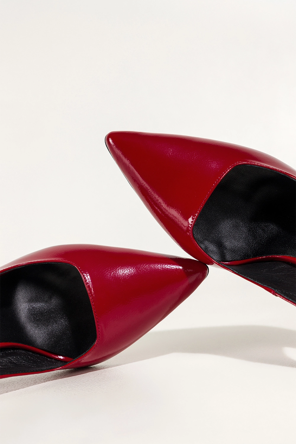 Czerwone czółenka skórzane damskie szpilki lakierowane z odkrytą piętą obcas kieliszek PRODUKT POLSKI Casu 7007-381