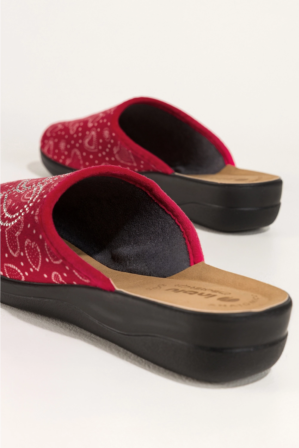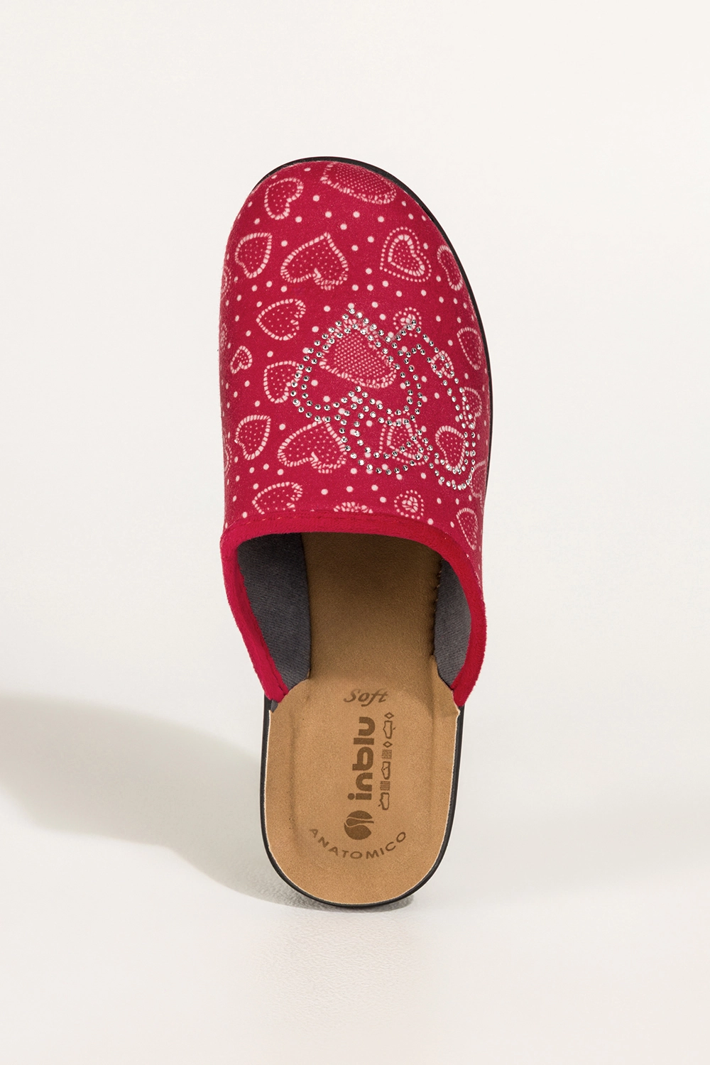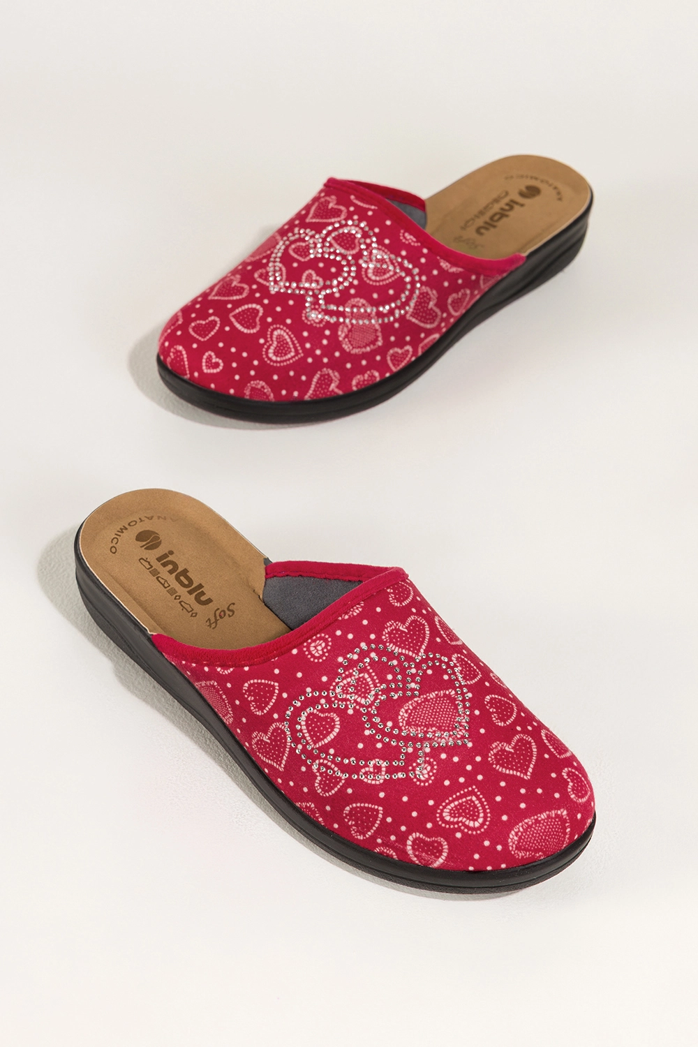 Czerwone kapcie damskie Inblu obuwie domowe serca z cyrkoniami wkładka soft model XU989Y99, komfortu i elegancji w domowym wydaniu. Wykonane z wysokogatunkowego materiału, gwarantują trwałość i estetykę na lata. Miękka wkładka soft z ekologicznej skóry otula stopy delikatnością, a zaokrąglony nosek zapewnia swobodę ruchu oraz wygodę przez cały dzień.