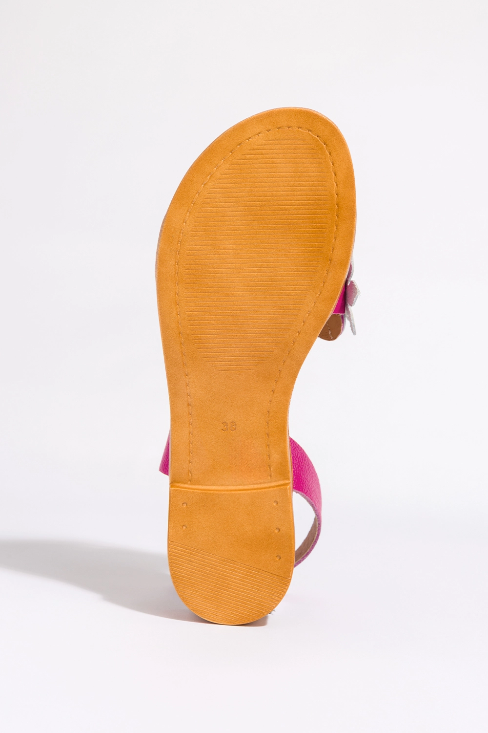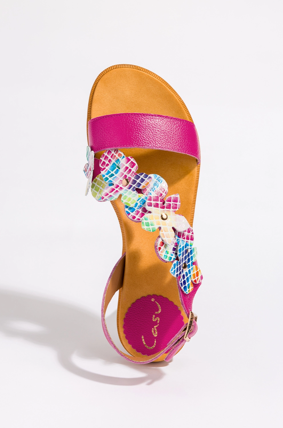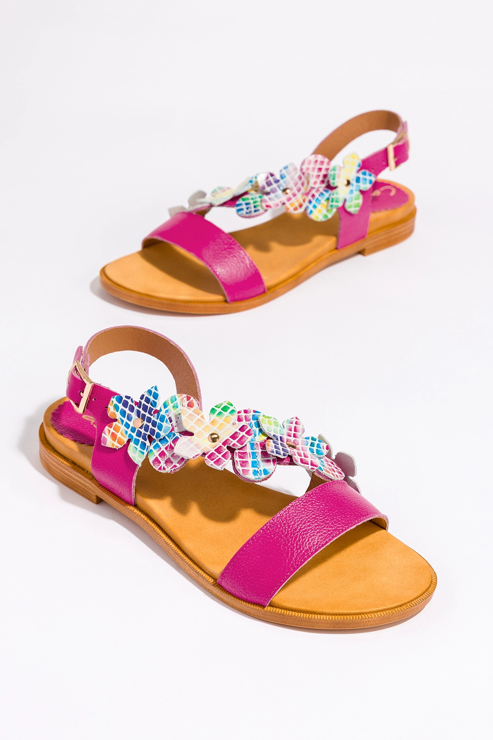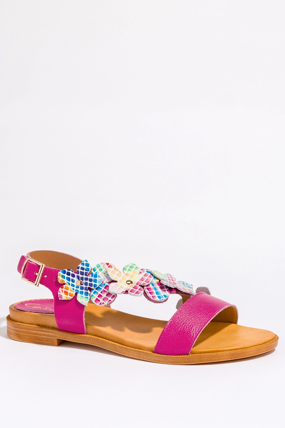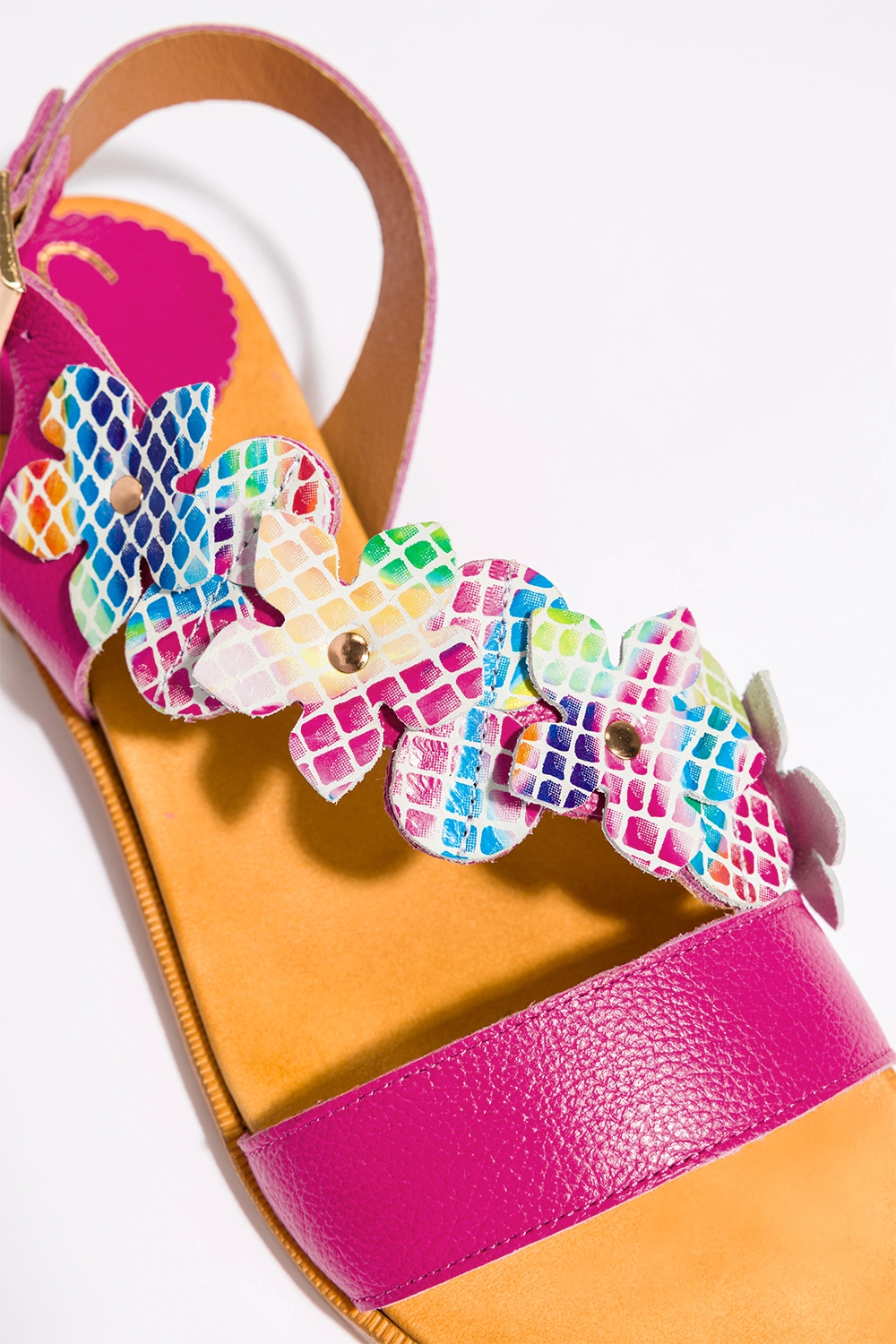 Fuksjowe sandały skórzane damskie płaskie z kolorowymi kwiatami PRODUKT POLSKI Casu 2762-197