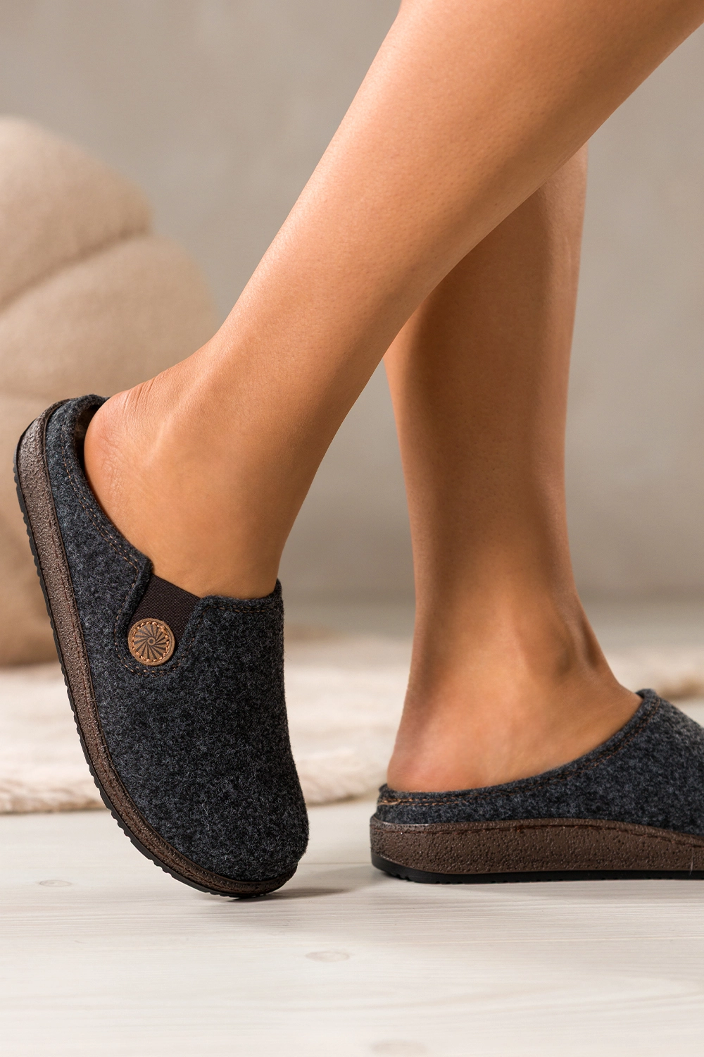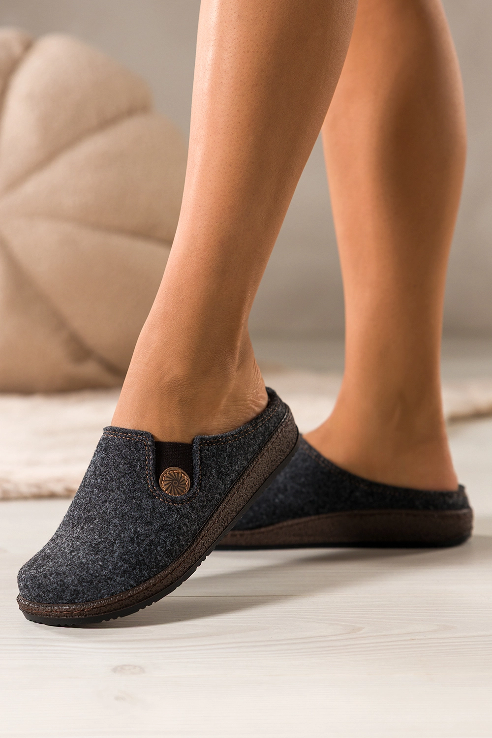 Doskonale sprawdzą się jako obuwie do codziennego użytku w domu, pracy zdalnej, a nawet jako lekki model do zabrania w podróż. Dzięki zastosowaniu filcu o wysokiej gęstości są lekkie, miękkie i jednocześnie solidne. Idealne dla kobiet ceniących funkcjonalność, estetykę i wysoką jakość. Ich płaska podeszwa zwiększa stabilność, a wyjmowana wkładka pozwala na łatwe utrzymanie higieny lub zastosowanie własnych wkładek ortopedycznych.