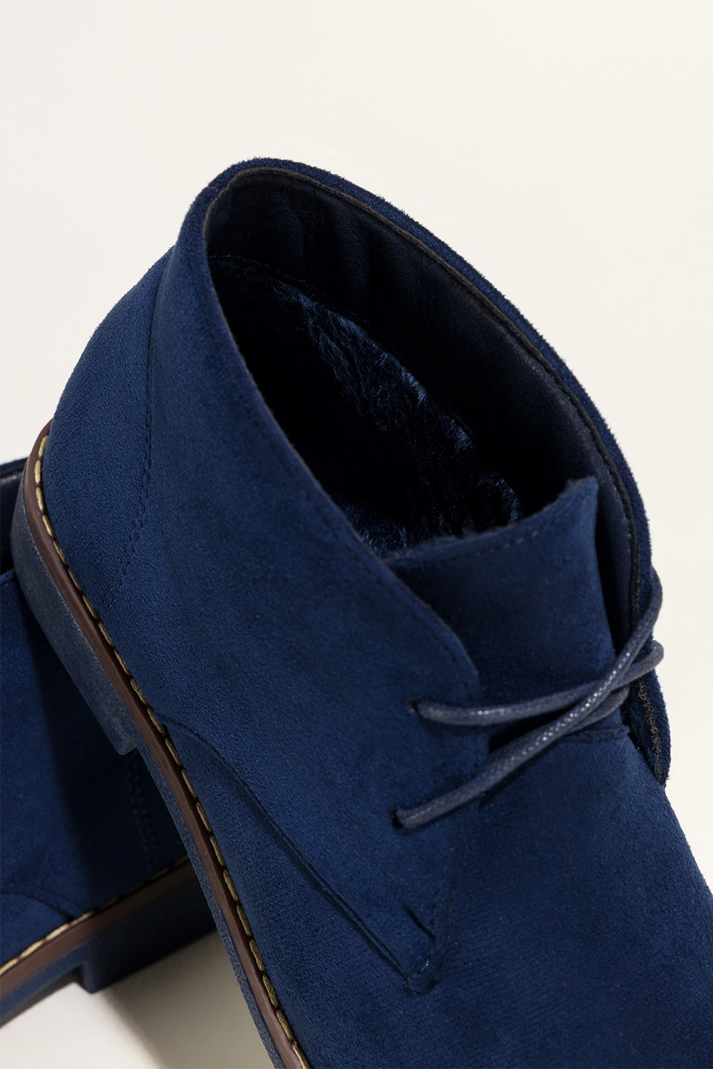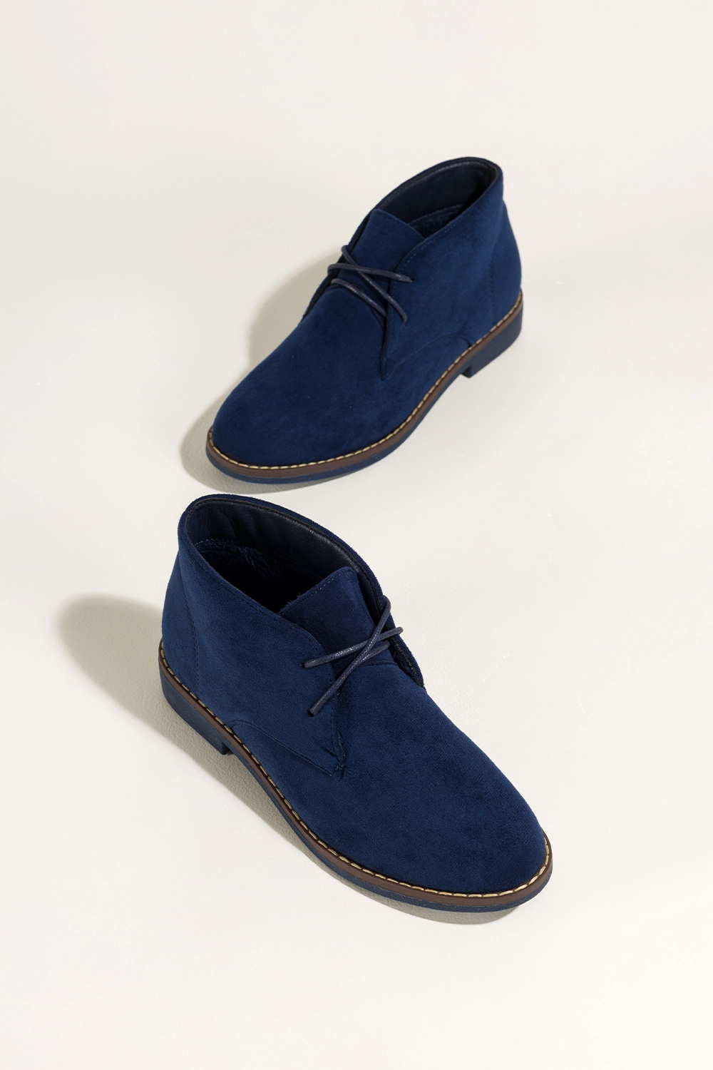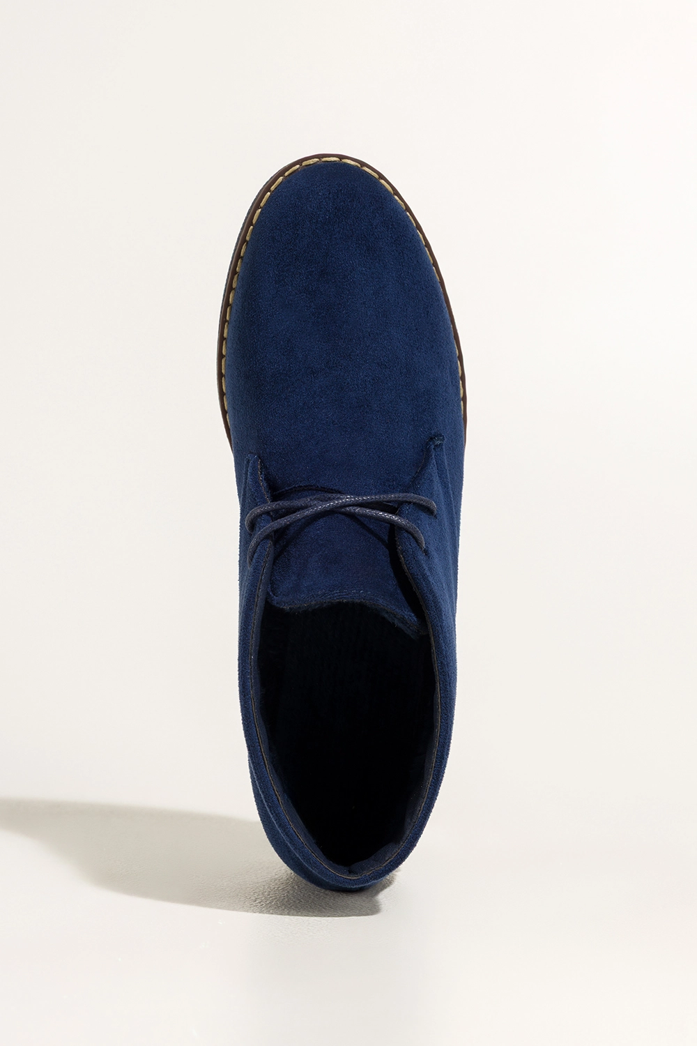 Granatowe botki damskie na płaskiej podeszwie z przeszyciami sznurowane Casu model 8997-3 wykonane zostały z wysokogatunkowego, miękkiego zamszu ekologicznego, który łączy elegancję z troską o środowisko. Precyzyjne przeszycia i solidna konstrukcja zapewniają trwałość na lata, a wnętrze ocieplane przyjemnym kocem obuwniczym gwarantuje ciepło nawet w najchłodniejsze dni. Zaokrąglony nosek i anatomiczny kształt sprawiają, że buty dopasowują się idealnie do stopy, oferując komfort przez cały dzień.