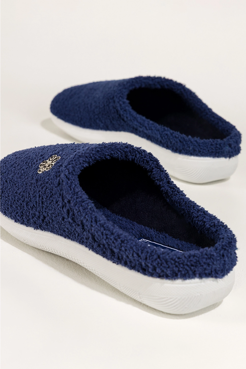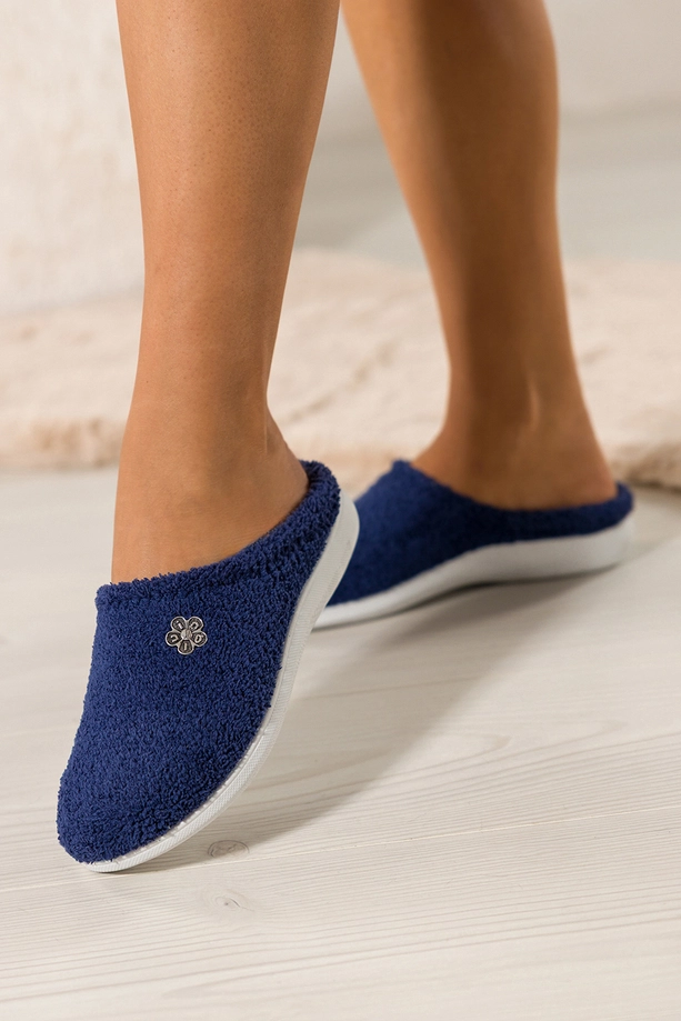 Granatowe kapcie damskie Inblu obuwie domowe ozdobny stalowy kwiatek model VX689899,wygoda i trwałości. Wykonane z wysokogatunkowego materiału, zapewniają miękkość i przyjemne otulenie stóp. Miękka wkładka materiałowa amortyzuje każdy krok, a solidne wykończenie gwarantuje, że posłużą Ci przez wiele sezonów.