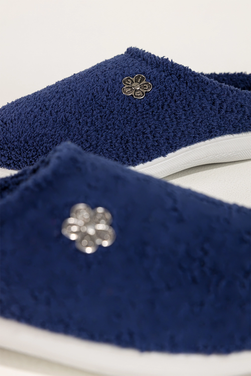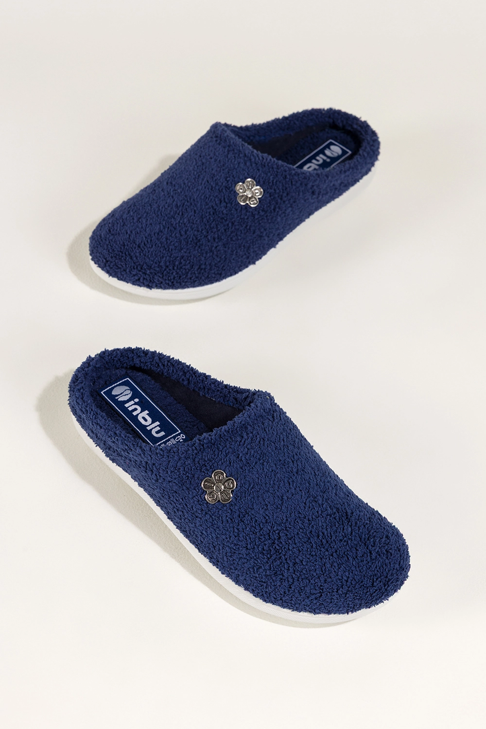 Granatowe kapcie damskie Inblu obuwie domowe ozdobny stalowy kwiatek VX689899