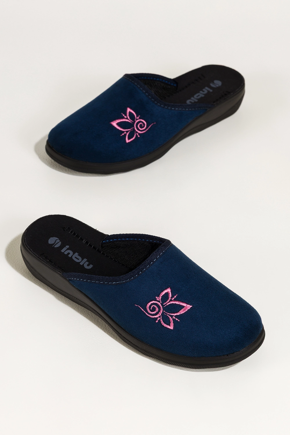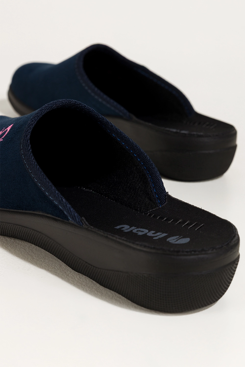 Granatowe kapcie damskie Inblu obuwie domowe z haftem XF99997W