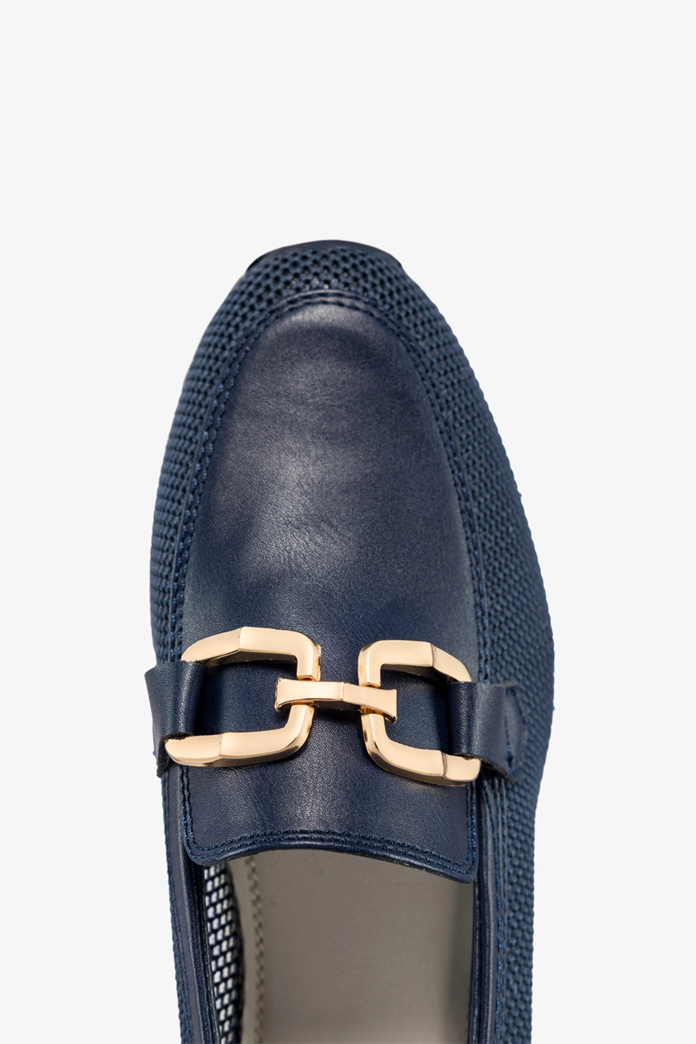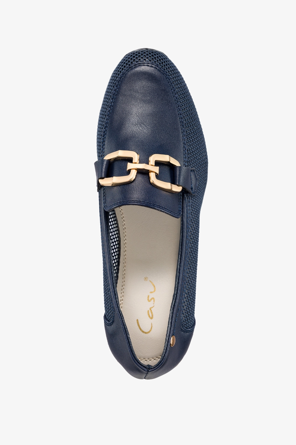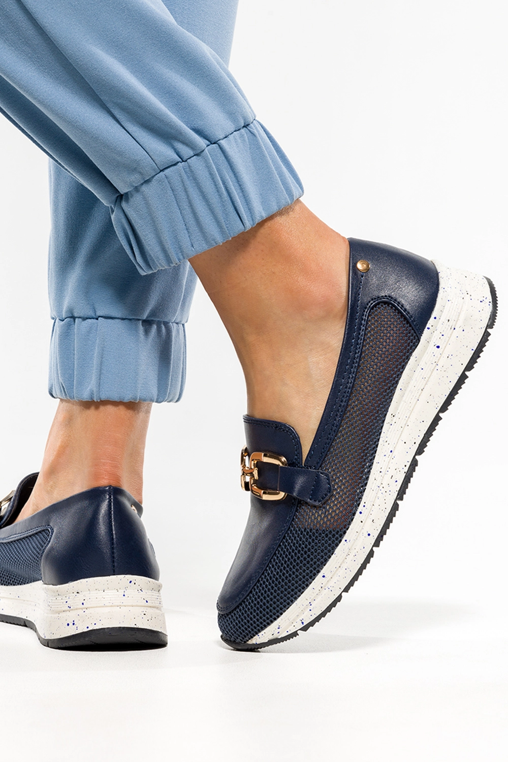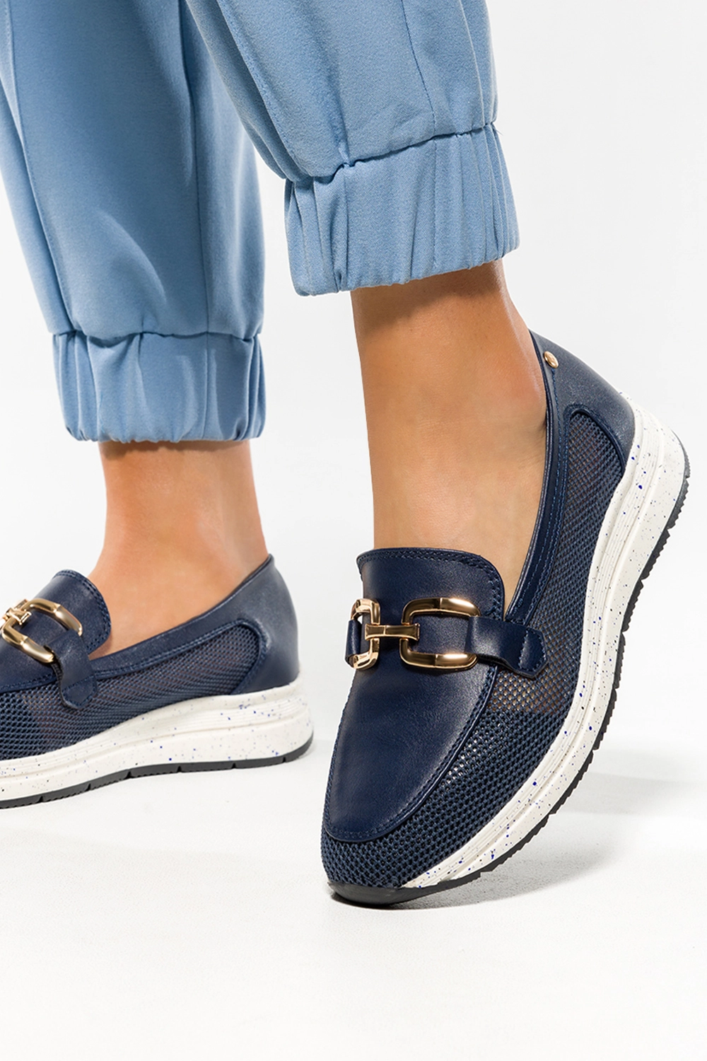 Granatowe mokasyny damskie ażurowe na platformie z ozdobą Casu M24X3-N-NO