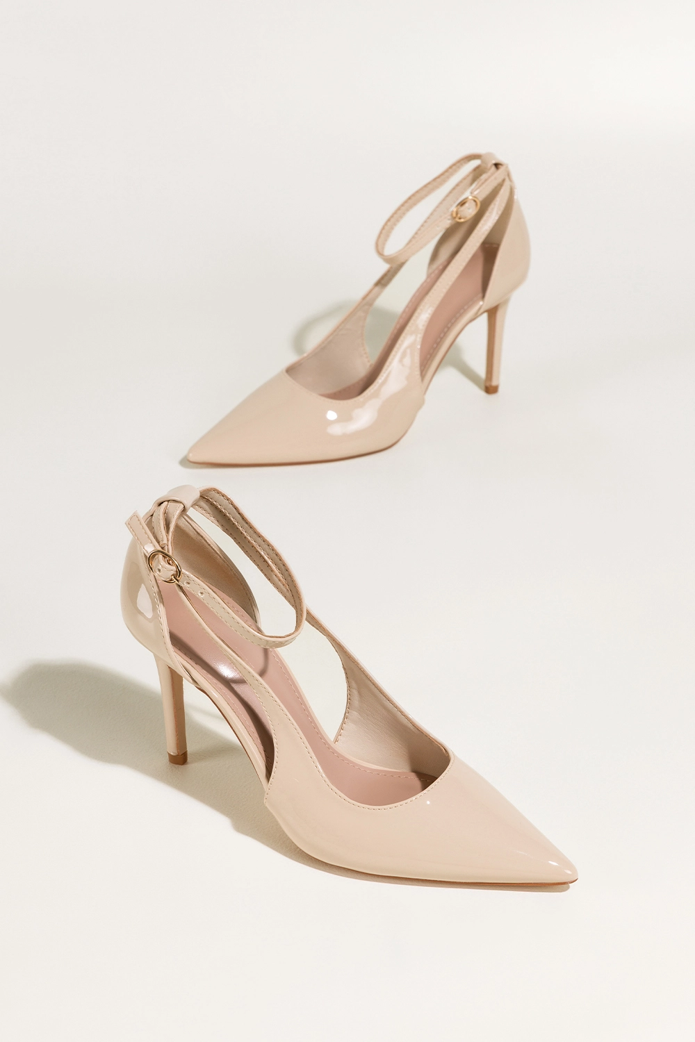 Jasnobeżowy kolor czółenek to symbol uniwersalnej elegancji, który bez trudu dopasujesz zarówno do ślubnej sukni, jak i klasycznej wieczorowej kreacji. Wycięcia w cholewce nadają lekkości, a pasek wokół kostki zapinany na złotą klamerkę nie tylko pięknie podkreśla nogę, ale również zapewnia stabilność i wygodę. Idealne na wesela, randki, przyjęcia czy ważne spotkania.