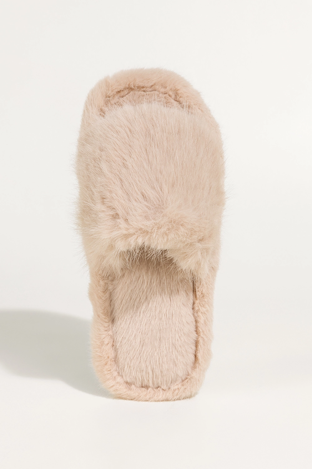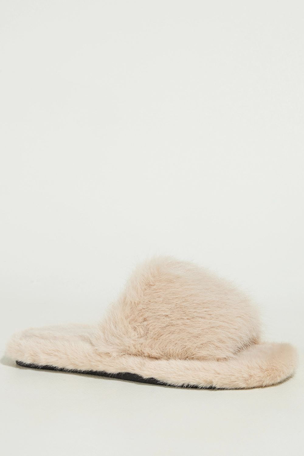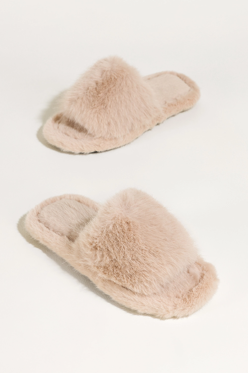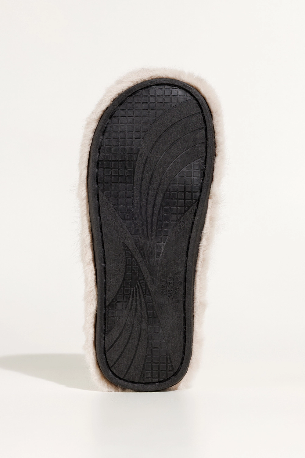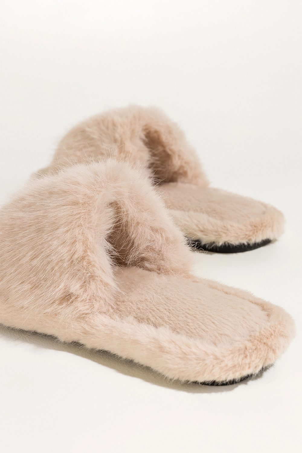 Jasnobeżowe kapcie damskie obuwie domowe futrzane szeroki pasek z futerkiem Casu UO960