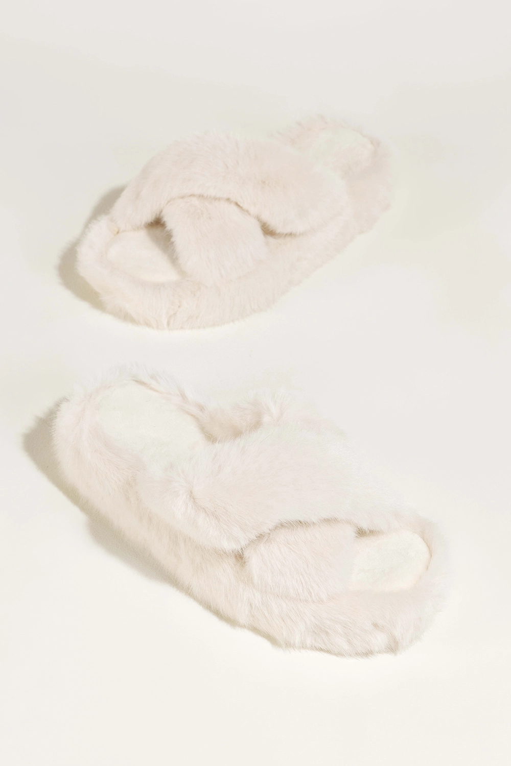 Kapcie ecru damskie obuwie domowe futrzane paski na krzyż Casu NG-42