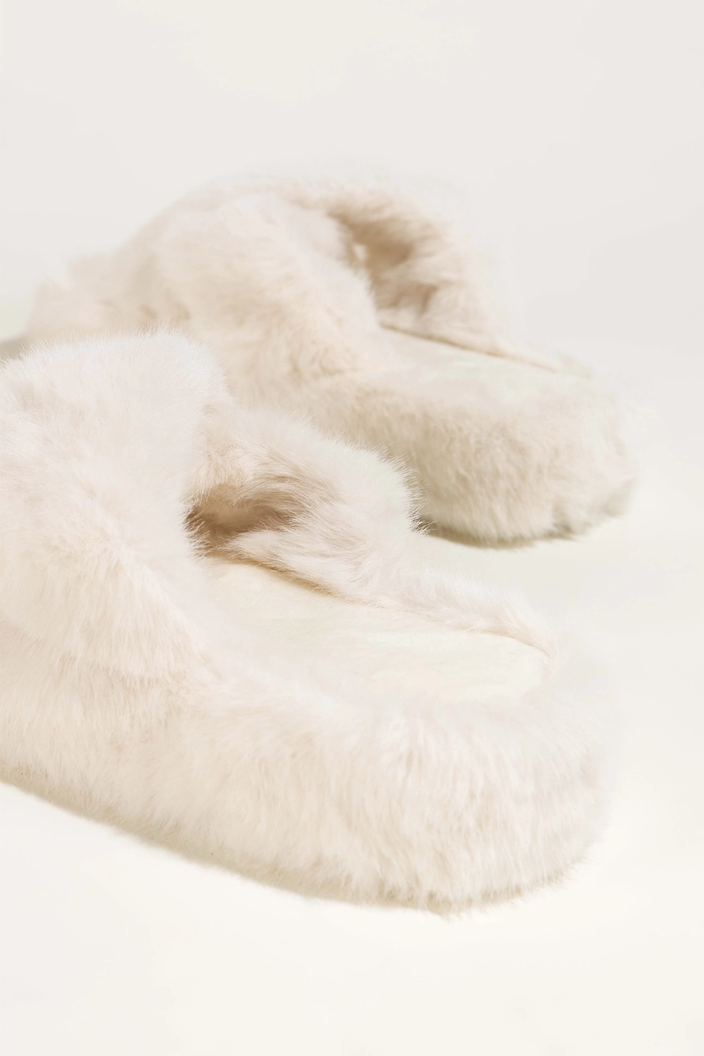 Kapcie ecru damskie obuwie domowe futrzane paski na krzyż Casu model NG-42. Wykonane z niesamowicie miękkiego, przyjemnego w dotyku futerka, zapewniają uczucie ciepła i relaksu z każdym krokiem. Ich wnętrze oraz wkładka pokryte futerkiem gwarantują maksymalny komfort użytkowania przez cały dzień. Subtelna platforma również obszyta futerkiem zapewnia wygodę i lekką amortyzację, chroniąc stopy przed chłodem podłoża.