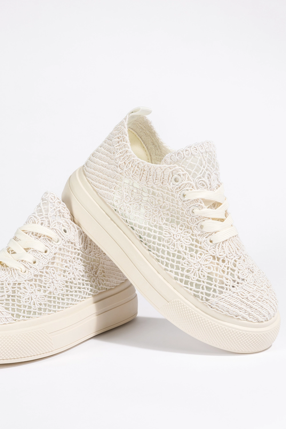 Modowy hit sezonu i stylizacyjna perełka — te sneakersy zachwycają swoim designem, który perfekcyjnie wpisuje się w najnowsze trendy streetwearowe. Koronkowa cholewka w kwiaty dodaje im niezwykle kobiecego charakteru, przełamując surowy look platformowych creepersów. Idealnie sprawdzą się zarówno w połączeniu z lekką, letnią sukienką, jak i z jeansami, luźnym t-shirtem czy casualową marynarką. Kremowe sznurówki podkreślają spójną, subtelną kolorystykę, tworząc buty, które można założyć zarówno na spacer po mieście, jak i na spotkanie z przyjaciółkami czy niezobowiązującą kolację. To must-have w szafie każdej kobiety, która ceni sobie balans pomiędzy wygodą a oryginalnym wyglądem.