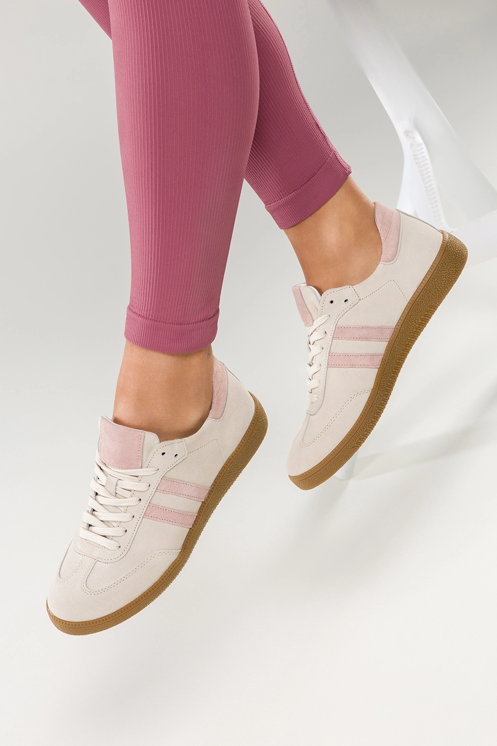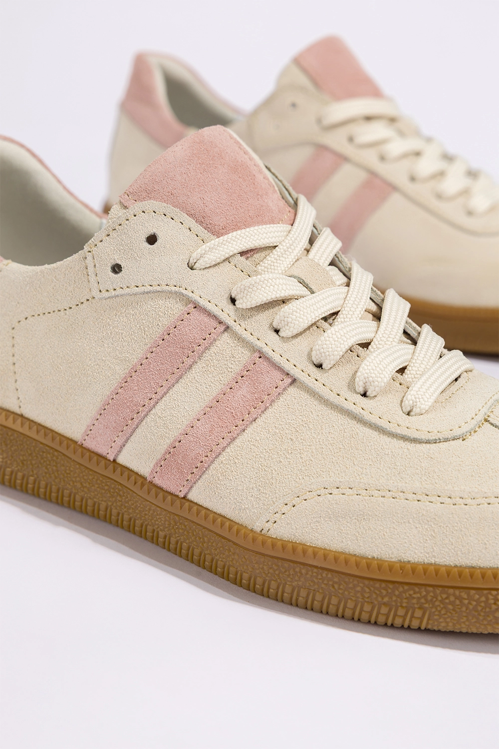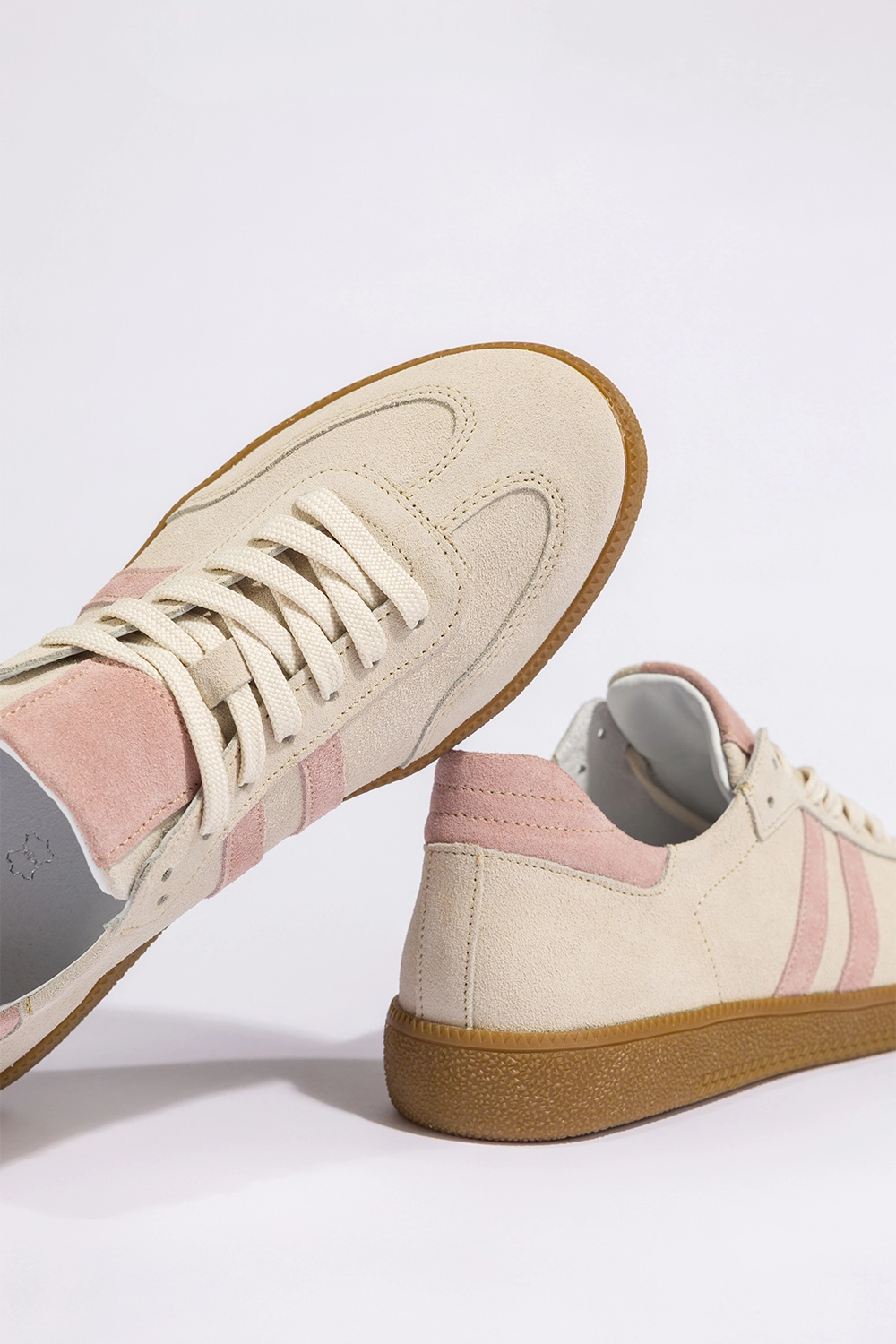 Uniwersalny styl i możliwości stylizacji sprawiają, że te sneakersy to inwestycja na wiele sezonów. Kremowa baza z akcentami różu tworzy subtelny, ale bardzo modny kontrast, który doskonale komponuje się z pastelowymi tonacjami, beżami, bielą czy klasyczną czernią. Dzięki temu obuwie świetnie sprawdzi się w miejskich stylizacjach – zestawione z jeansami, t-shirtem i marynarką tworzy nowoczesny, nonszalancki look. Ale równie dobrze sneakersy możesz założyć do plisowanej spódnicy i swetra, tworząc romantyczną i kobiecą stylizację na co dzień. To buty, które bez problemu zabierzesz na spacer, spotkanie z przyjaciółkami, a nawet do pracy, jeśli dress code pozwala na casualowe rozwiązania.