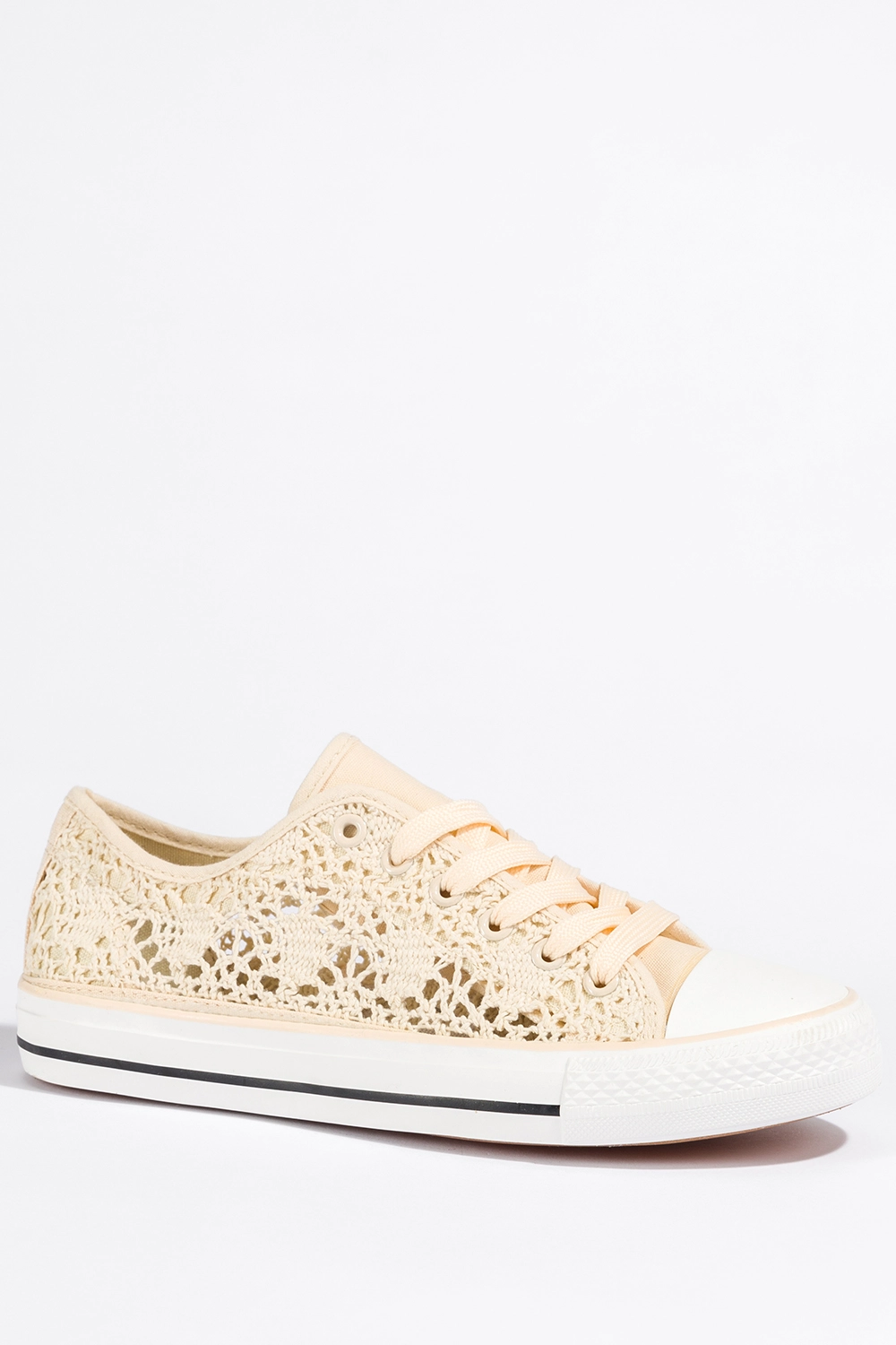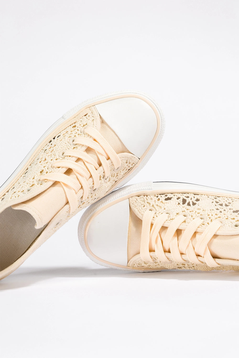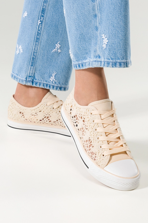 Kremowe trampki damskie koronkowe buty sportowe ażurowe sznurowane Casu EV-97