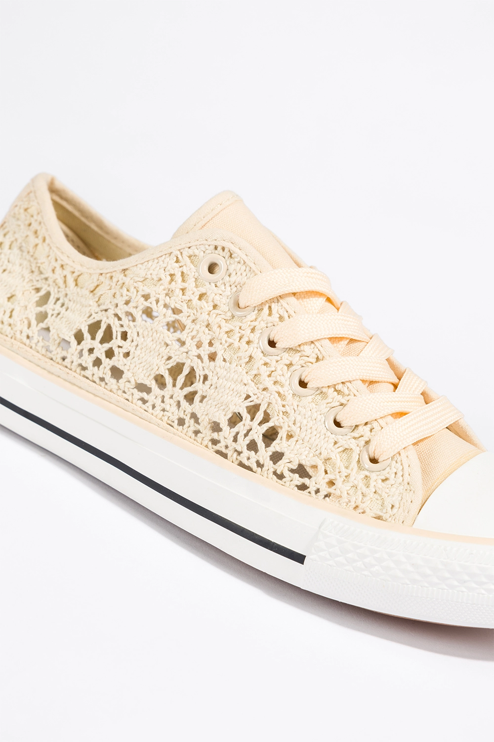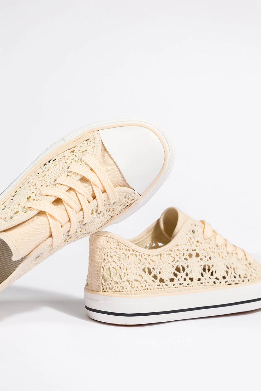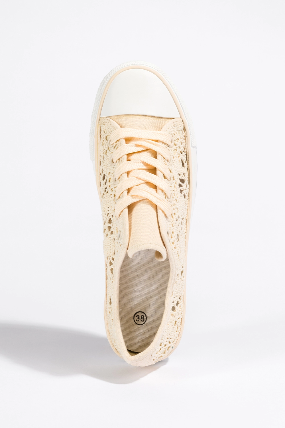 Kremowe trampki damskie koronkowe buty sportowe ażurowe sznurowane Casu EV-97