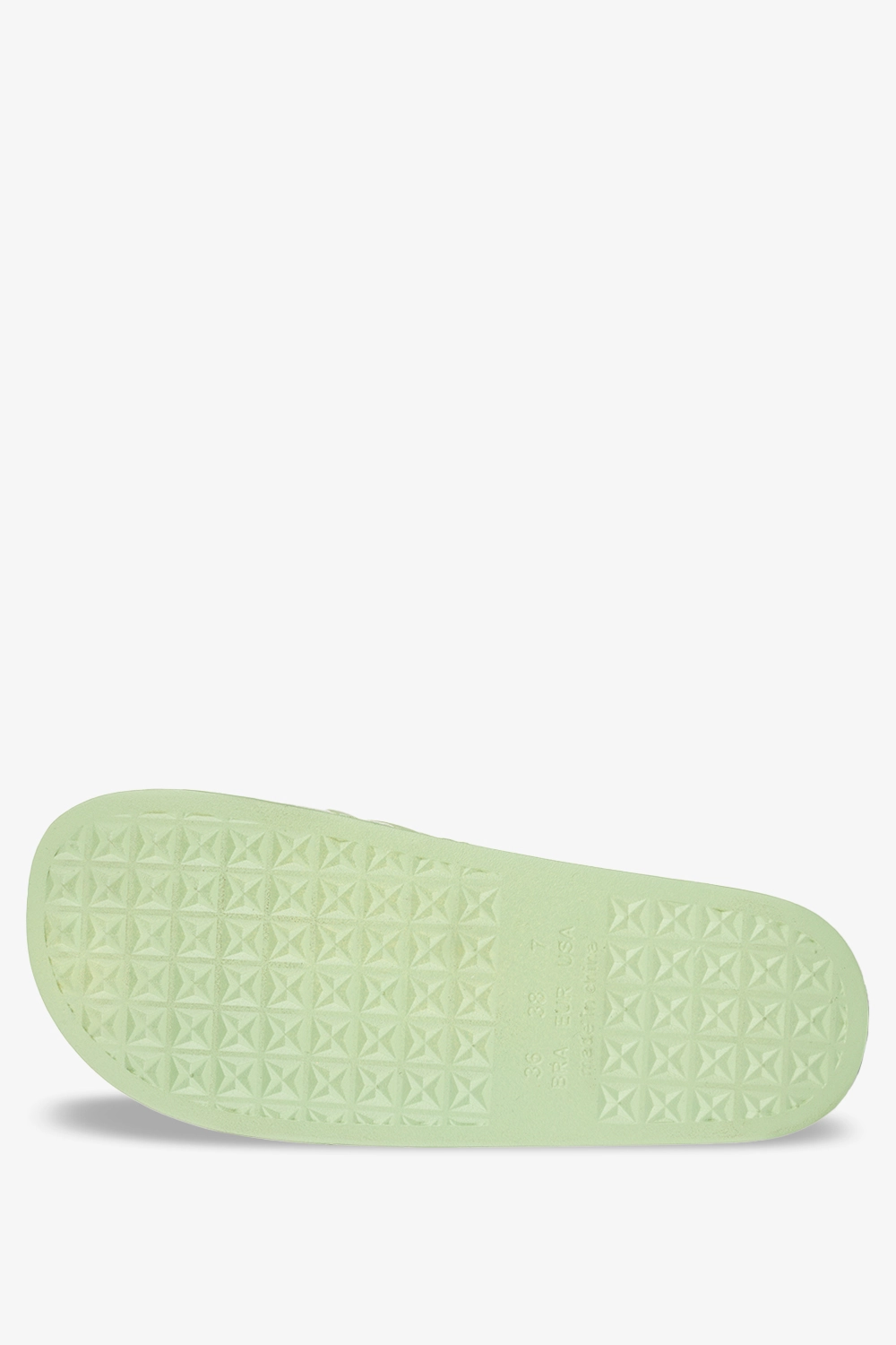 Miętowe klapki pikowane z metalową ozdobą Casu 325