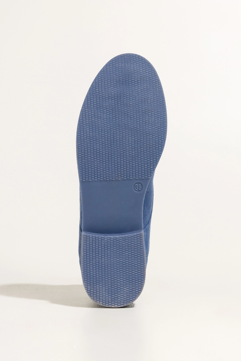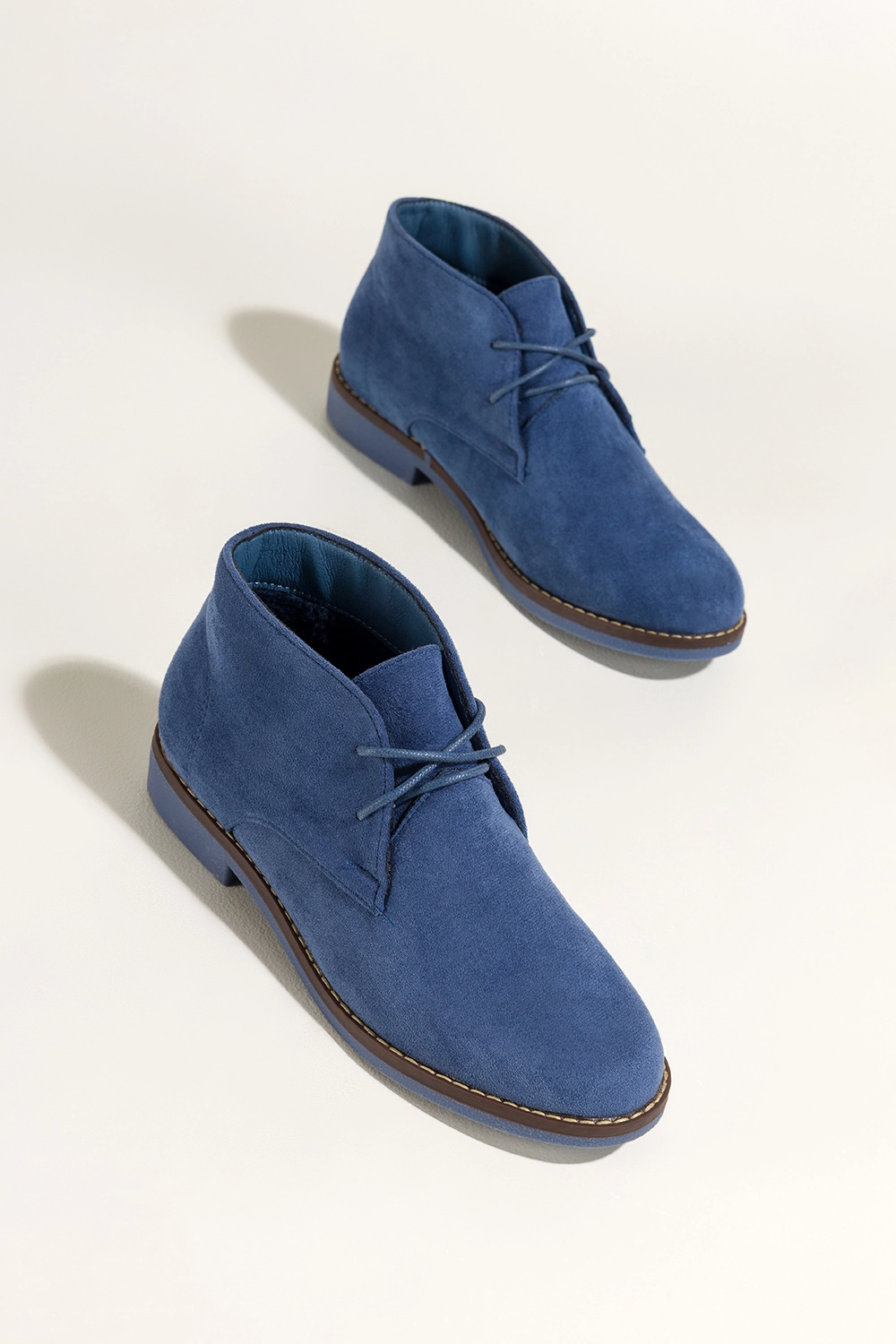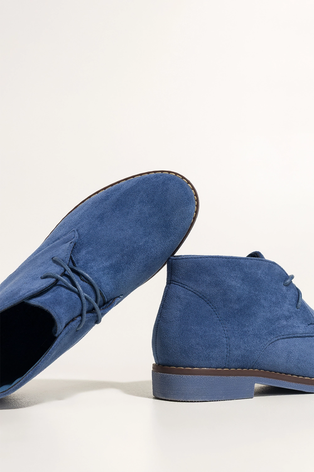 Niebieskie botki damskie na płaskiej podeszwie z przeszyciami sznurowane Casu model 8997-4, wyjątkowy styl na chłodniejsze dni. Wykonane z wysokogatunkowego zamszu ekologicznego, zachwycają miękkością w dotyku i solidnym wykonaniem. Wnętrze botków zostało starannie ocieplone przyjemnym kocem obuwniczym, dzięki czemu stopy pozostają ciepłe nawet w mroźne poranki. To idealny wybór dla kobiet, które cenią komfort bez kompromisów w kwestii stylu.