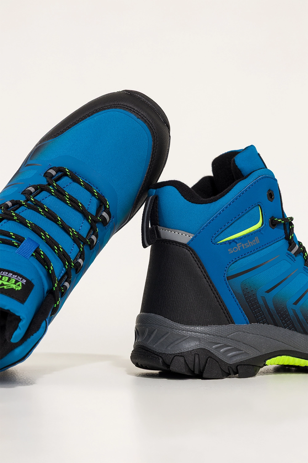 Niebieskie buty trekkingowe damskie softshell na bieżnikowanej podeszwie czarne wstawki sznurowane Carla model EY82939-1, nowoczesna technologia z przemyślaną konstrukcją, która gwarantuje wygodę nawet podczas najdłuższych wędrówek. Wysokogatunkowa skóra ekologiczna i miękka tekstylna wkładka dbają o komfort stopy. Solidna, bieżnikowana podeszwa zapewnia świetną przyczepność na śliskich i nierównych nawierzchniach, co czyni ten model idealnym wyborem na górskie szlaki, leśne ścieżki czy miejskie eskapady.