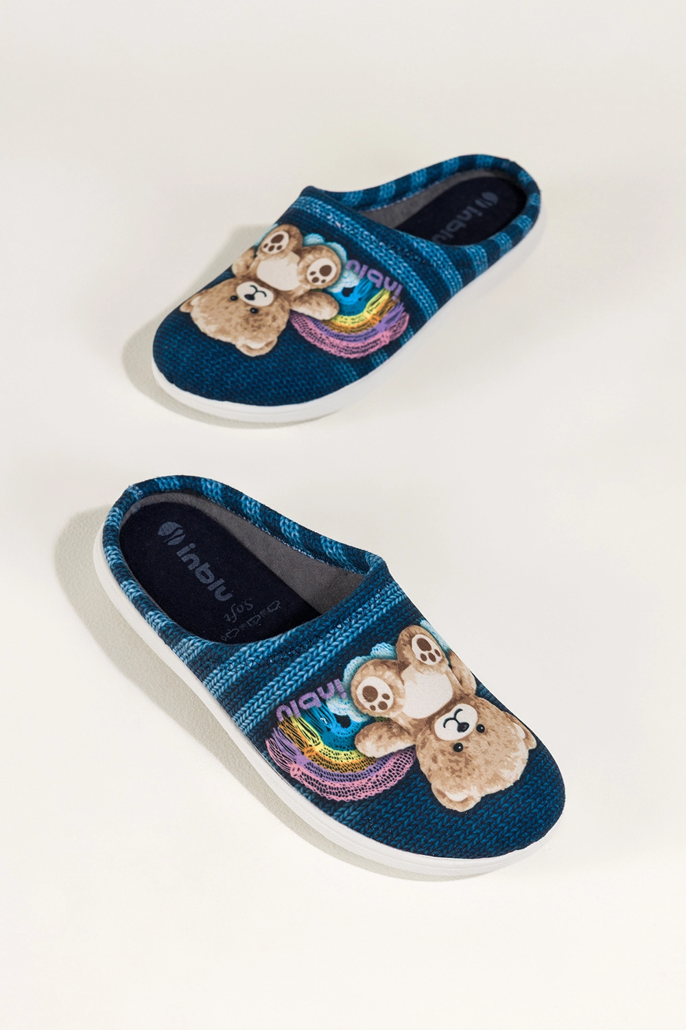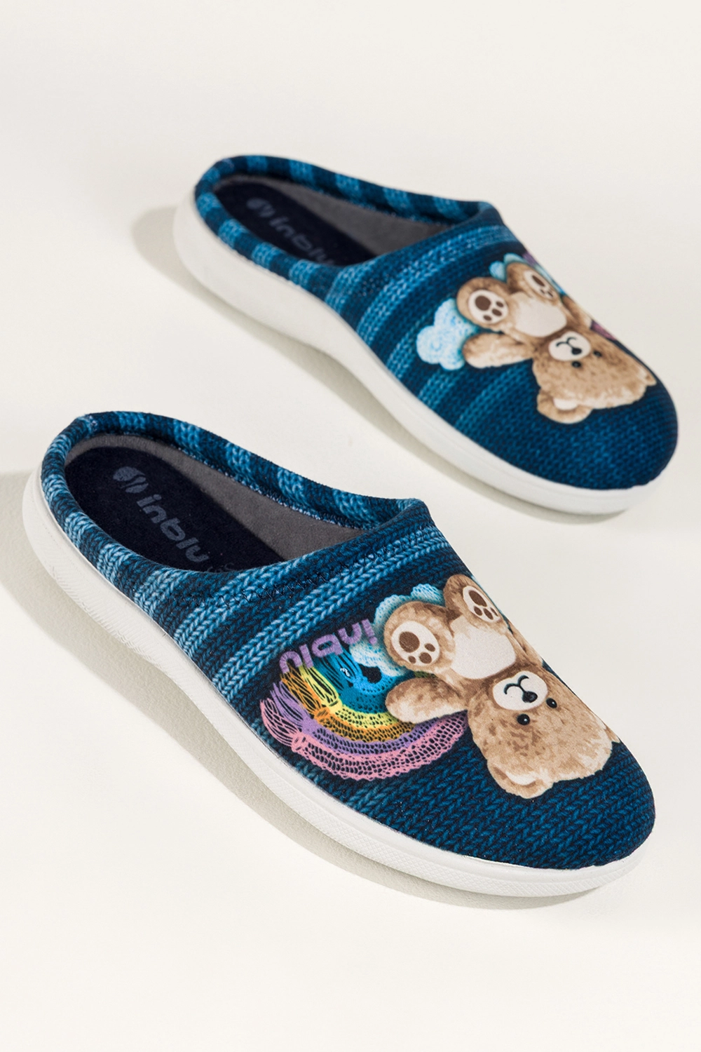 Niebieskie kapcie damskie Inblu obuwie domowe z misiem wkładka soft VX589499
