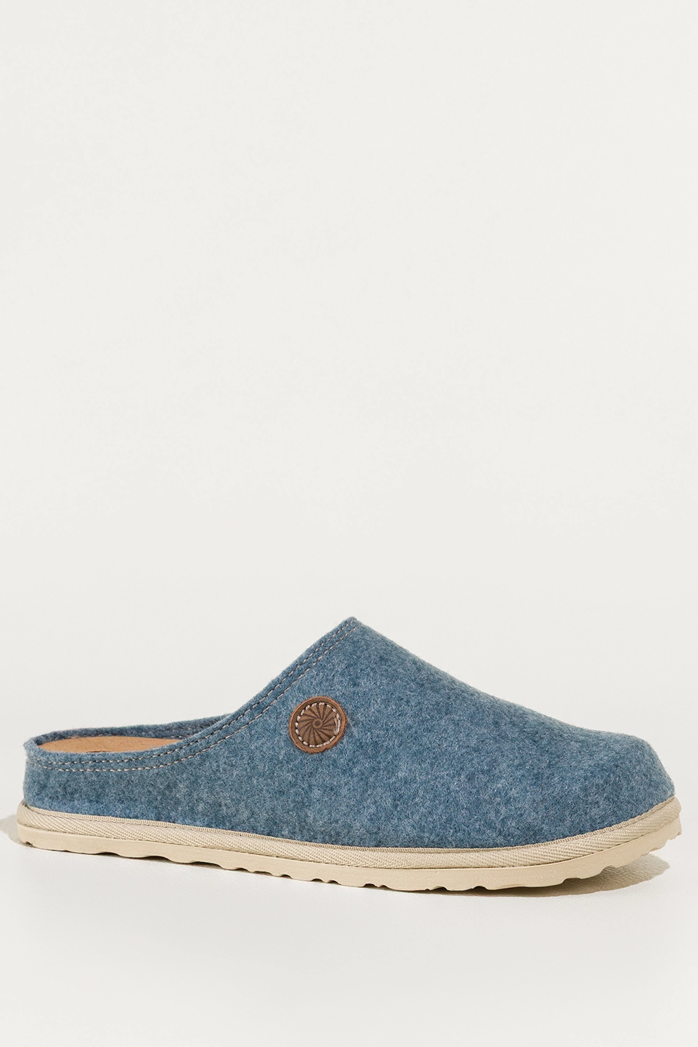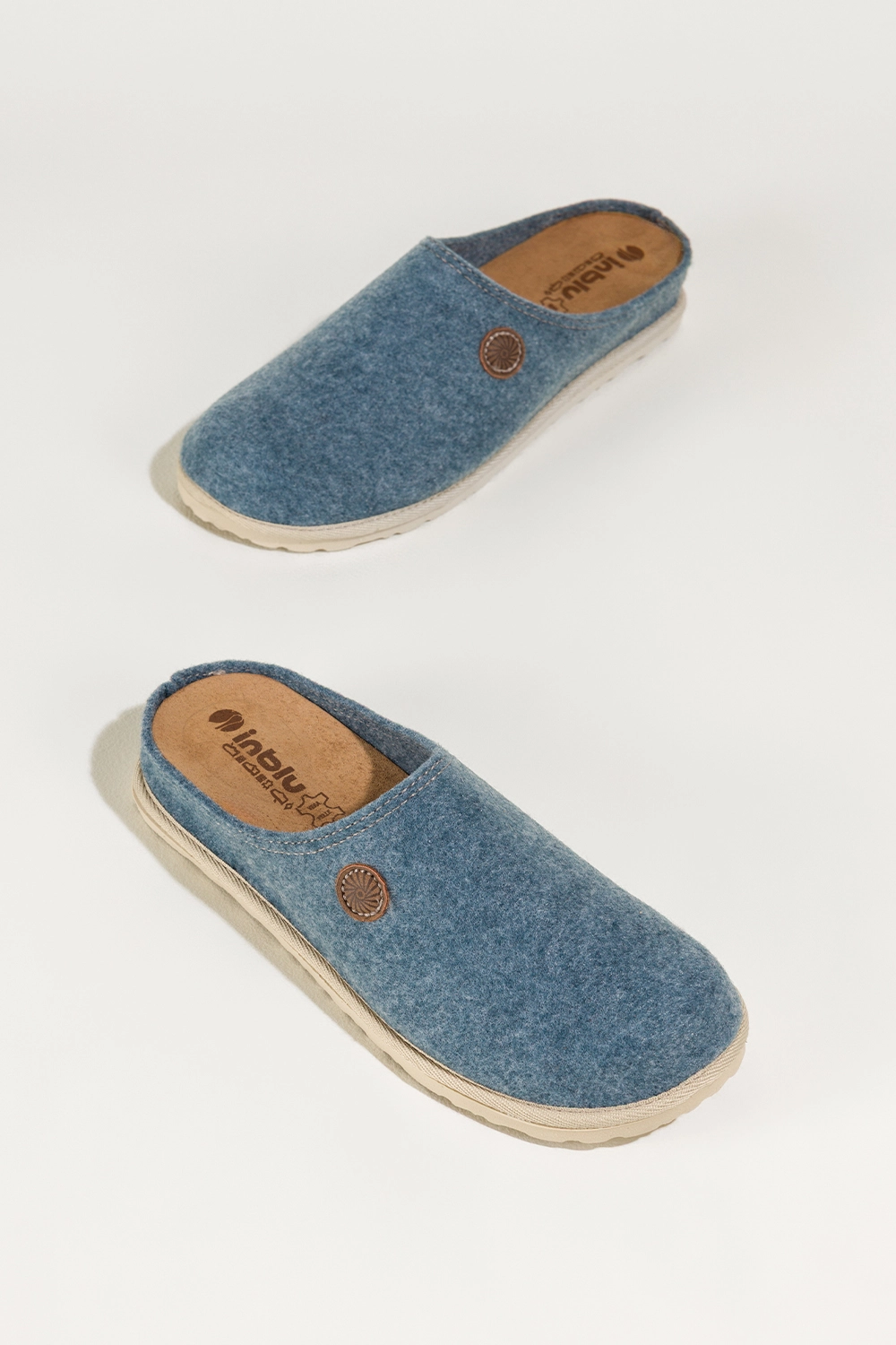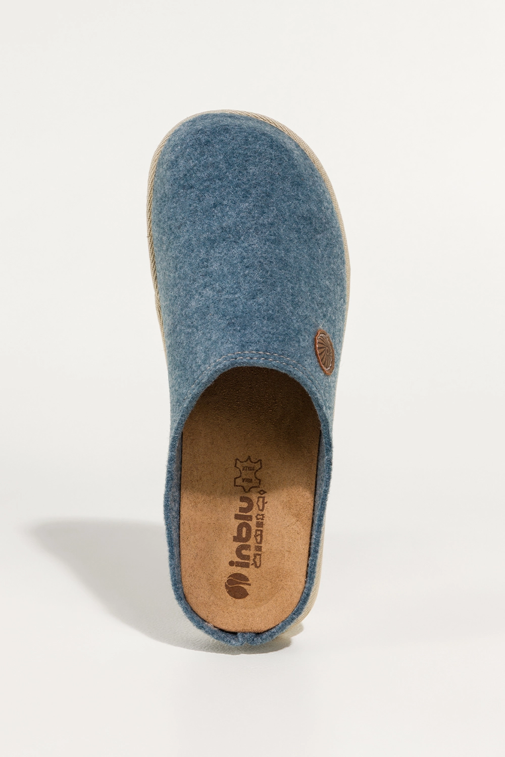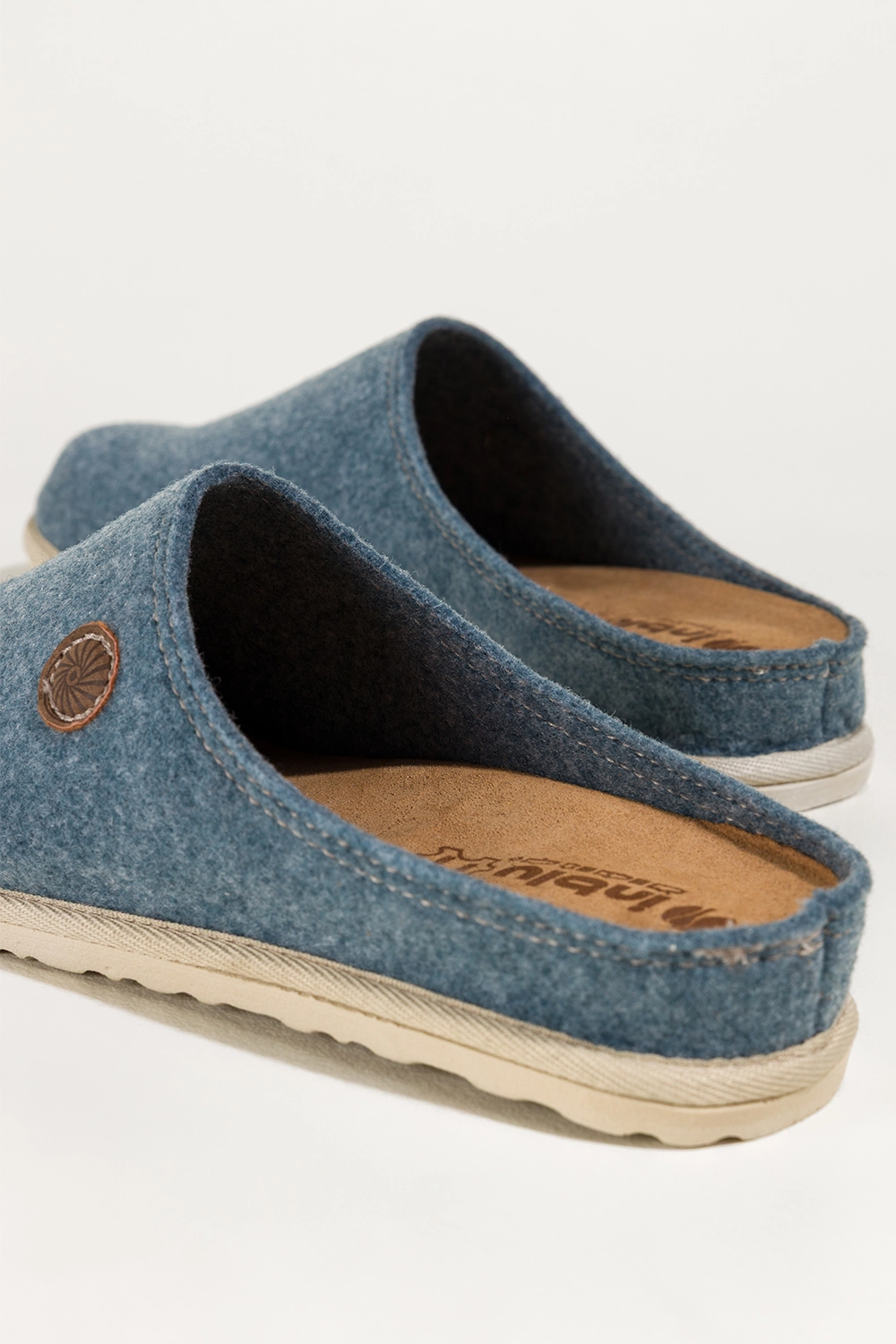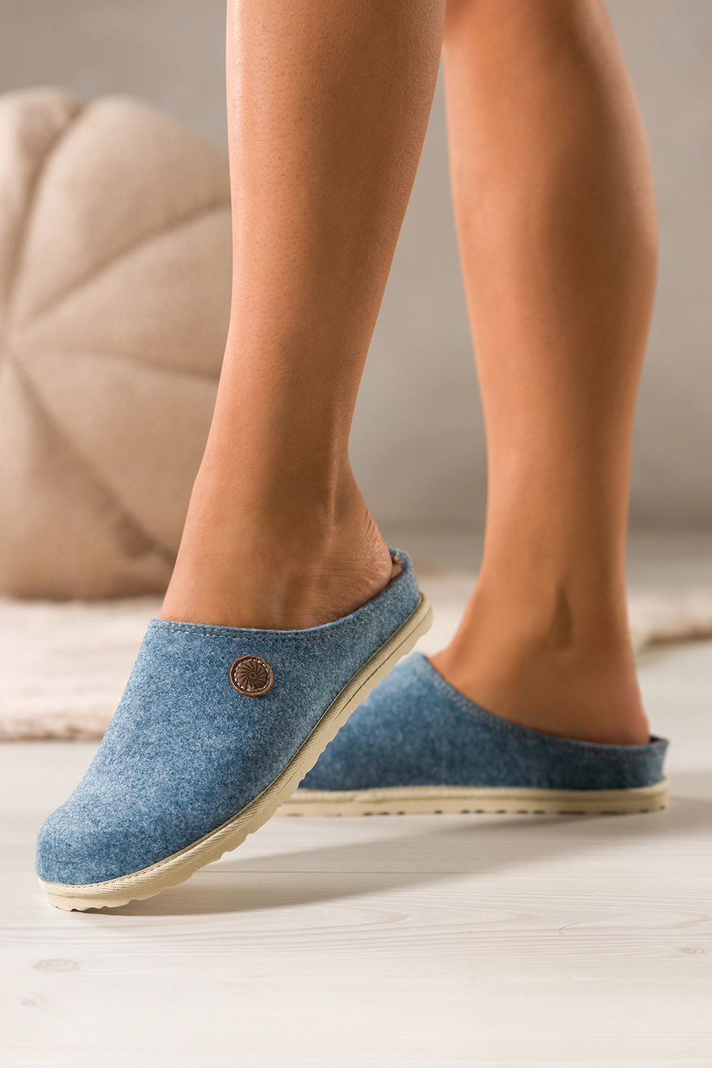 Niebieskie kapcie damskie Inblu obuwie domowe z wyjmowaną skórzaną wkładką ozdoba model XH999952. Cholewka została wykonana z wysokogatunkowego filcu, który zapewnia przyjemne ciepło. Miękka, wyjmowana wkładka ze skóry naturalnej gwarantuje higienę i wyjątkowy komfort noszenia, dopasowując się do kształtu stopy. Kapcie są nie tylko trwałe, ale także odporne na odkształcenia, co czyni je idealnym wyborem na chłodniejsze dni.