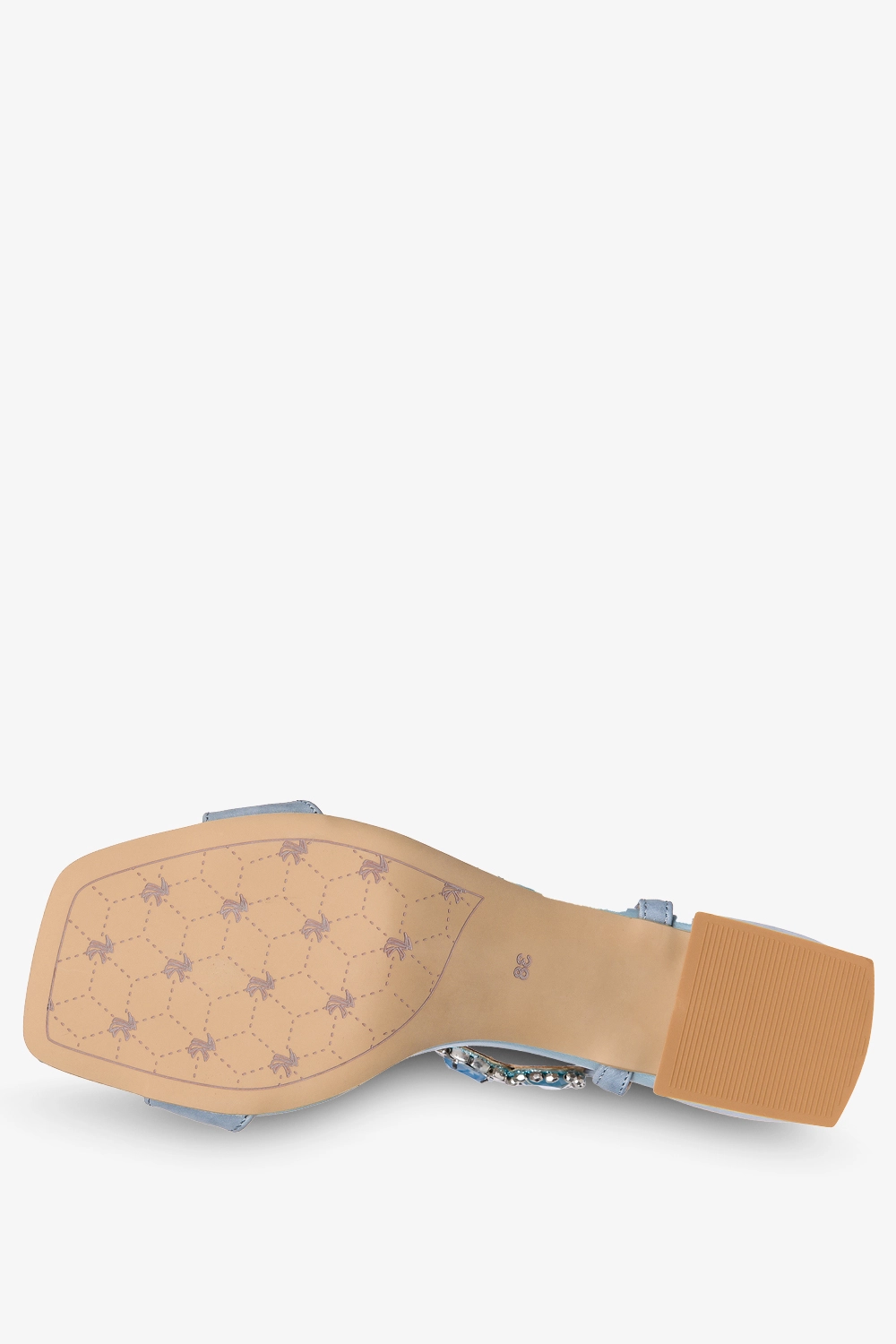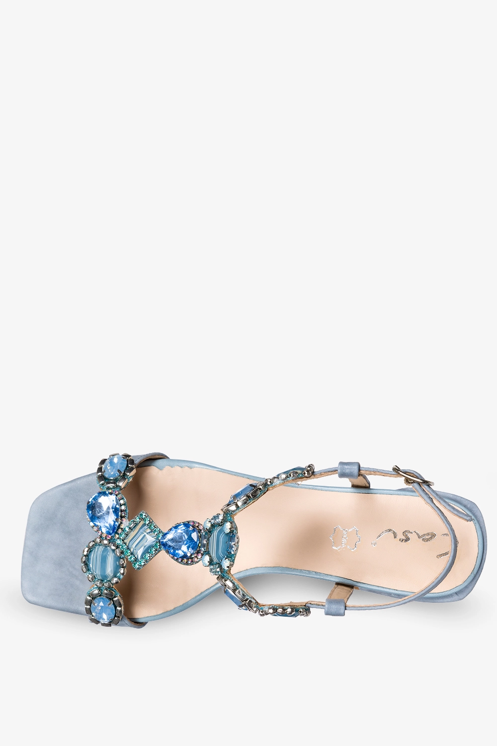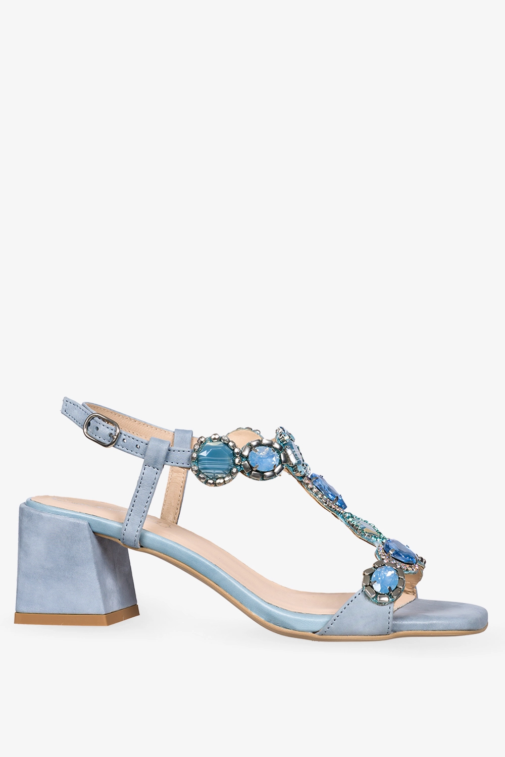 Niebieskie sandały skórzane damskie na klocku z kryształkami PRODUKT POLSKI Casu 2535