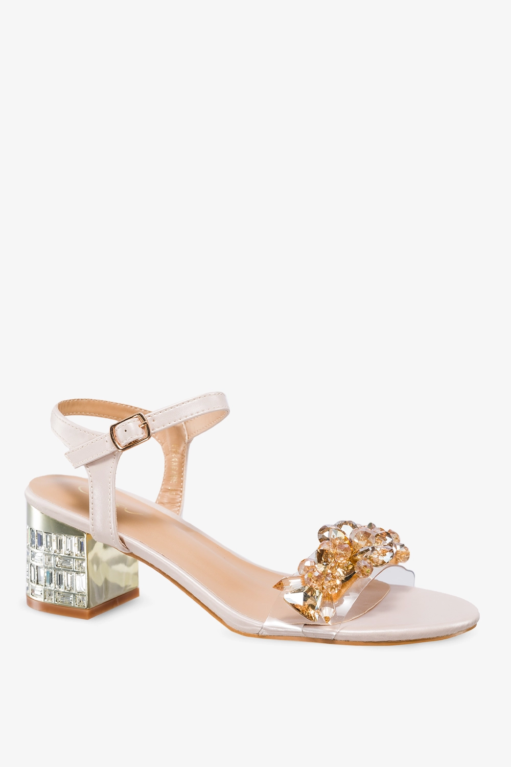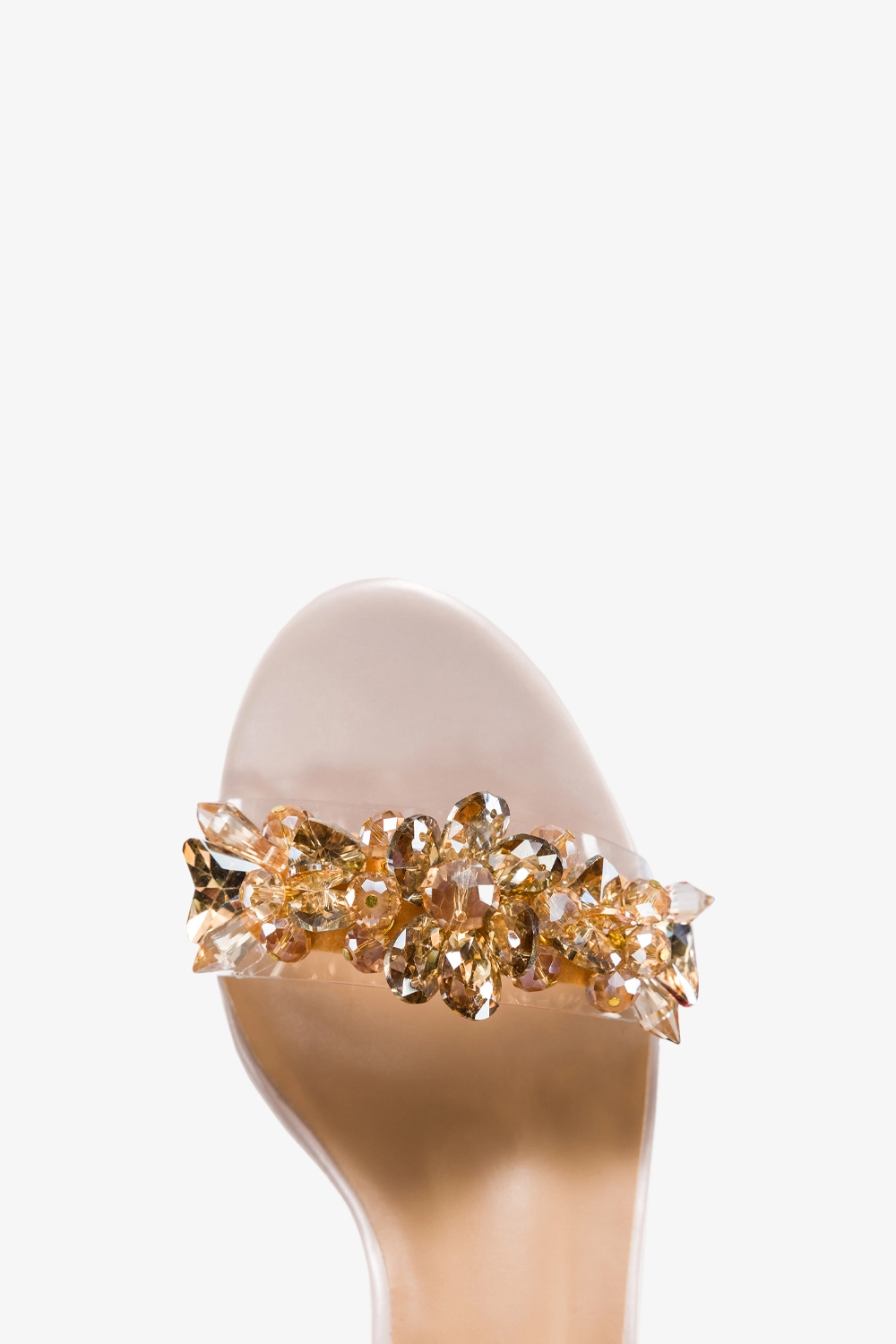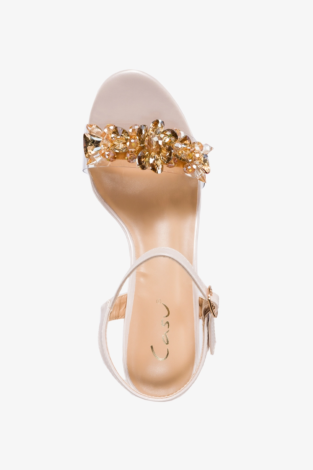 Perłowe sandały z kryształkami damskie na ozdobnym złotym klocku Casu ER24X8-BE