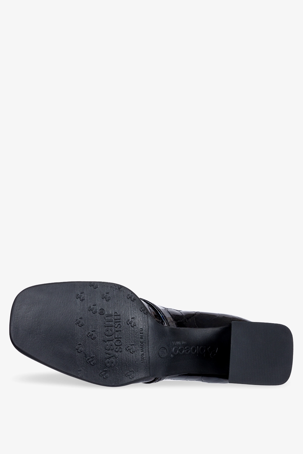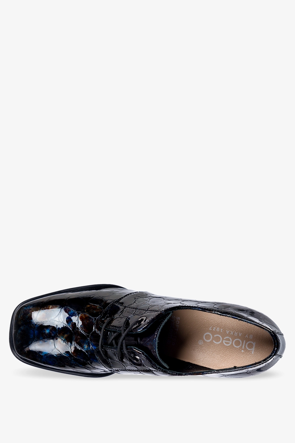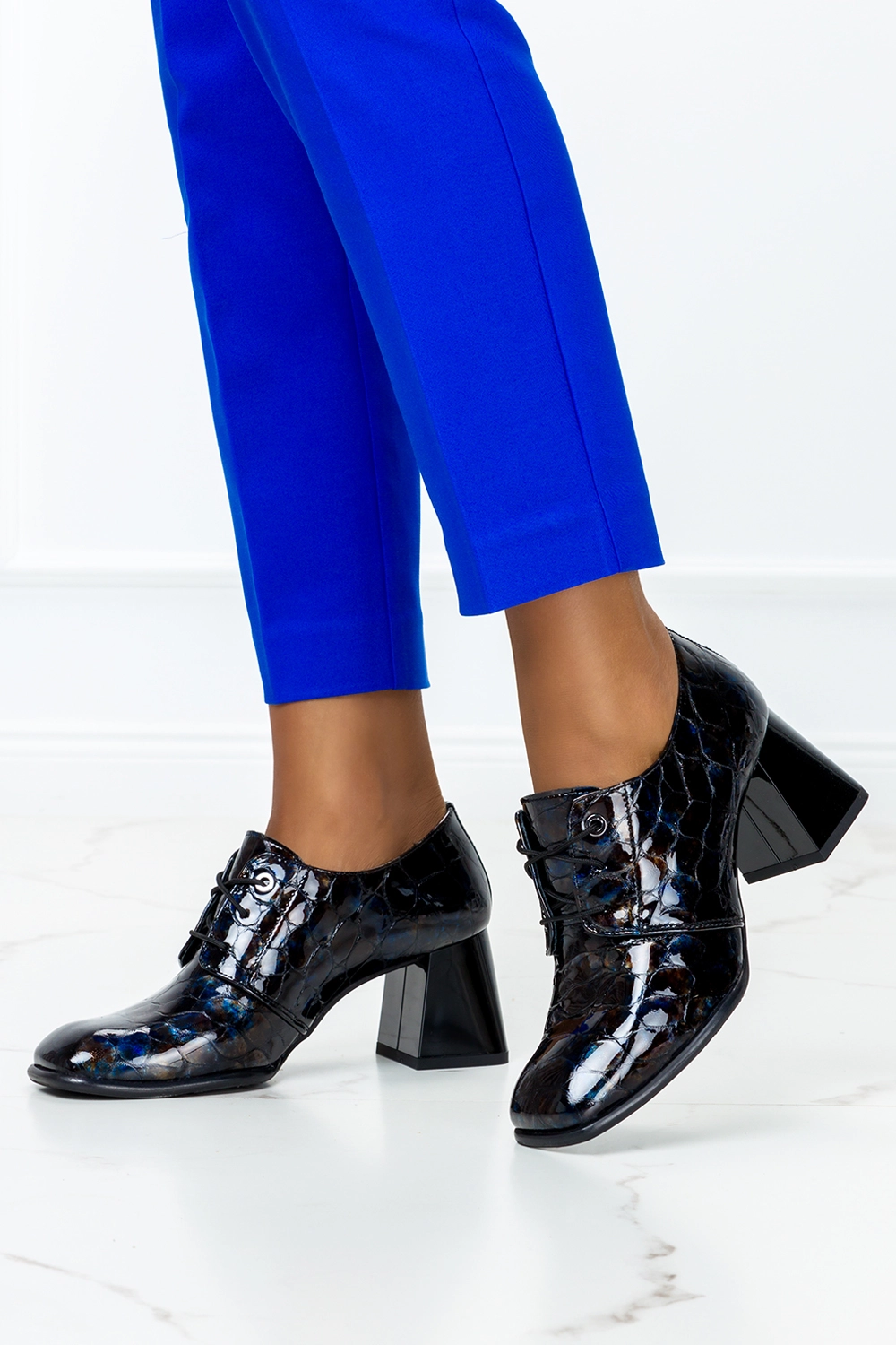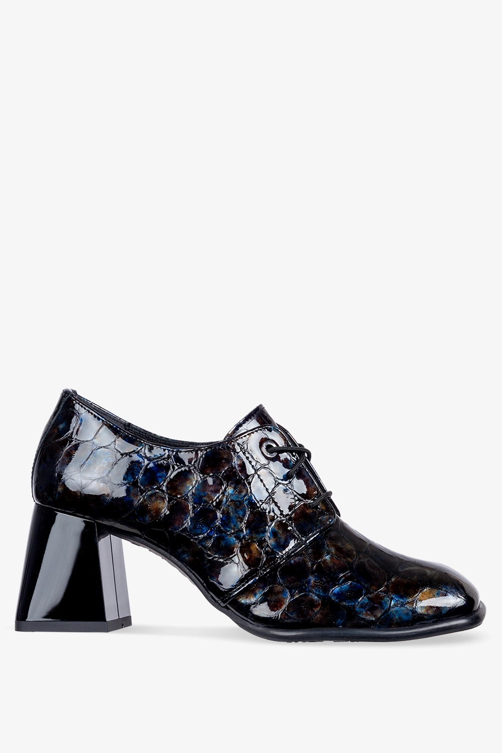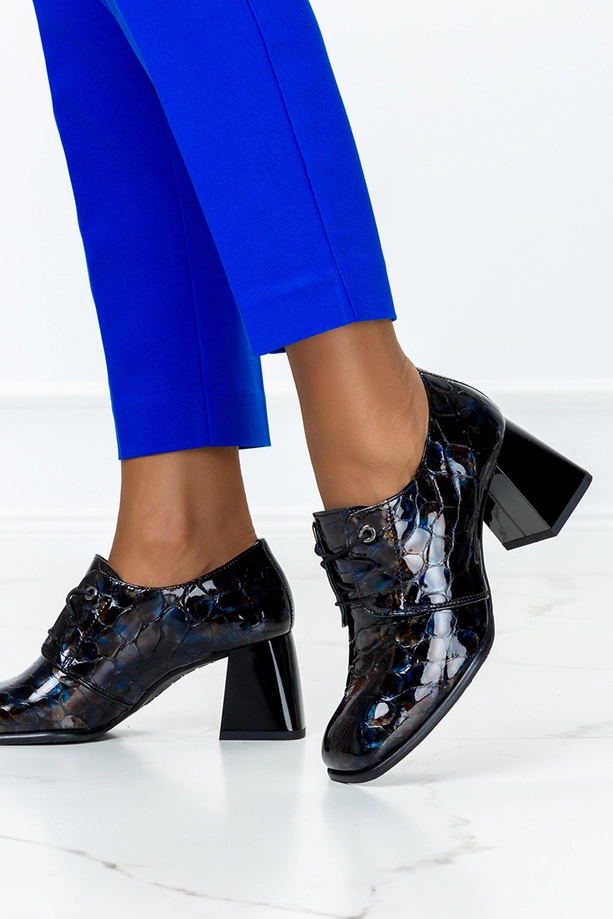 Półbuty skórzane Arka na klocku lakierowane krokodyli wzór brązowe PRODUKT POLSKI 6274