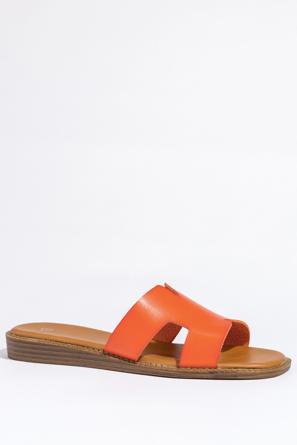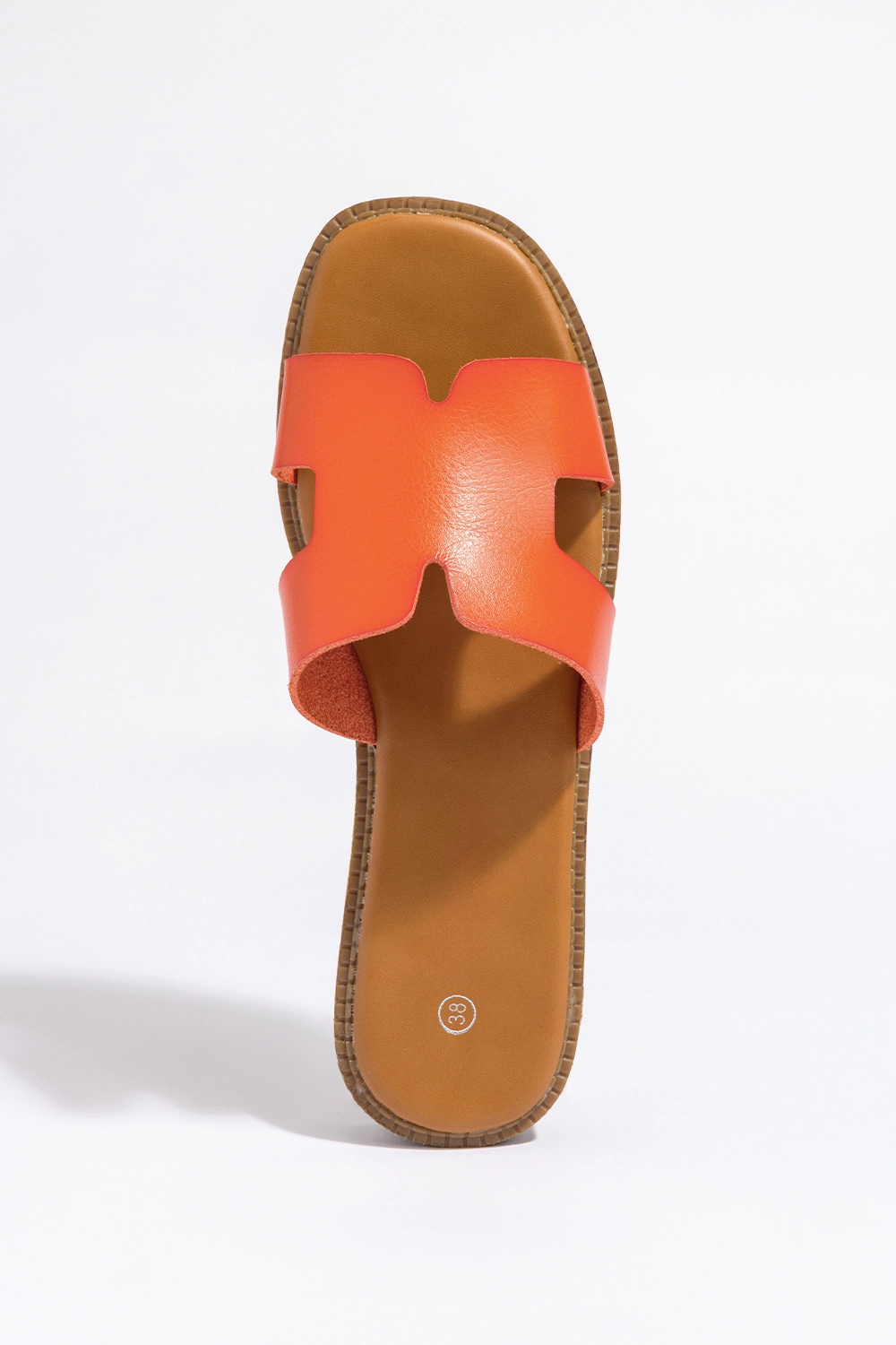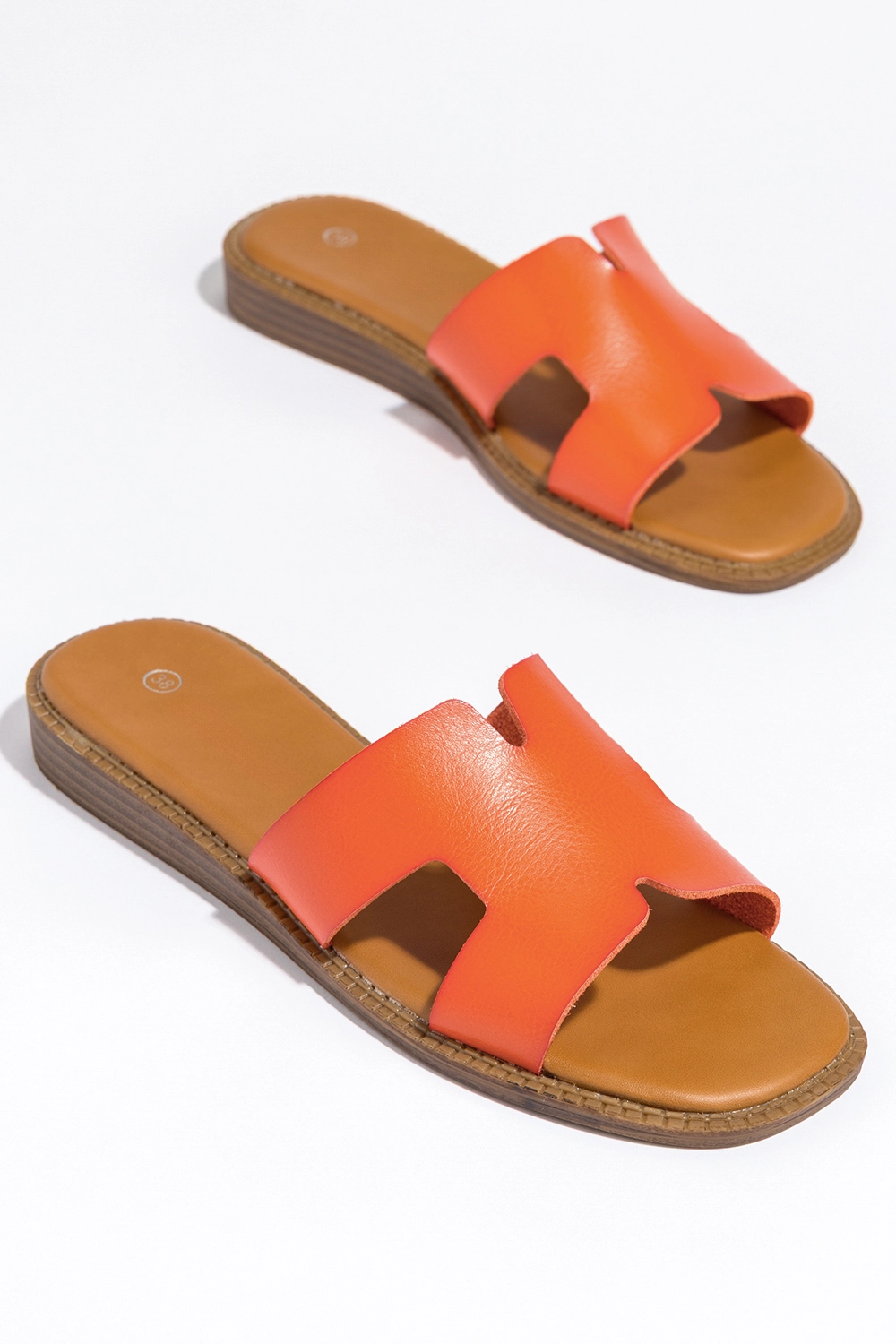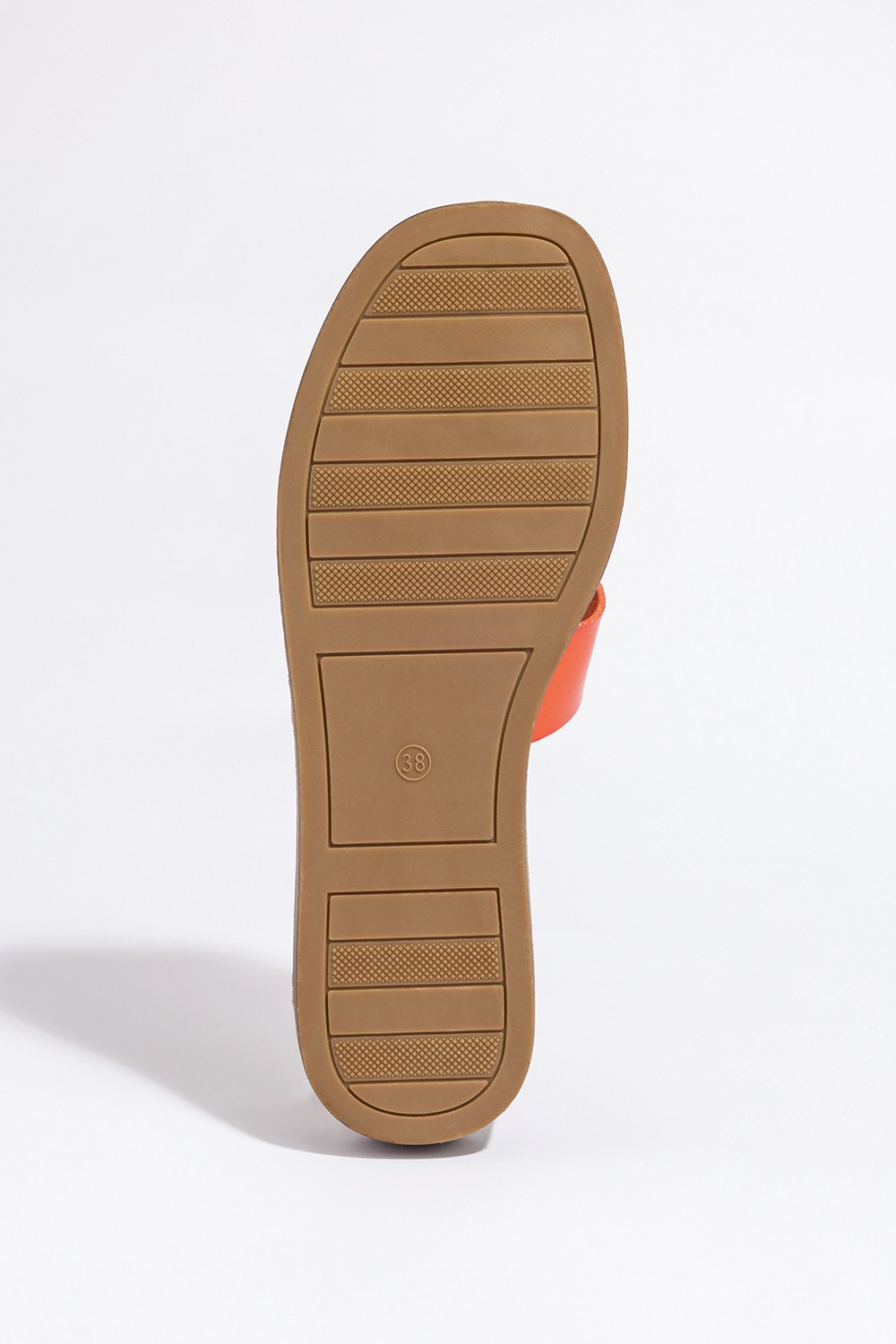 Pomarańczowe klapki damskie płaskie geometryczne wycięcia Casu JK-991-5