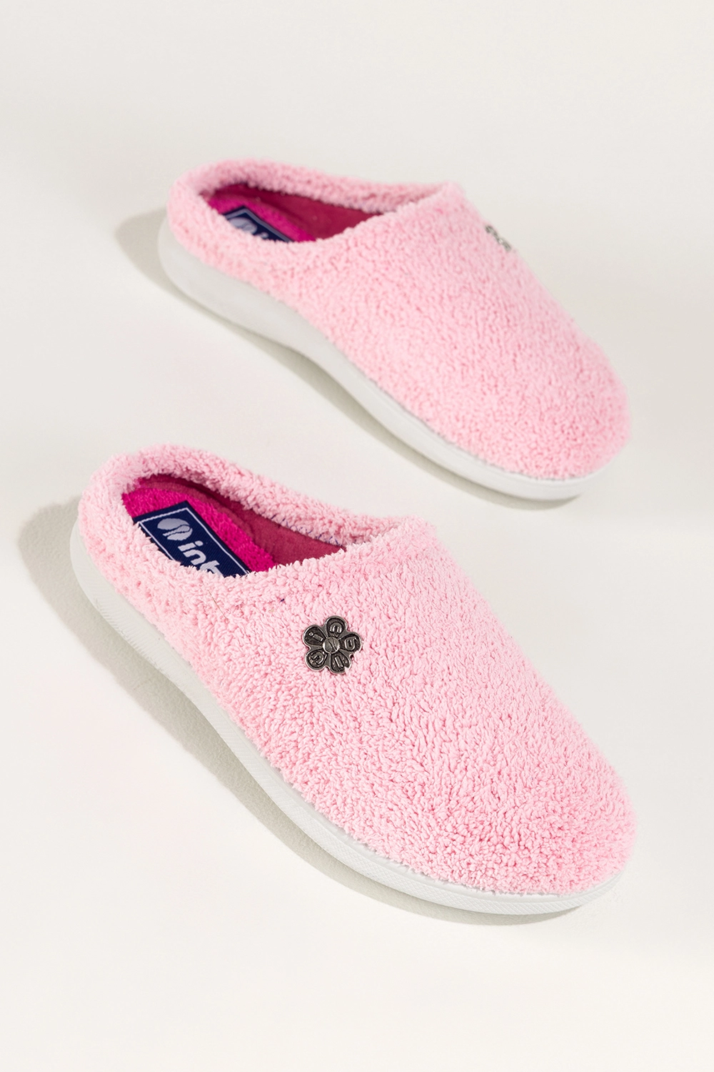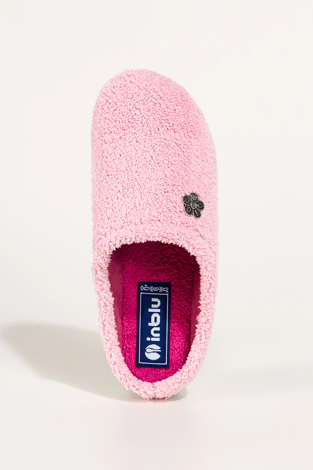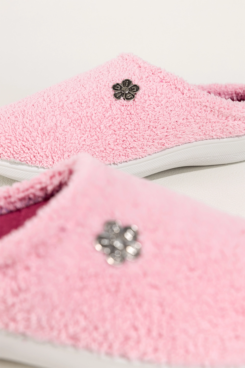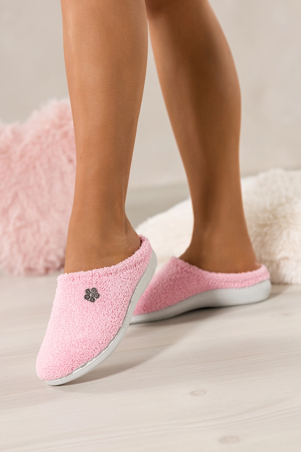 Różowe kapcie damskie Inblu obuwie domowe ozdobny stalowy kwiatek VX689899