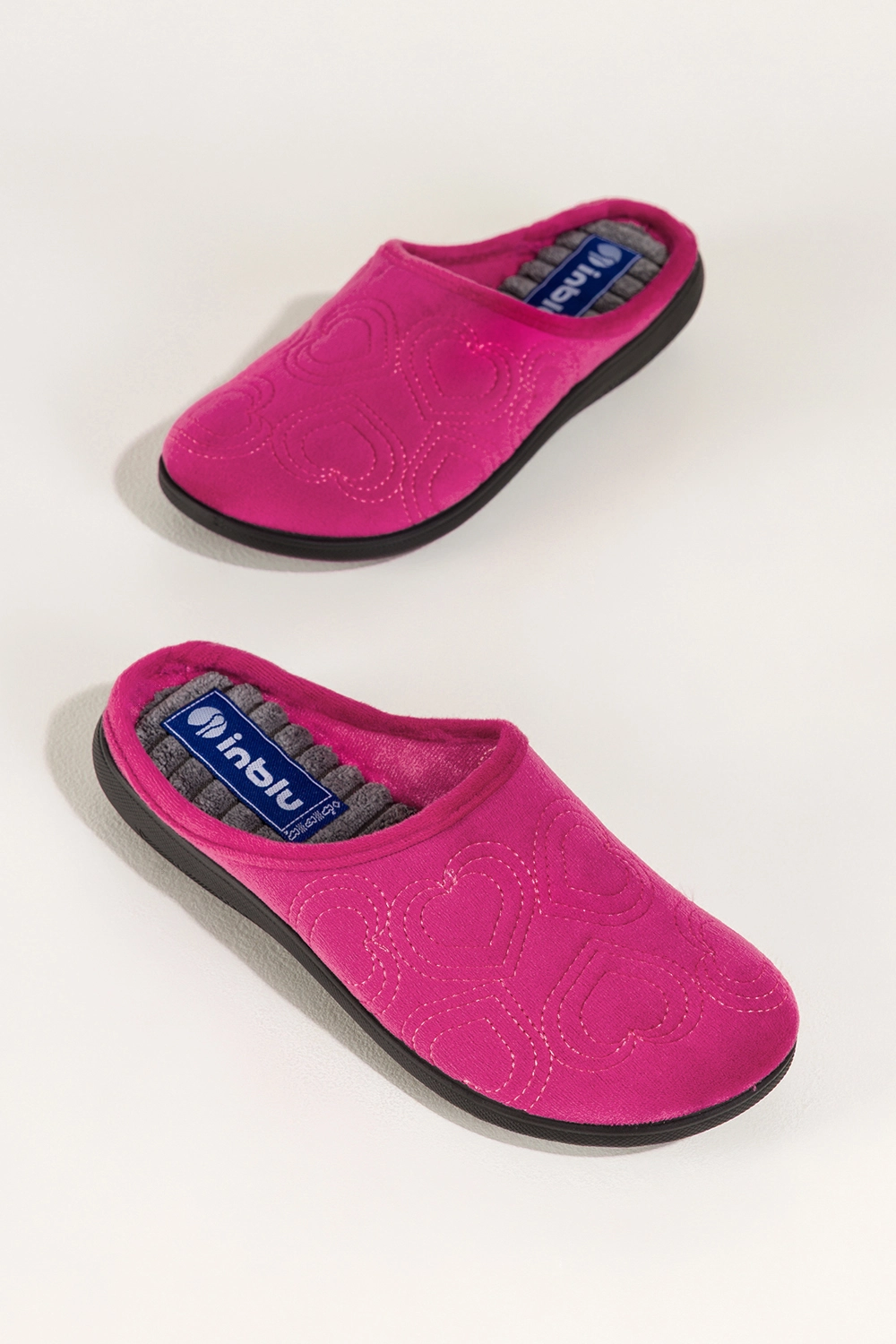 Różowe kapcie damskie Inblu obuwie domowe z haftowanymi sercami model VXYWLL98, połączenie miękkości, trwałości i eleganckiego designu. Wykonane z wysokogatunkowego materiału, zapewniają doskonałą wentylację i przyjemne uczucie ciepła. Miękka wkładka z tkaniny otula stopy delikatnością, a zaokrąglony nosek dodaje klasycznego uroku, gwarantując swobodę ruchów.