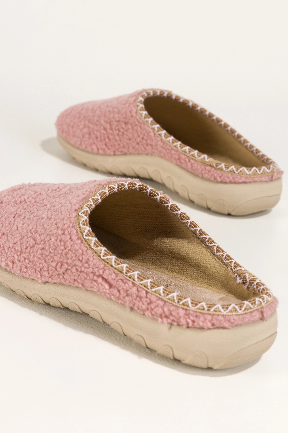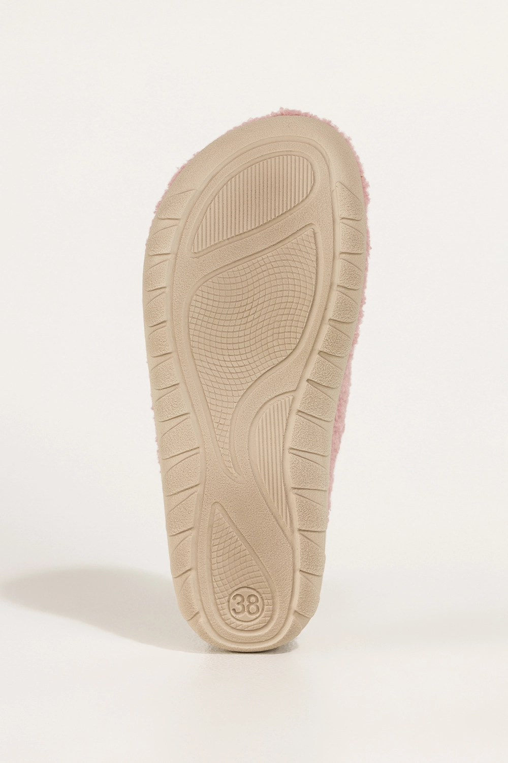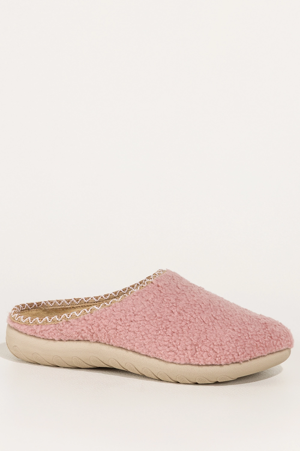 Wsuwany fason z zaokrąglonym noskiem ułatwia szybkie zakładanie, a płaska, lekka podeszwa gwarantuje stabilność i wygodę poruszania się po domu. Miękka wkładka soft z materiału dopasowuje się do kształtu stopy, redukując zmęczenie i podnosząc komfort wypoczynku po całym dniu.