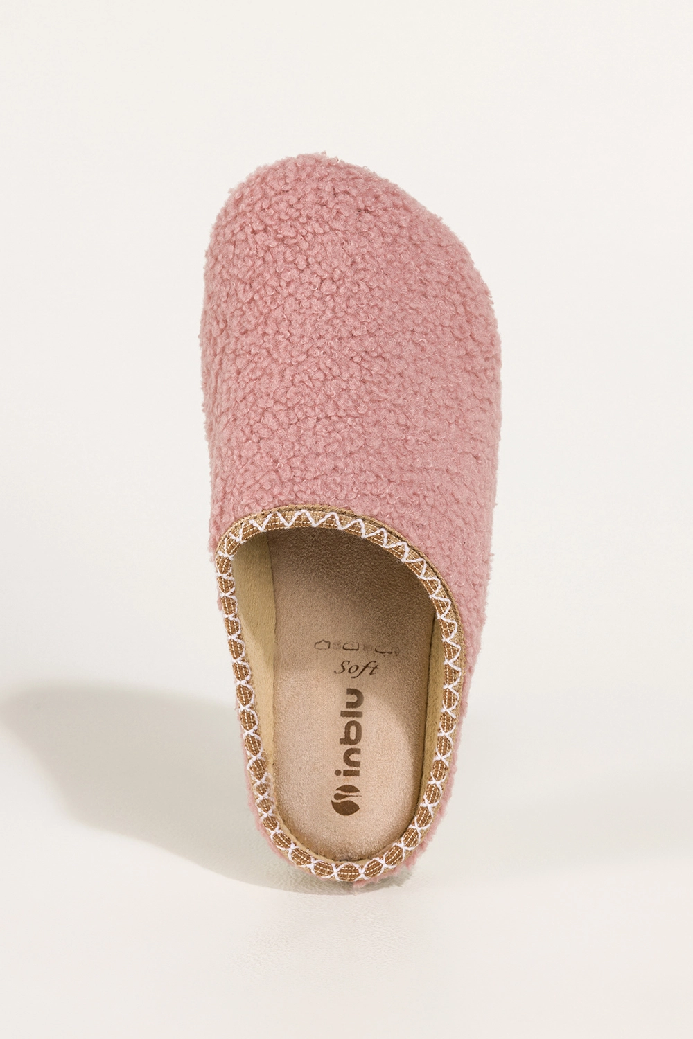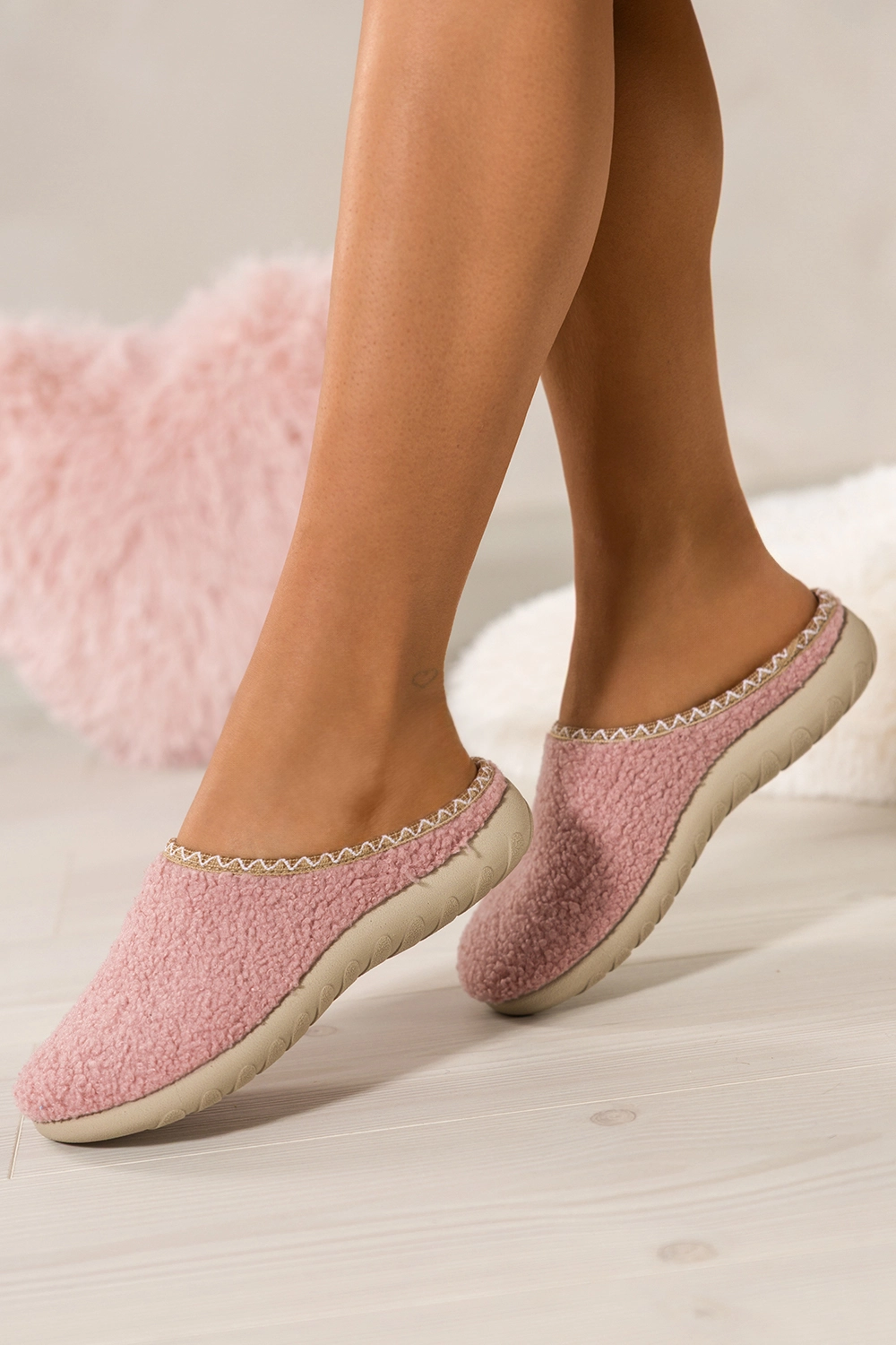 Różowe kapcie damskie Inblu obuwie domowe z materiału typu baranek z ozdobną lamówką wkładka soft model VG969299, zostały wykonane z miękkiego, przyjemnego w dotyku materiału typu baranek, który otula stopy ciepłem i zapewnia niesamowity komfort noszenia. Solidne wykończenie i staranne obszycie z ozdobną lamówką sprawiają, że obuwie prezentuje się elegancko, a jednocześnie zachowuje wysoką trwałość nawet przy codziennym użytkowaniu.