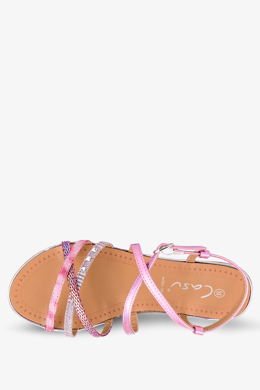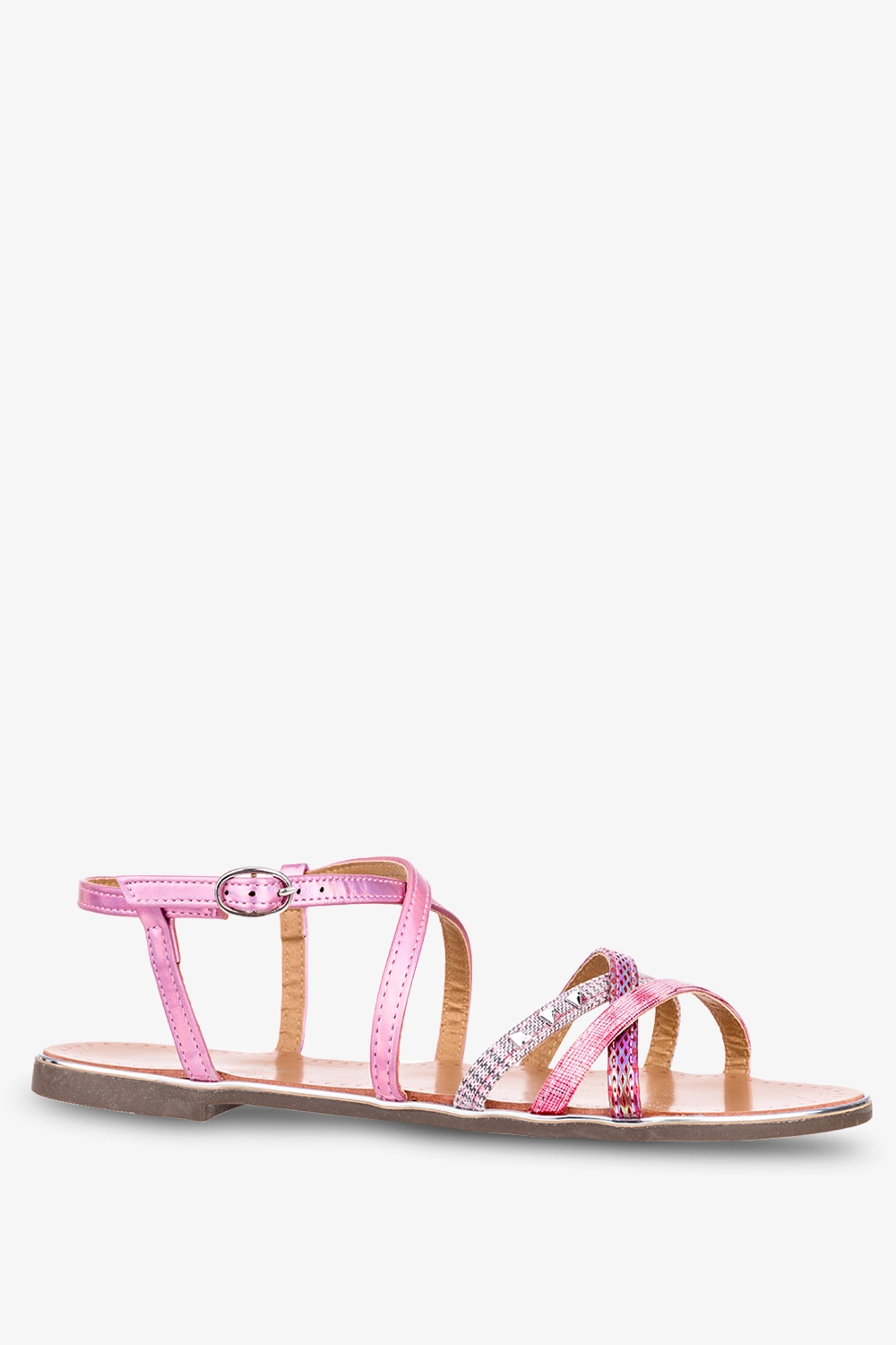 Różowe sandały metaliczne płaskie z nitami Casu S19X5/P