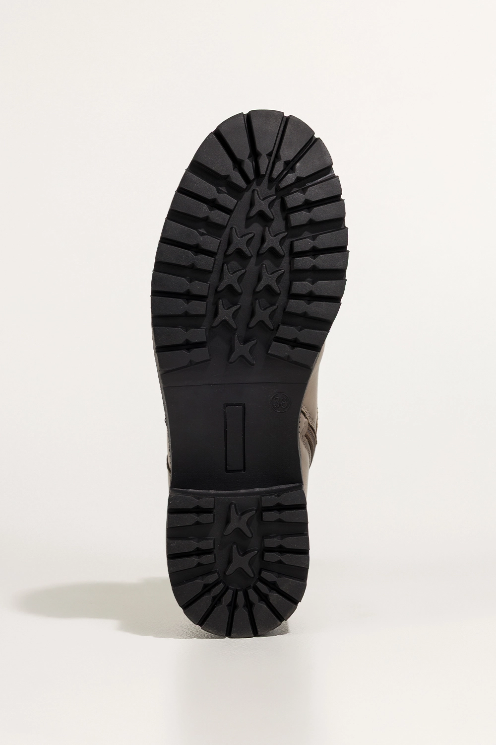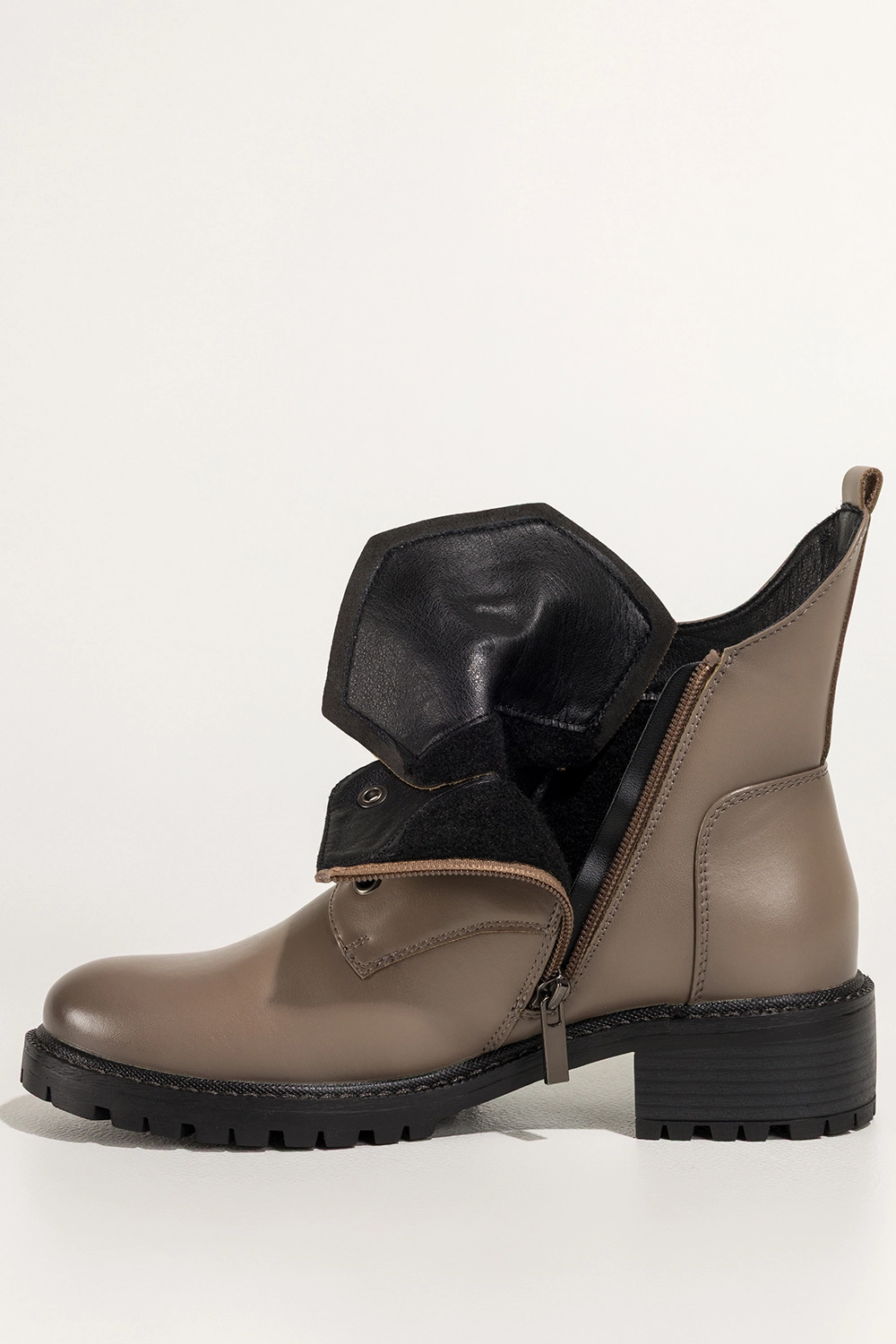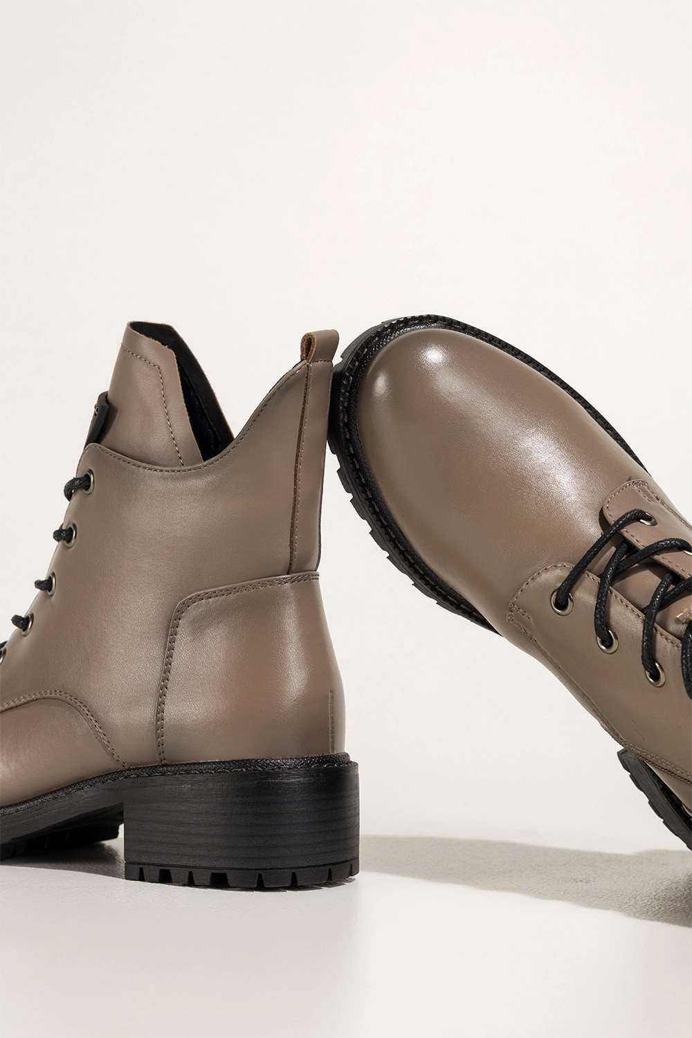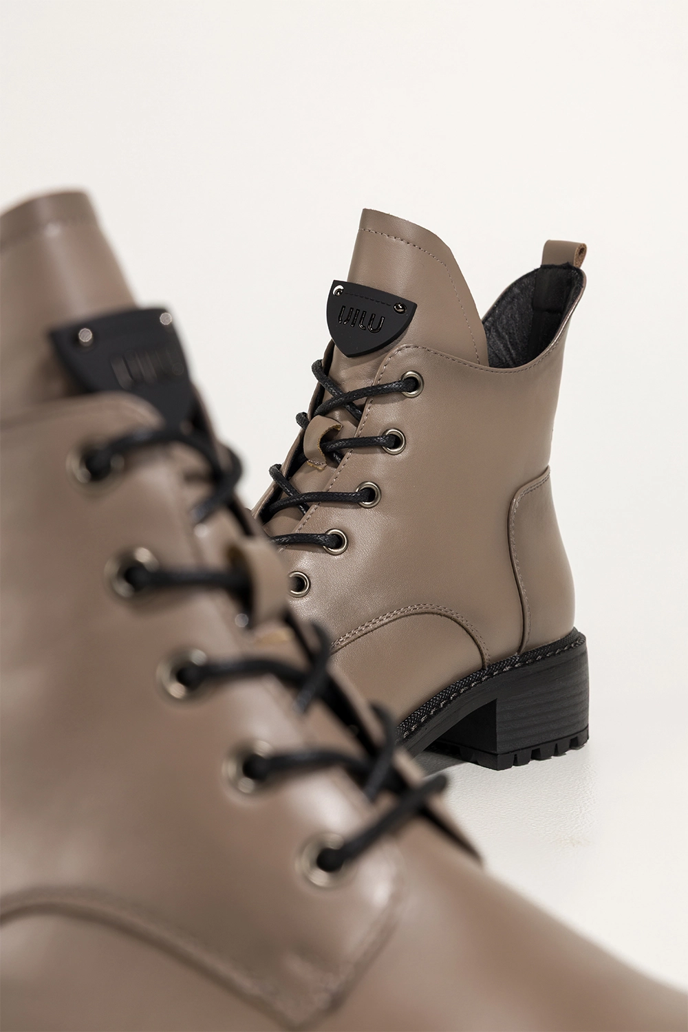 Nowoczesny styl z charakterystycznymi detalami Te szare botki wyróżnia nowoczesna sylwetka z wyciętą cholewką, która nadaje im lekkości i wizualnej finezji. Wycięcia w górnej części cholewki nie tylko pełnią funkcję dekoracyjną, ale także dodają lekkości i stylu. Wzrok przyciąga czarna ozdoba umieszczona na języku – subtelny, ale wyrazisty detal, który nadaje całości modowego pazura. Model zapinany jest na boczny zamek błyskawiczny, co znacząco ułatwia zakładanie, a dodatkowe sznurówki pozwalają na indywidualne dopasowanie do stopy. Zaokrąglony nosek nadaje sylwetce miękkości, a szeroki niski obcas zapewnia stabilność i komfort nawet podczas długiego użytkowania. To obuwie, które świetnie komponuje się z jeansami, sukienkami i płaszczami, podkreślając styl właścicielki w każdej sytuacji.
