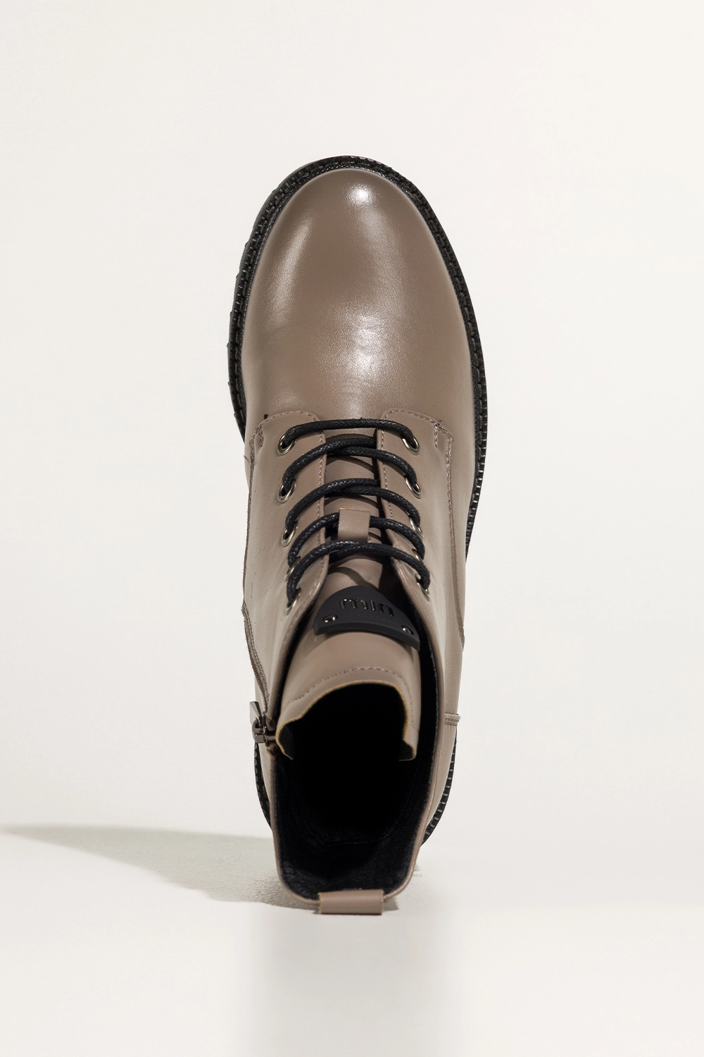 Wysokiej jakości wykonanie i komfort noszenia Model wykonano z wysokogatunkowej skóry ekologicznej, która doskonale imituje skórę naturalną, jednocześnie będąc bardziej przyjazną dla środowiska. Materiał ten charakteryzuje się trwałością, oraz łatwością w pielęgnacji. Wnętrze butów zostało ocieplone miękkim kocem obuwniczym, który zapewnia komfort termiczny w chłodniejsze dni. Miękka wkładka z tego samego materiału dodatkowo zwiększa wygodę użytkowania, co czyni te botki idealnymi do codziennego noszenia – zarówno podczas spacerów, jak i intensywnych dni w mieście. Bieżnikowana podeszwa gwarantuje stabilność i dobrą przyczepność do podłoża, co czyni ten model nie tylko stylowym, ale też funkcjonalnym wyborem.
