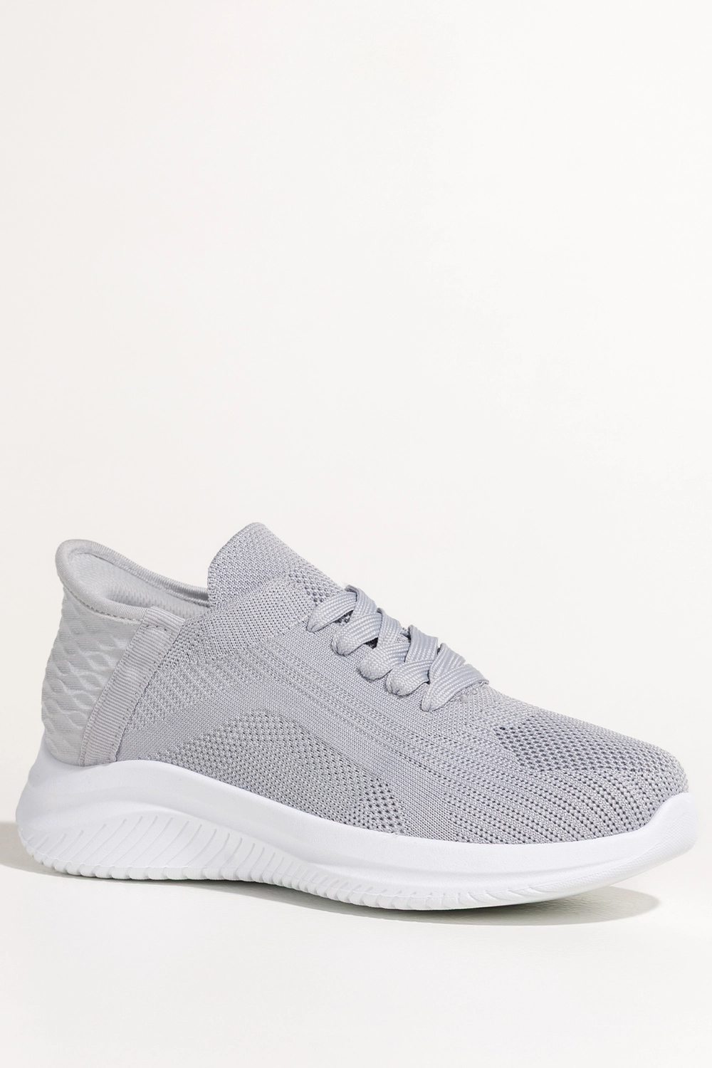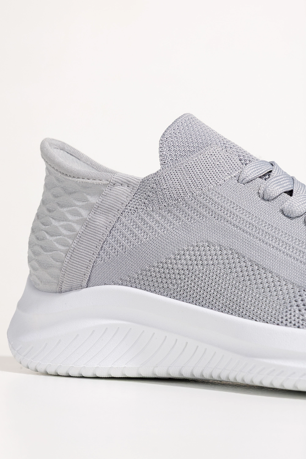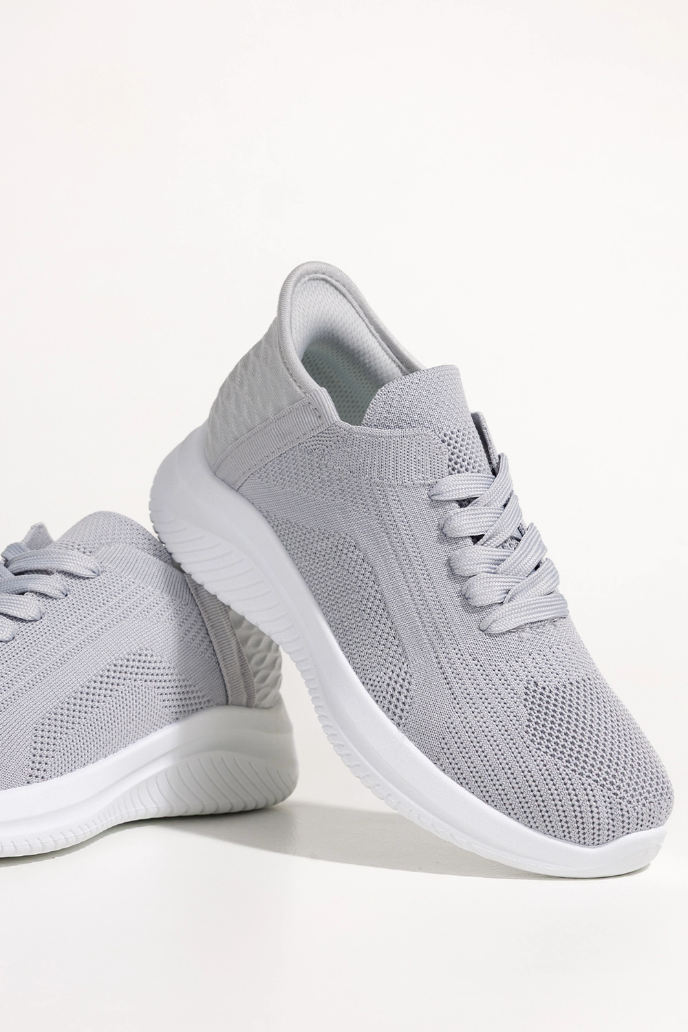 Buty wyróżniają się elegancką, neutralną kolorystyką, która bez trudu wpisuje się w każdą damską garderobę. Szary odcień cholewki w połączeniu z białą platformą tworzy harmonijny, ponadczasowy duet pasujący zarówno do sportowych, jak i miejskich stylizacji. Zestaw je z legginsami i crop topem, aby uzyskać sportowy look, lub połącz z jeansami i oversize’ową bluzą dla codziennej wygody z nutą miejskiej nonszalancji. Ich minimalistyczna estetyka i dopracowane detale — takie jak perforacja na cholewce, szare sznurówki i zaokrąglony nosek — sprawiają, że te sneakersy stanowią doskonały wybór dla kobiet ceniących sobie modę, ale też wygodę i funkcjonalność.