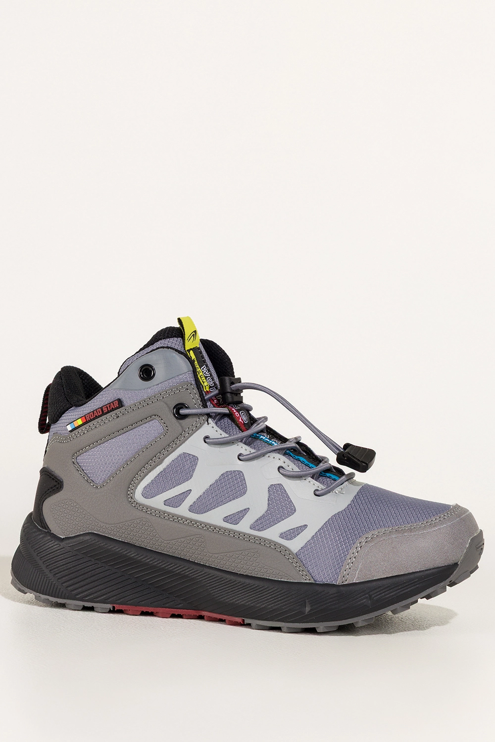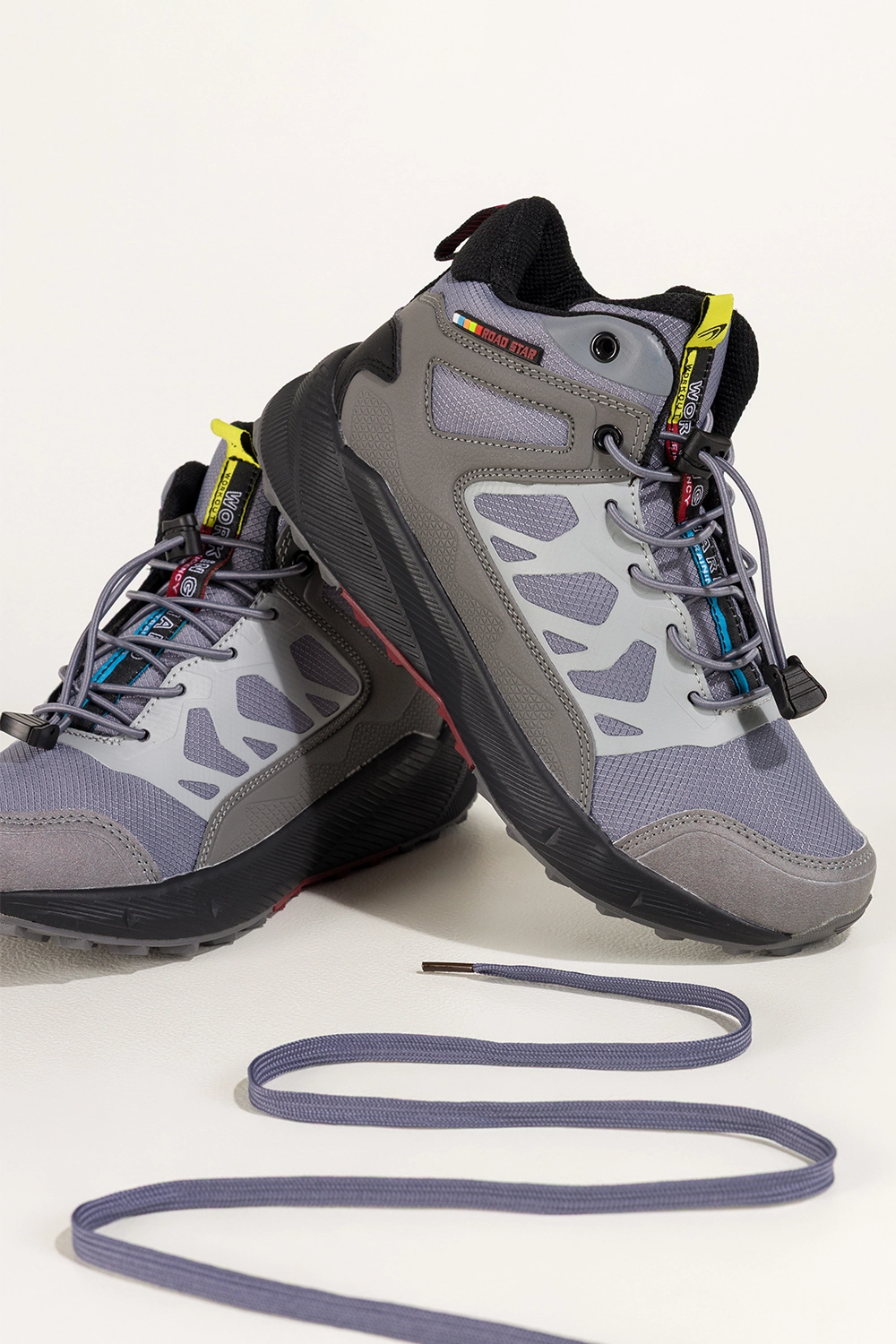 Szare buty sportowe trekkingowe damskie wodoodporne na bieżnikowanej podeszwie z regulowaną elastyczną sznurówką jasnoszare wstawki Casu 7493-7D