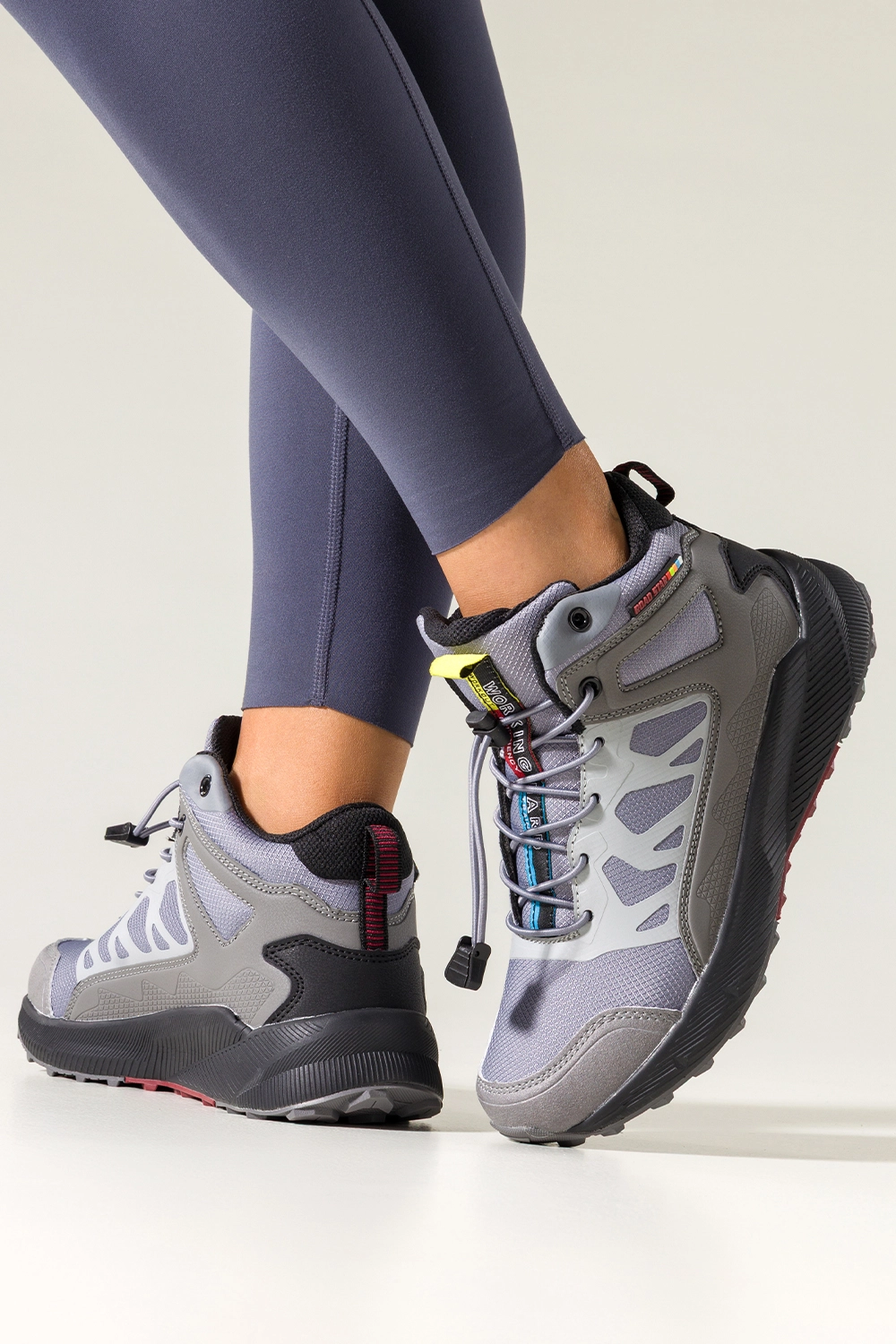 Dzięki elastycznym regulowanym sznurówkom oraz dodatkowym klasycznym sznurówkom dopasujesz je idealnie do swoich potrzeb. Zaokrąglony nosek oraz jasnoszare wstawki dodają im subtelnego charakteru, dzięki czemu świetnie sprawdzą się zarówno w terenie, jak i w codziennych miejskich stylizacjach.