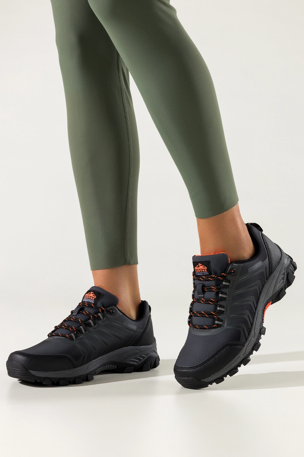 Wyjątkowe cechy i przewagi konkurencyjne – model EY82933-3 wyróżnia się na tle innych trekkingowych butów damskich dzięki przemyślanym detalom i nowoczesnemu podejściu do komfortu. Zaokrąglony nosek zapewnia naturalne ułożenie palców, co zwiększa wygodę, zwłaszcza podczas dłuższych wędrówek. Dzięki sznurowaniu z czarną sznurówką z pomarańczowymi akcentami, możliwe jest precyzyjne dopasowanie buta do indywidualnego kształtu stopy, co zmniejsza ryzyko obtarć i zwiększa stabilność. Materiały użyte do produkcji nie tylko prezentują się atrakcyjnie wizualnie, ale także są łatwe w pielęgnacji, co czyni ten model szczególnie praktycznym wyborem na co dzień.