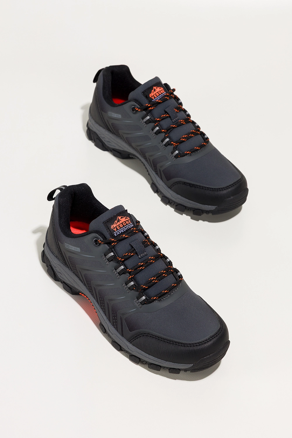 Szare buty trekkingowe damskie buty sportowe softshell na bieżnikowanej podeszwie pomarańczowe wstawki sznurowane Carla model EY82933-3 to idealne połączenie funkcjonalności, nowoczesnego designu i komfortu, które zostało zaprojektowane z myślą o aktywnych kobietach ceniących wysoką jakość wykonania i wyrazisty styl. Wykonane z wytrzymałej, oddychającej skóry ekologicznej oraz materiału softshell, oferują trwałość i częściową ochronę przed wilgocią, co czyni je doskonałym wyborem na górskie szlaki, jesienne spacery po lesie czy dynamiczne miejskie wyprawy. Charakterystyczne pomarańczowe wstawki oraz kontrastowe sznurowanie dodają im niepowtarzalnego, energetycznego charakteru, który z pewnością przyciągnie spojrzenia.
